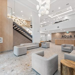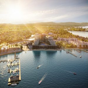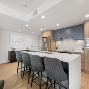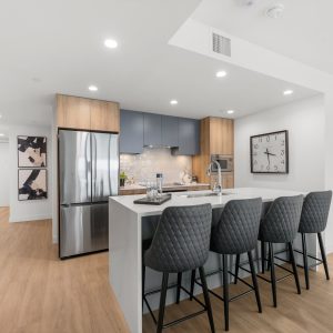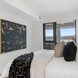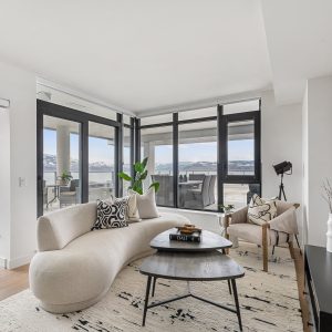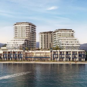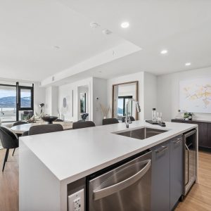 Experience unparalleled lakeside living at Aqua Waterfront Village, a premier development by the award-winning Mission Group. This brand-new, SW-facing 2-bedroom + den, 2-bath residence offers 1,149 sq. ft. of elegant interior living complemented by an expansive 1,000+ sq. ft. patio perfect for entertaining while soaking in Okanagan Lake views. Designed with sophistication and simplicity, this residence features a bright, open floor plan with calming neutral tones. The chef-inspired kitchen showcases modern flat panel cabinetry, polished quartz countertops, a stunning waterfall island, & stainless-steel appliances.