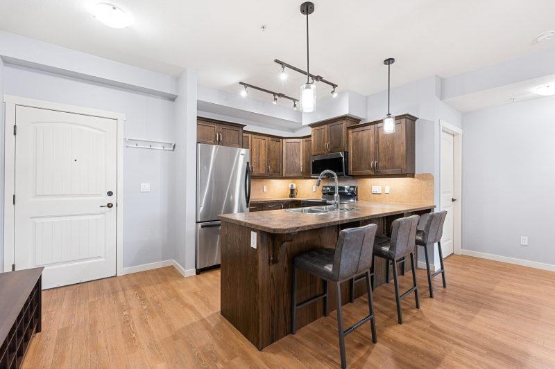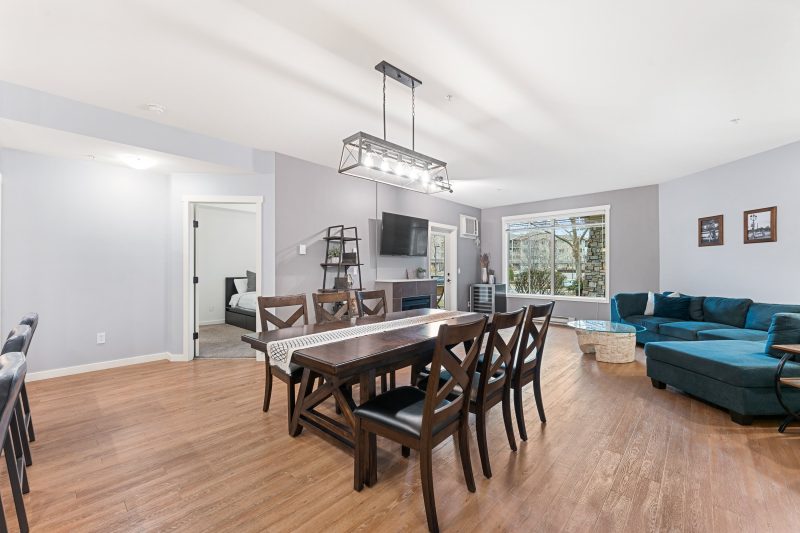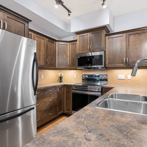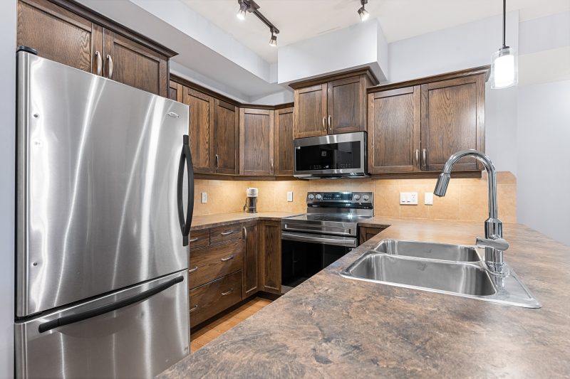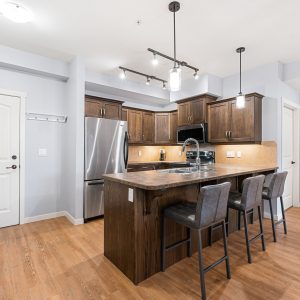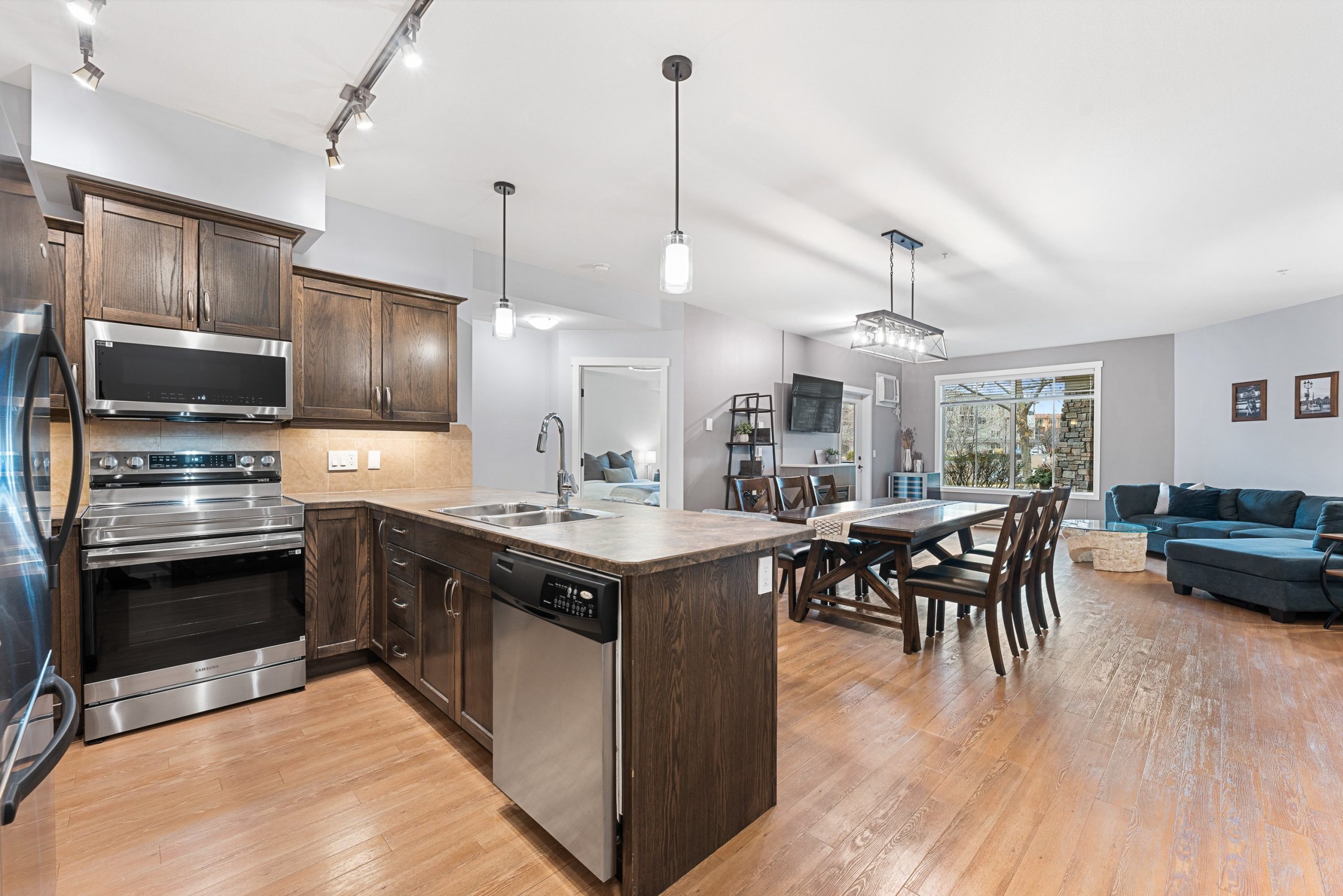 Bright and inviting ground-level residence in Mission Meadows, built by Mission Group and ideally located in Kelowna’s desirable Lower Mission. Thoughtfully designed, this home offers 1 bedroom plus bedroom sized den and 2 baths, creating a functional layout ideal for first-time buyers, professionals, or downsizers. High ceilings and wide-plank flooring enhance the open-concept living spaces, while large windows fill the home with natural light.