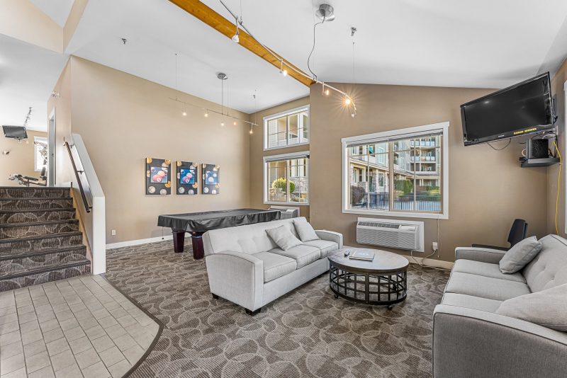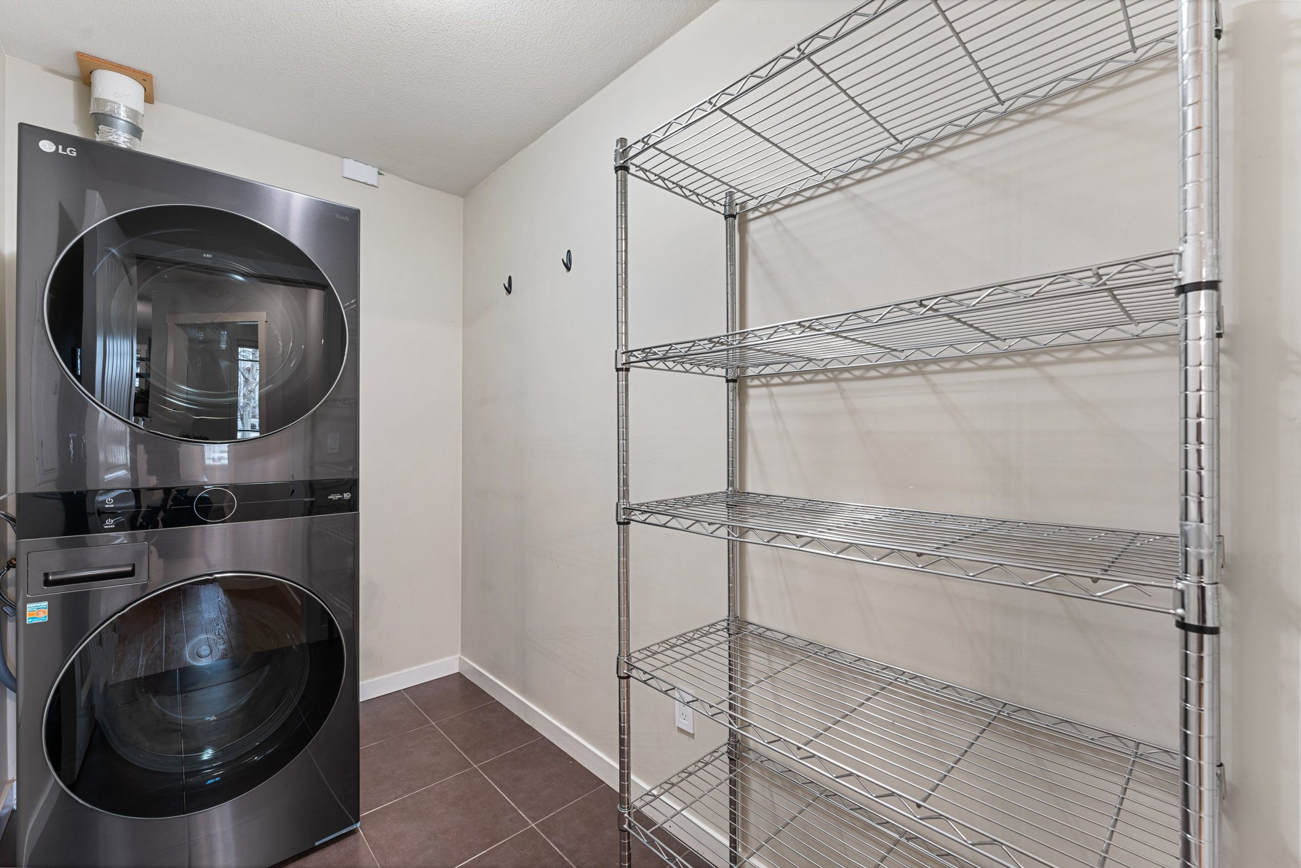 Additional highlights include fresh paint, upgraded lighting, a new kitchen faucet, in-suite laundry, excellent in-unit storage, and two wall-mounted A/C units for comfort. This well-maintained building offers a resident clubhouse with fitness centre, games room, and kitchen, plus bike storage, guest parking, a dedicated parking stall, and storage locker. Potential additional parking for rent through strata.