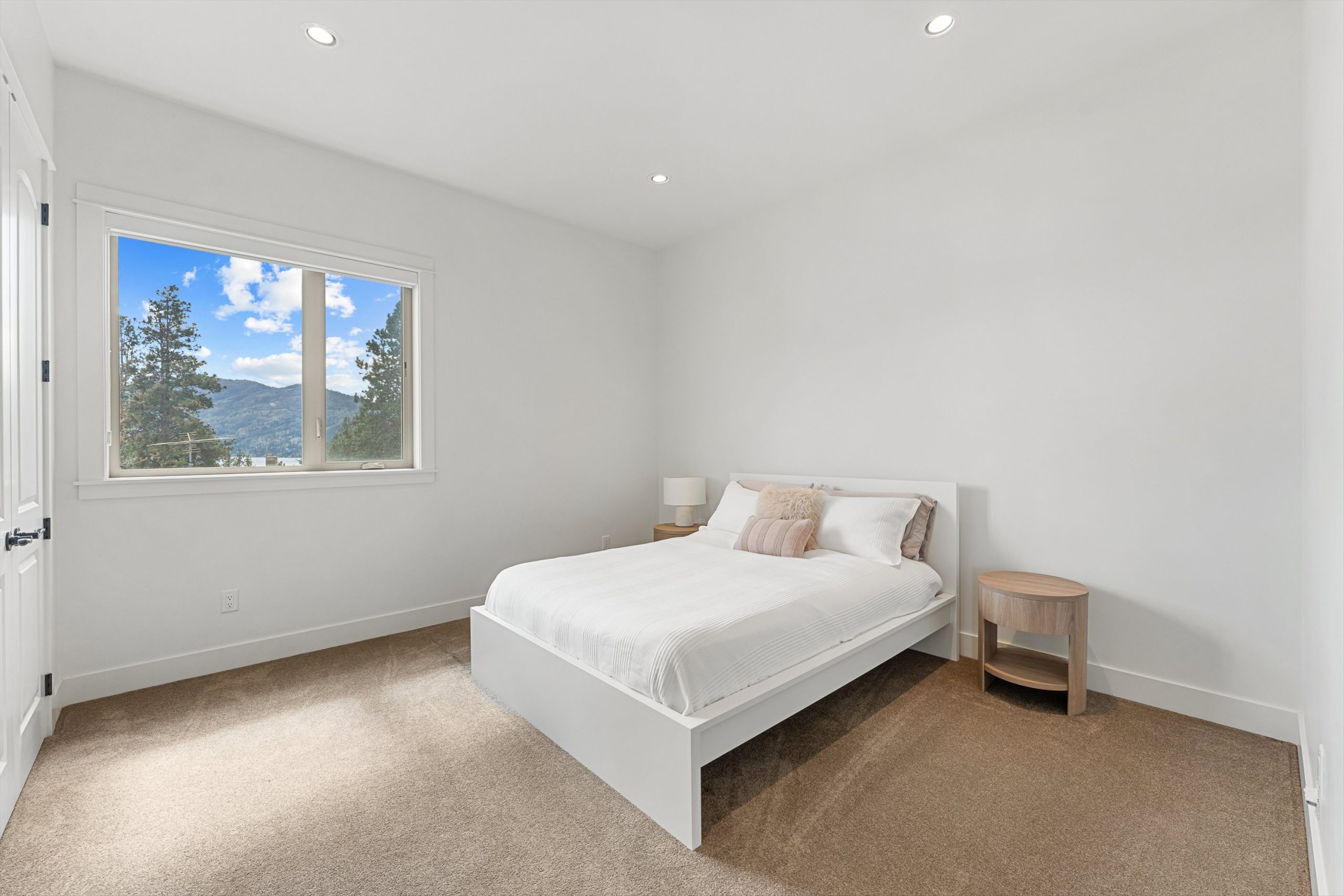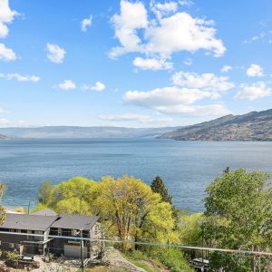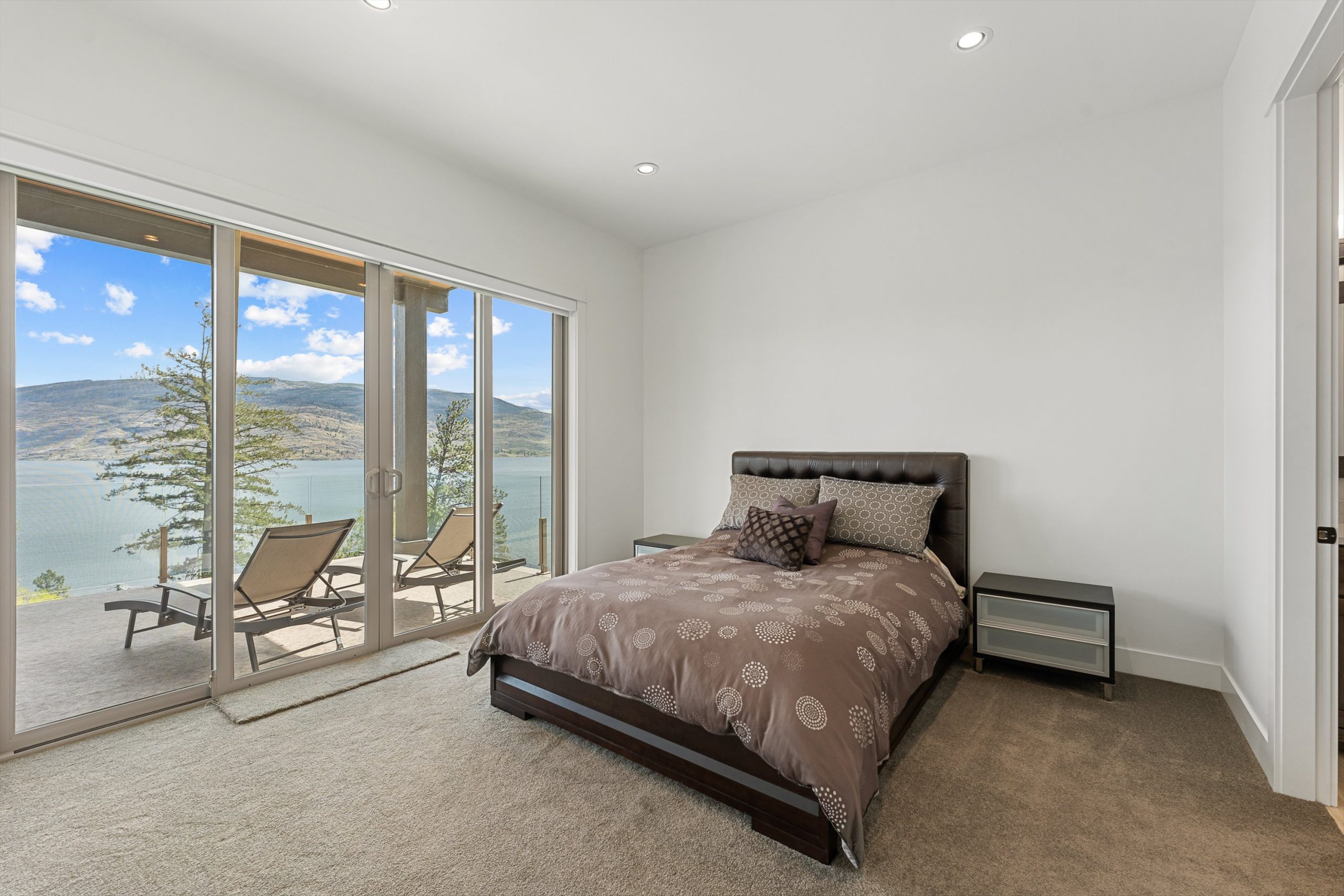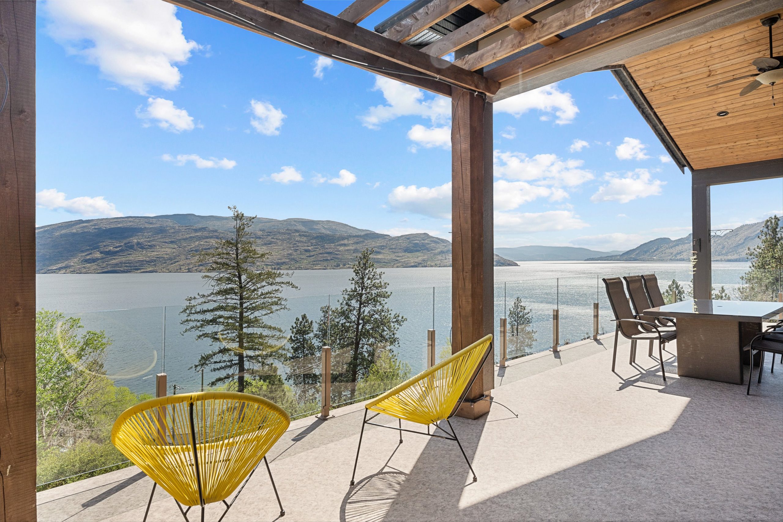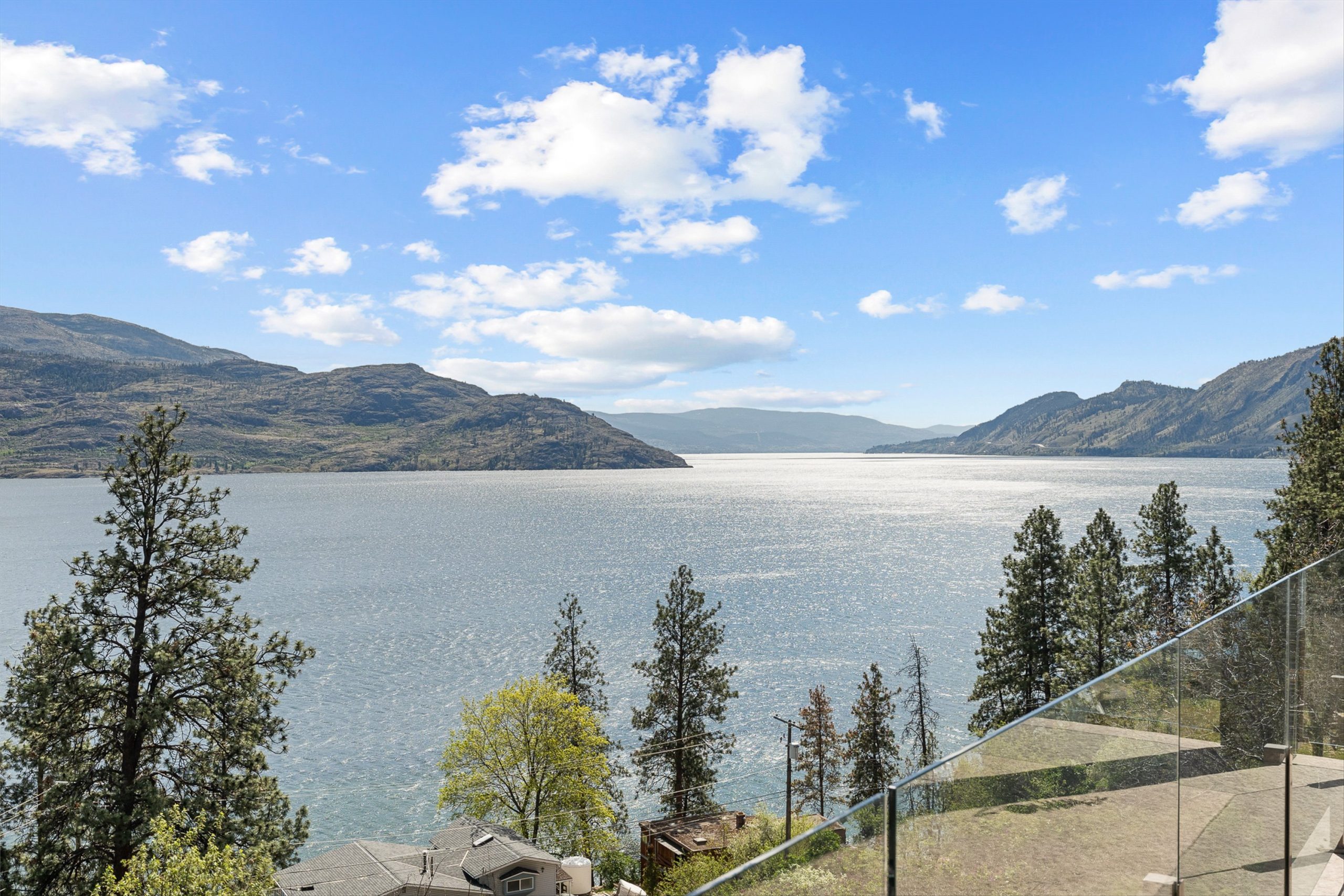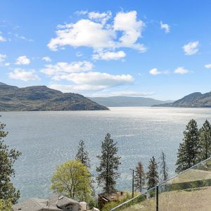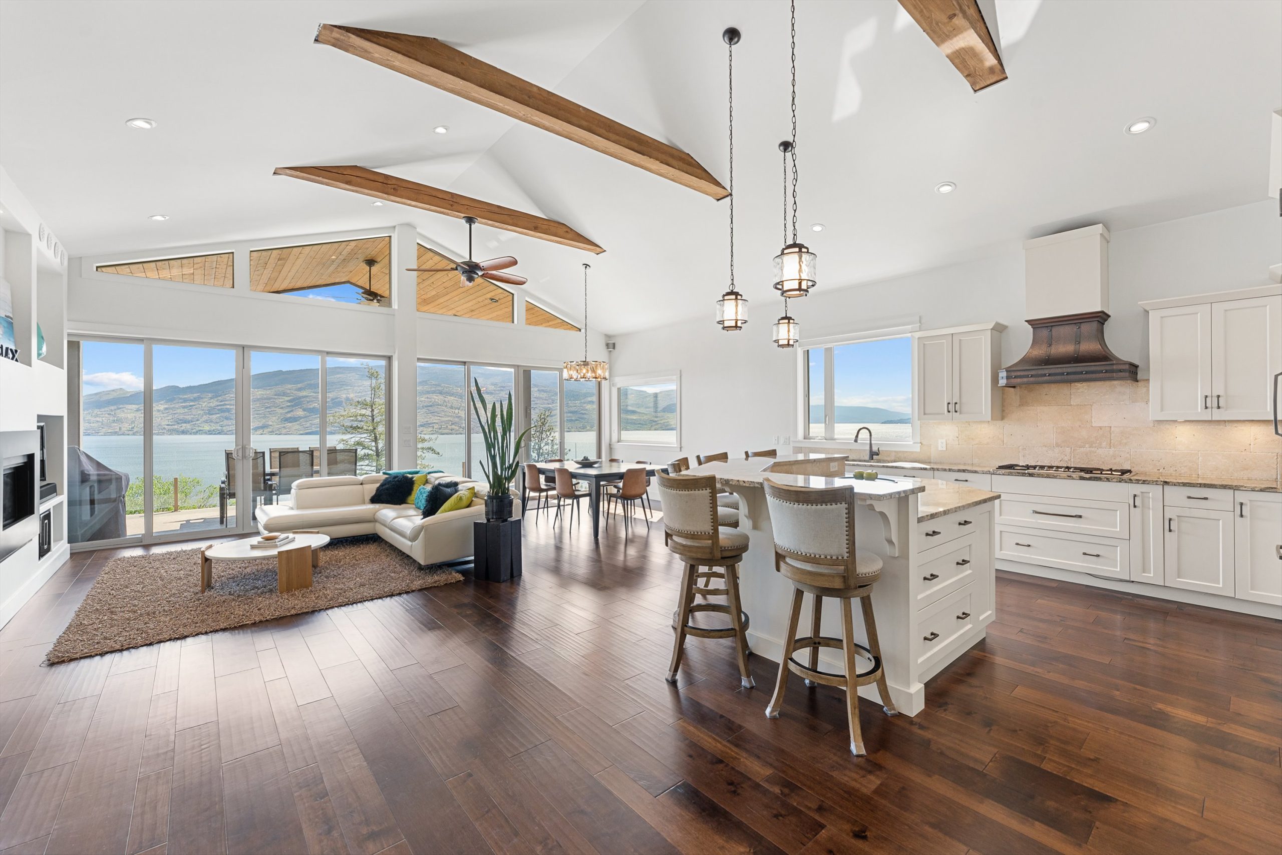 The main level is designed for effortless everyday living, with an open-concept kitchen, dining, and great room oriented to outstanding views of Okanagan Lake, Rattlesnake Island, and Squally Point. The primary suite is also located on the main level.