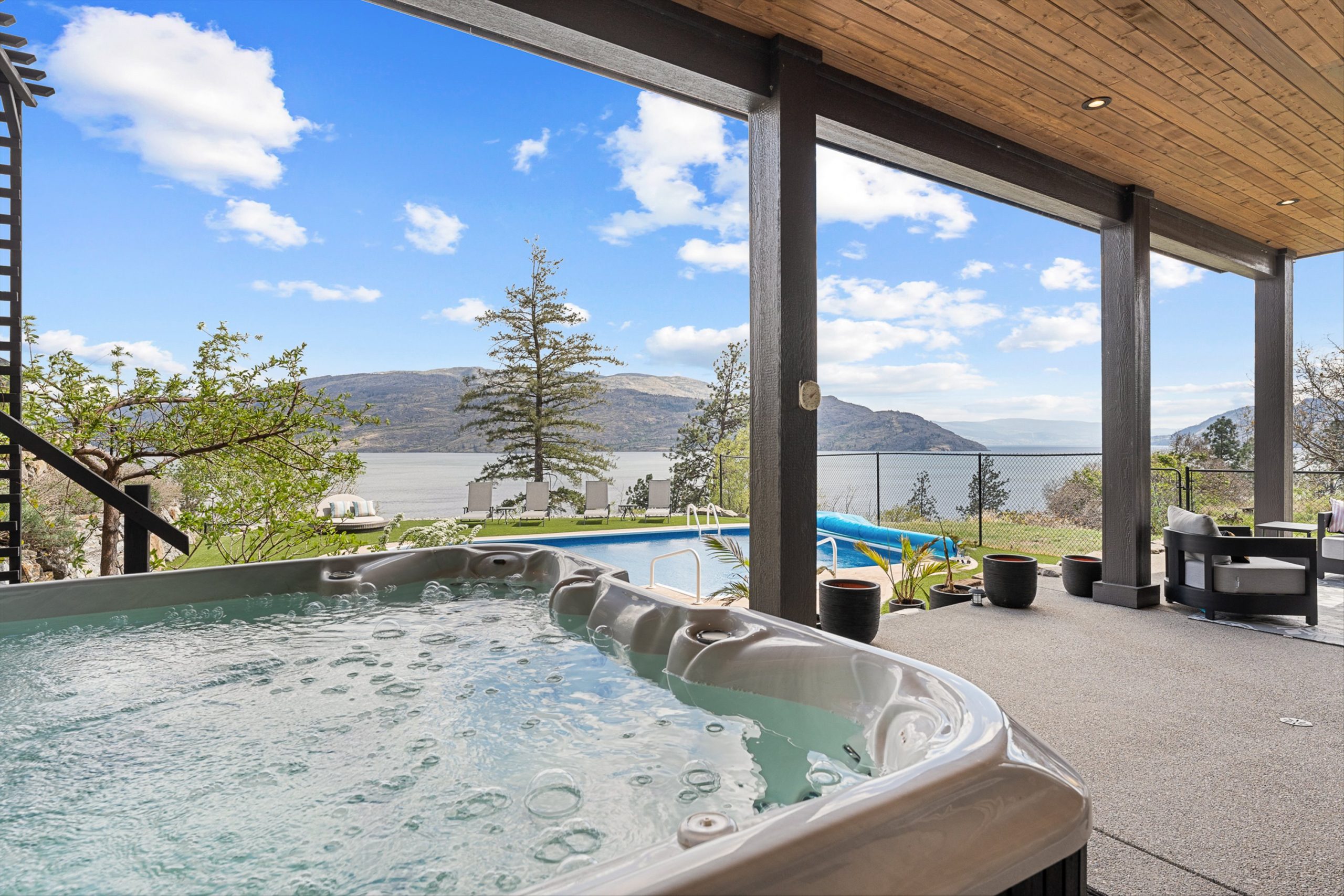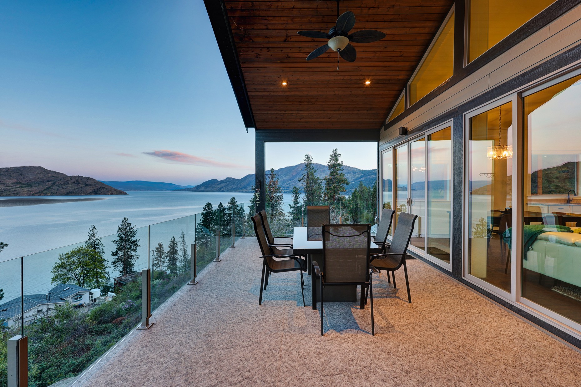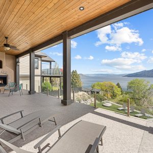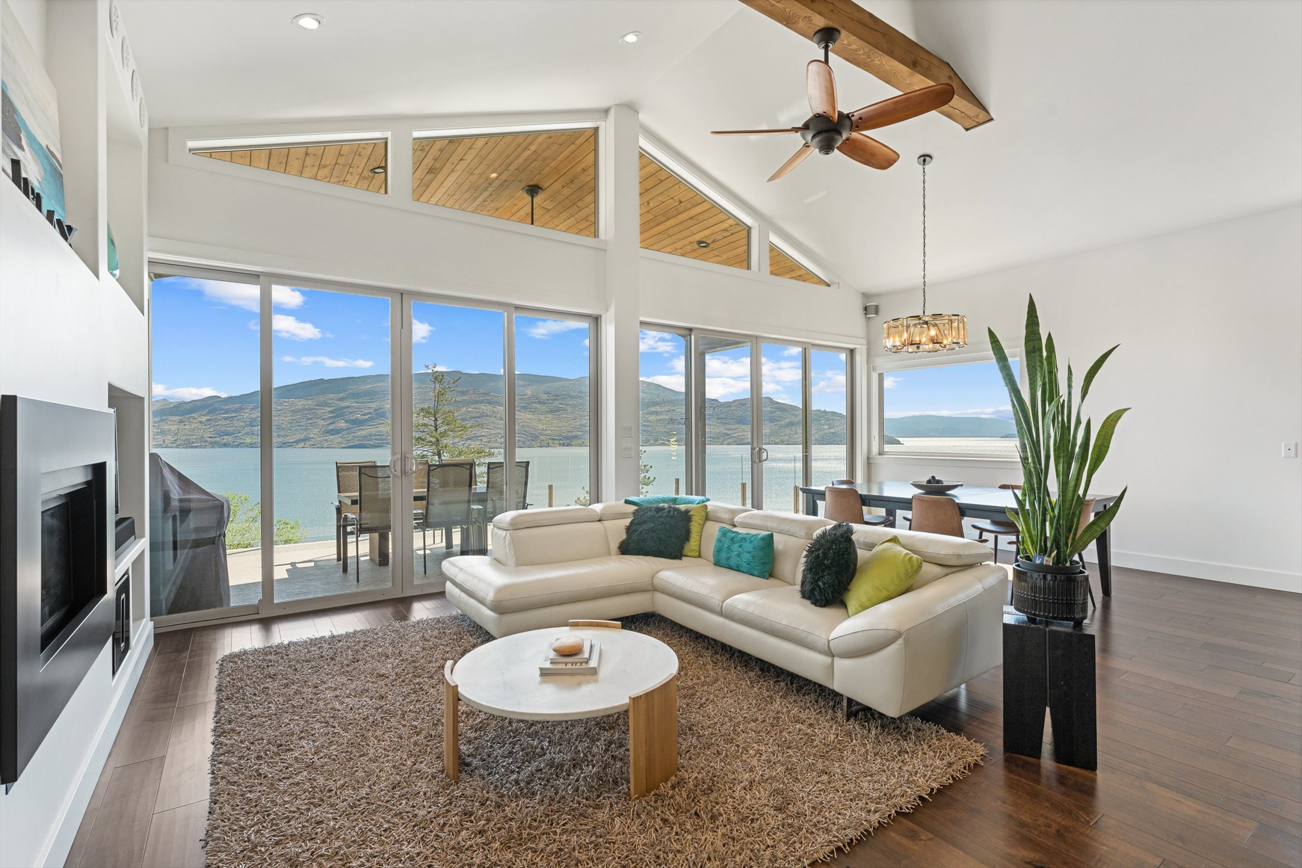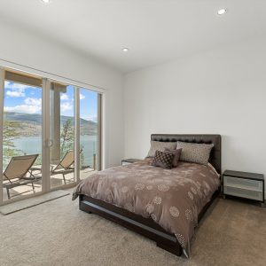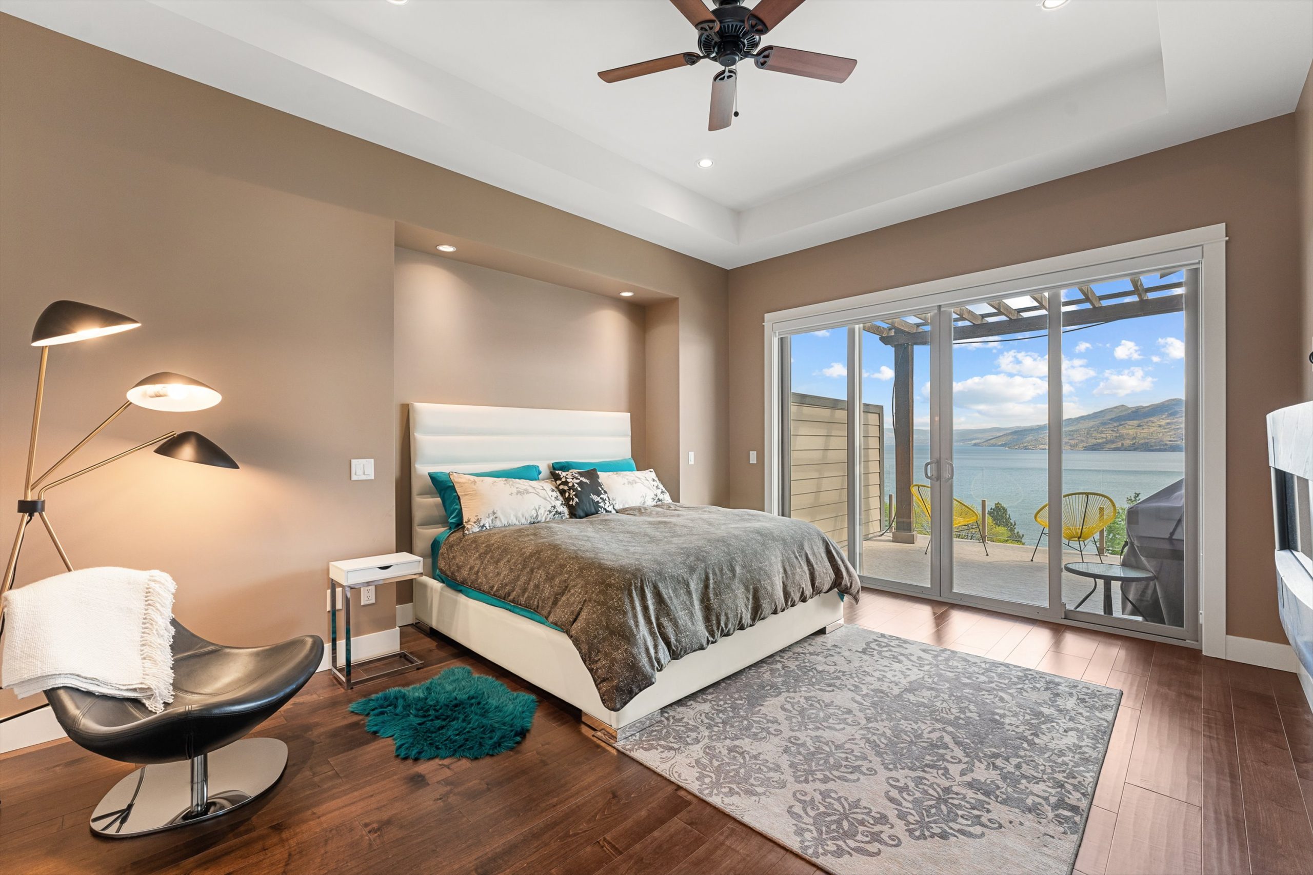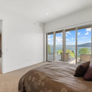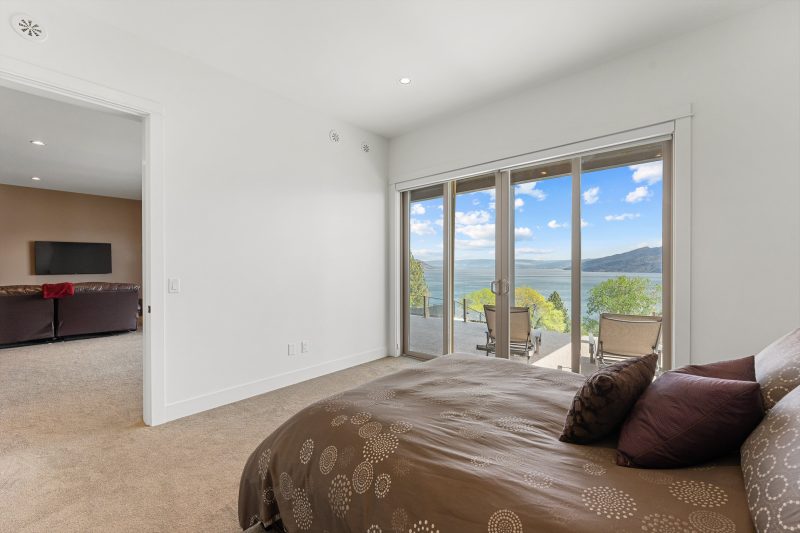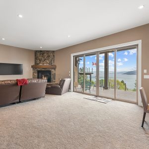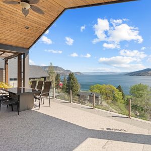 The main level is designed for effortless everyday living, with an open-concept kitchen, dining, and great room oriented to outstanding views of Okanagan Lake, Rattlesnake Island, and Squally Point. The primary suite is also located on the main level.