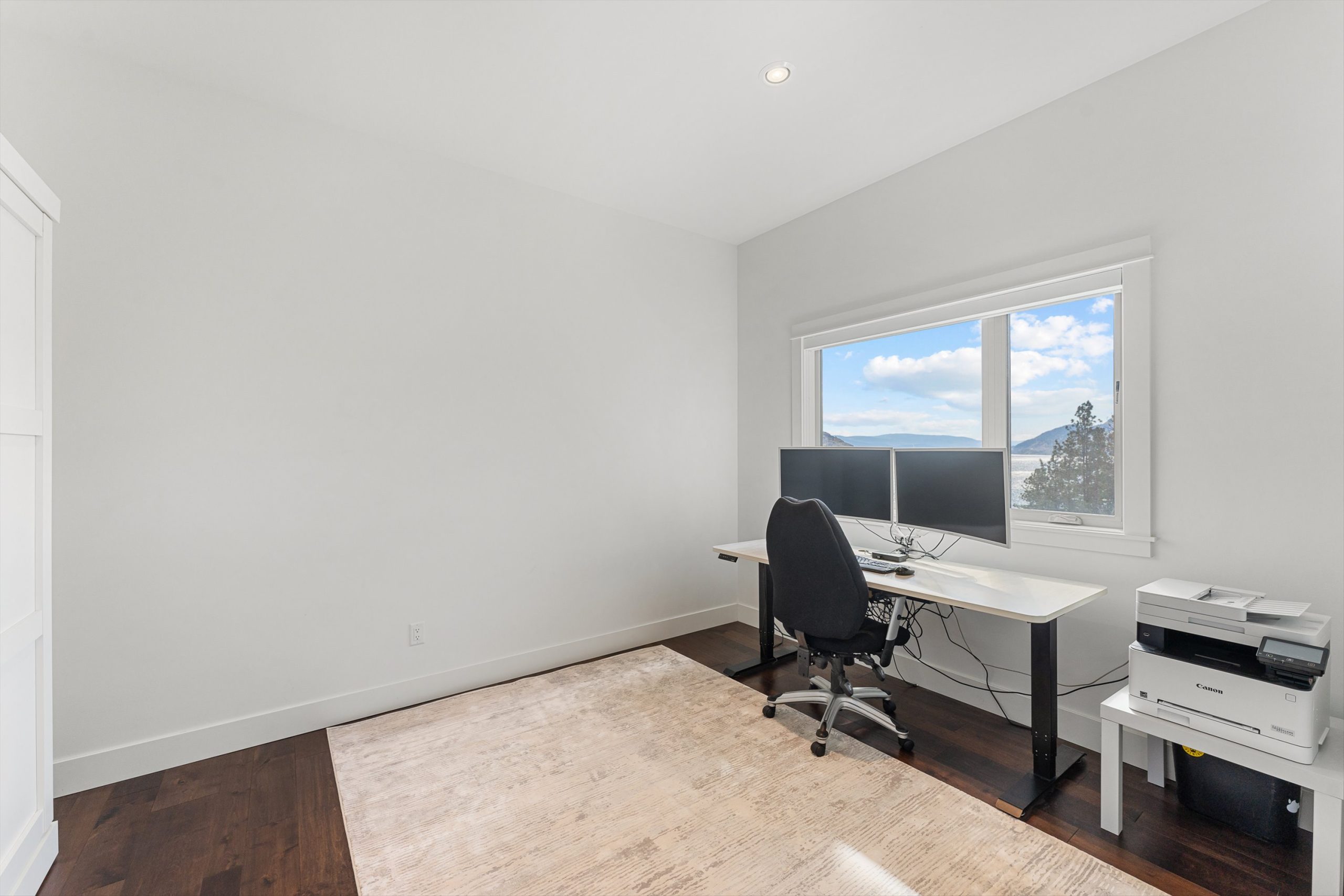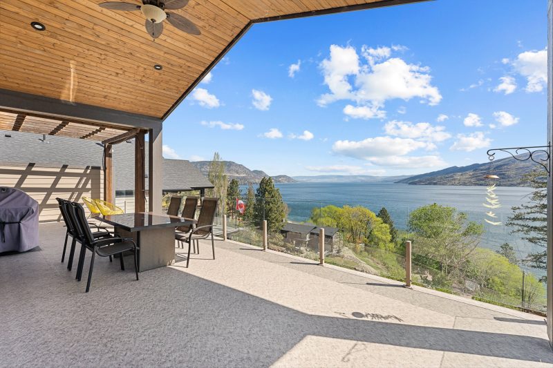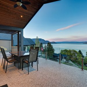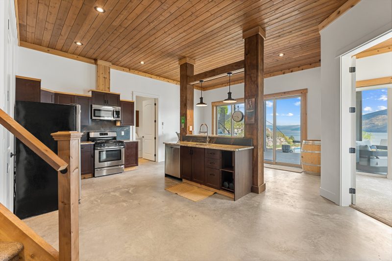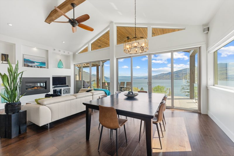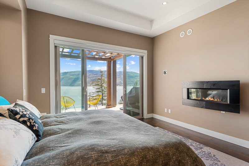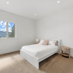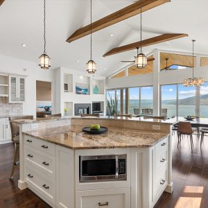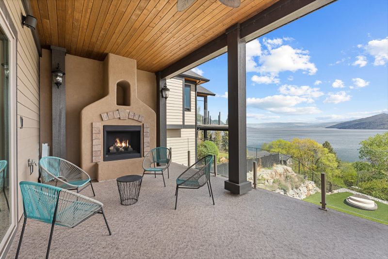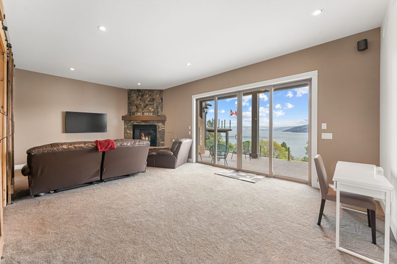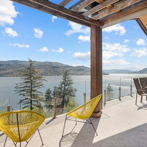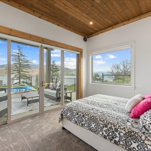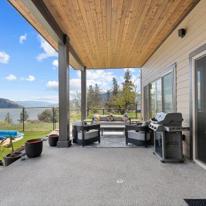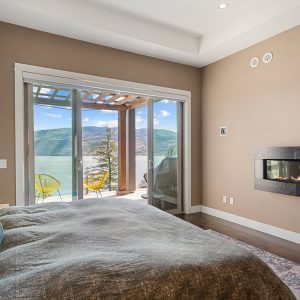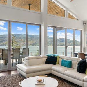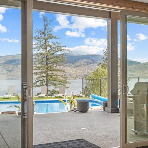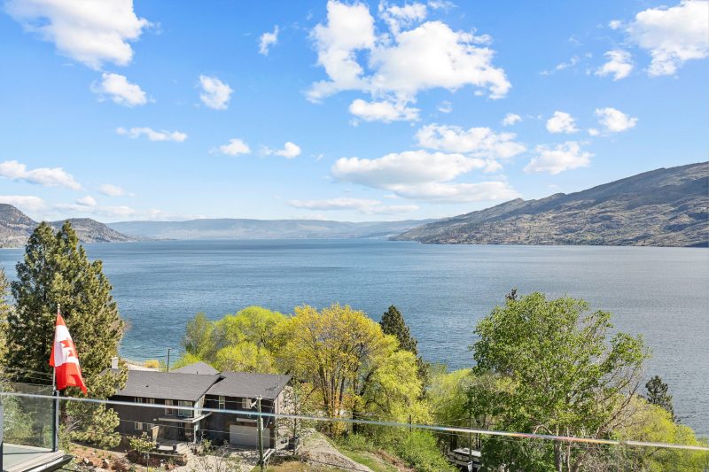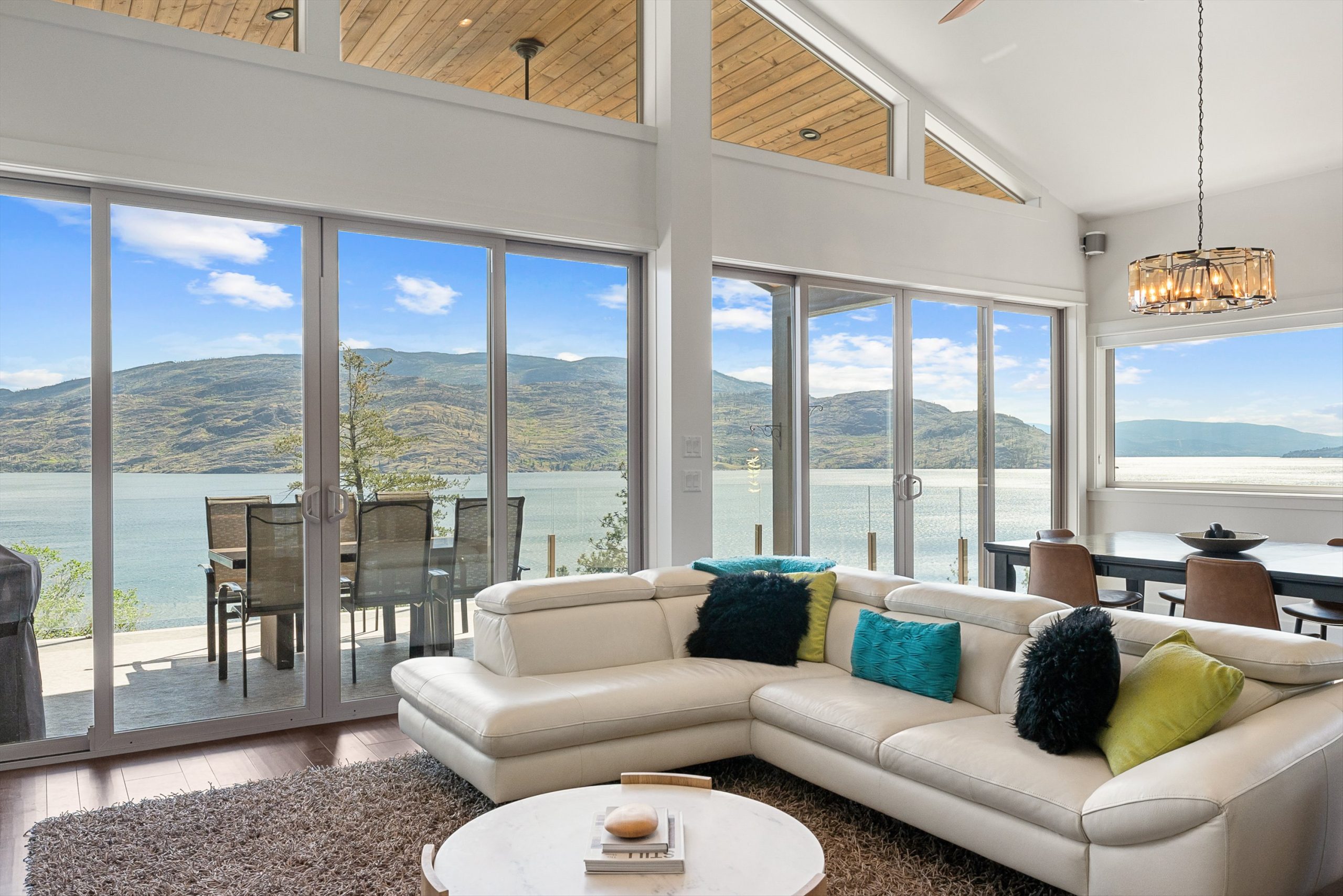 The main level is designed for effortless everyday living, with an open-concept kitchen, dining, and great room oriented to outstanding views of Okanagan Lake, Rattlesnake Island, and Squally Point. The primary suite is also located on the main level.