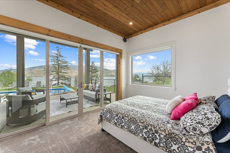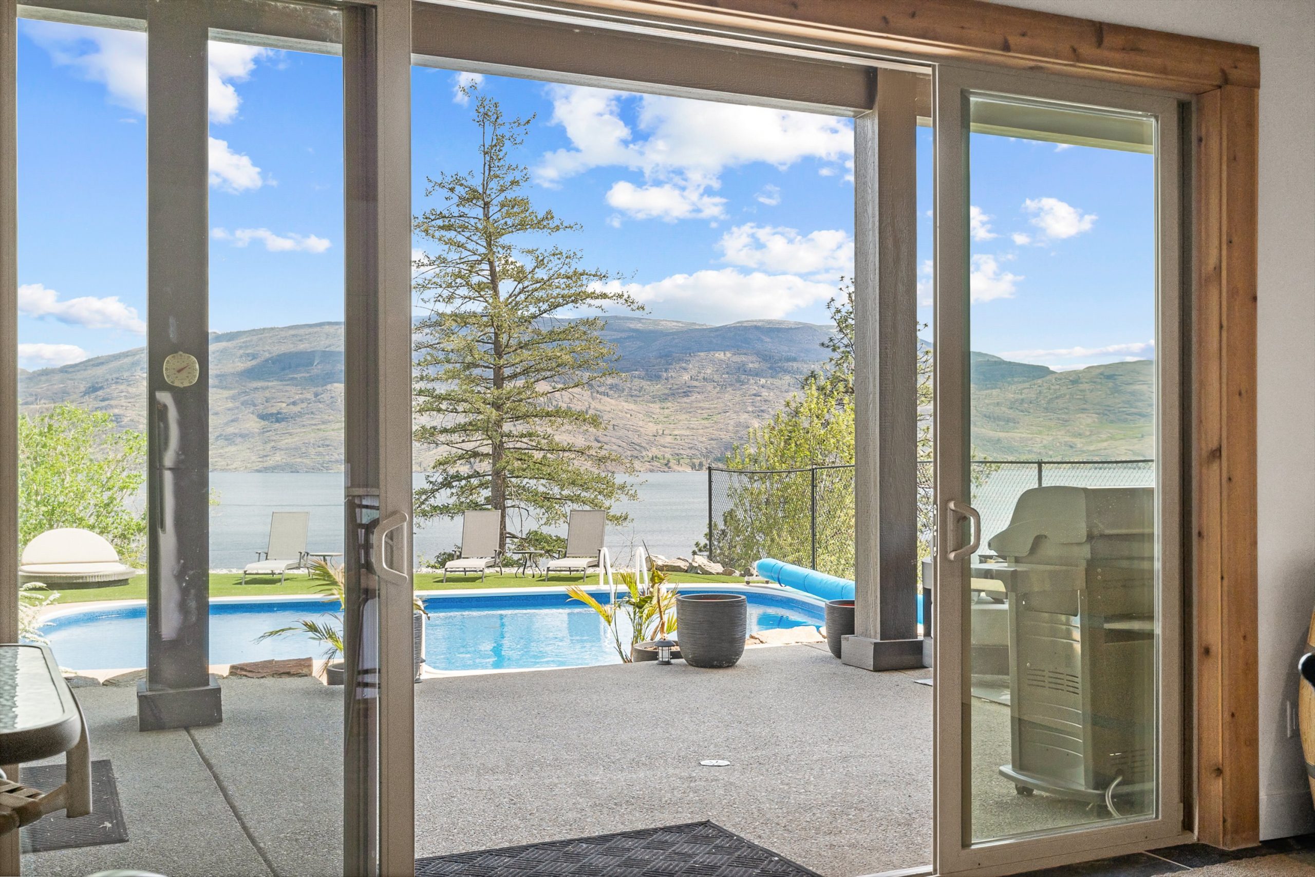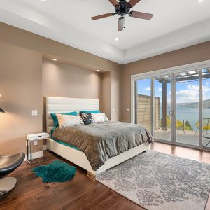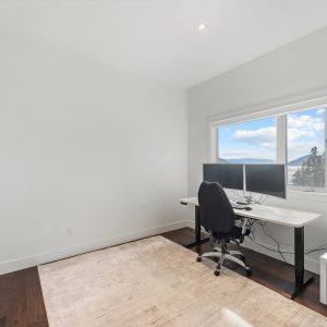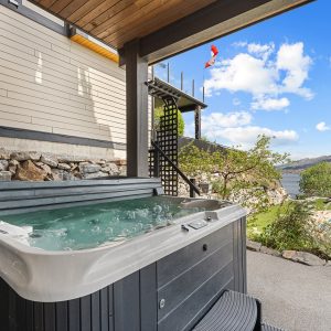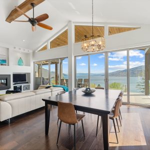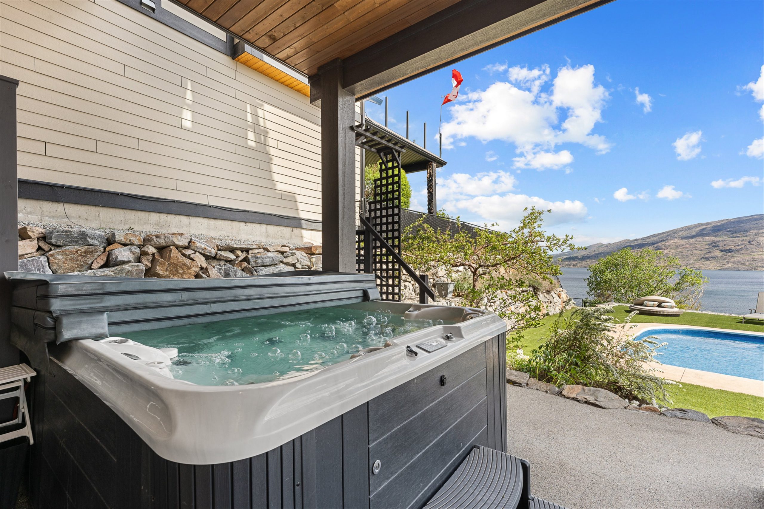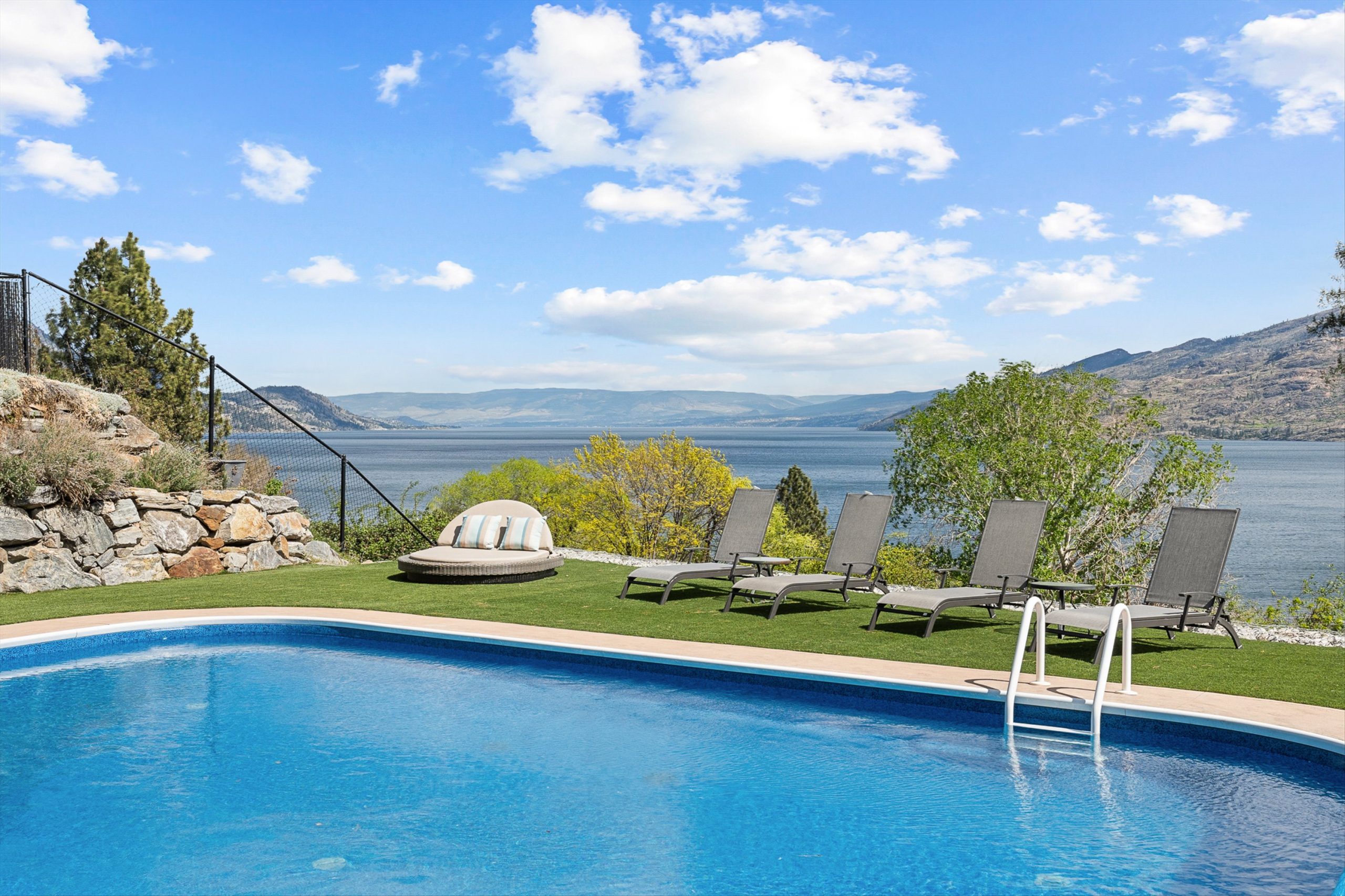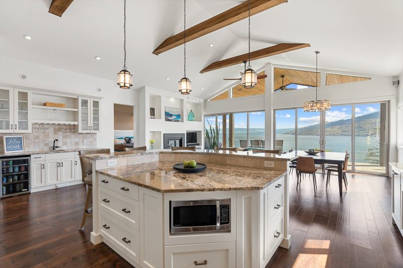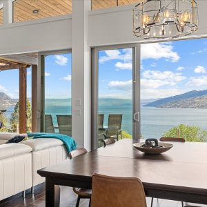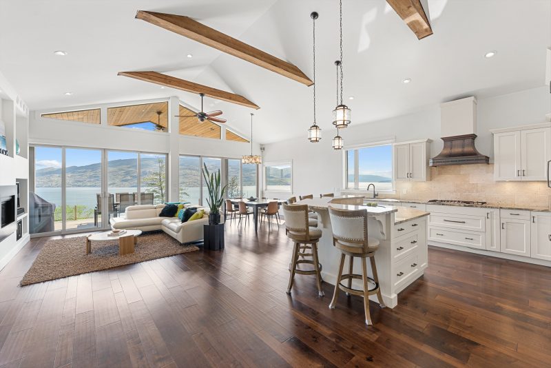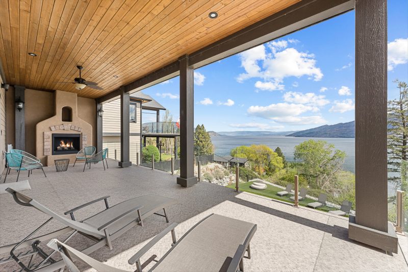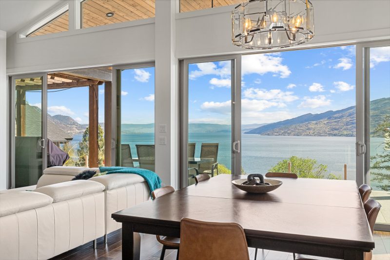 The main level is designed for effortless everyday living, with an open-concept kitchen, dining, and great room oriented to outstanding views of Okanagan Lake, Rattlesnake Island, and Squally Point. The primary suite is also located on the main level.