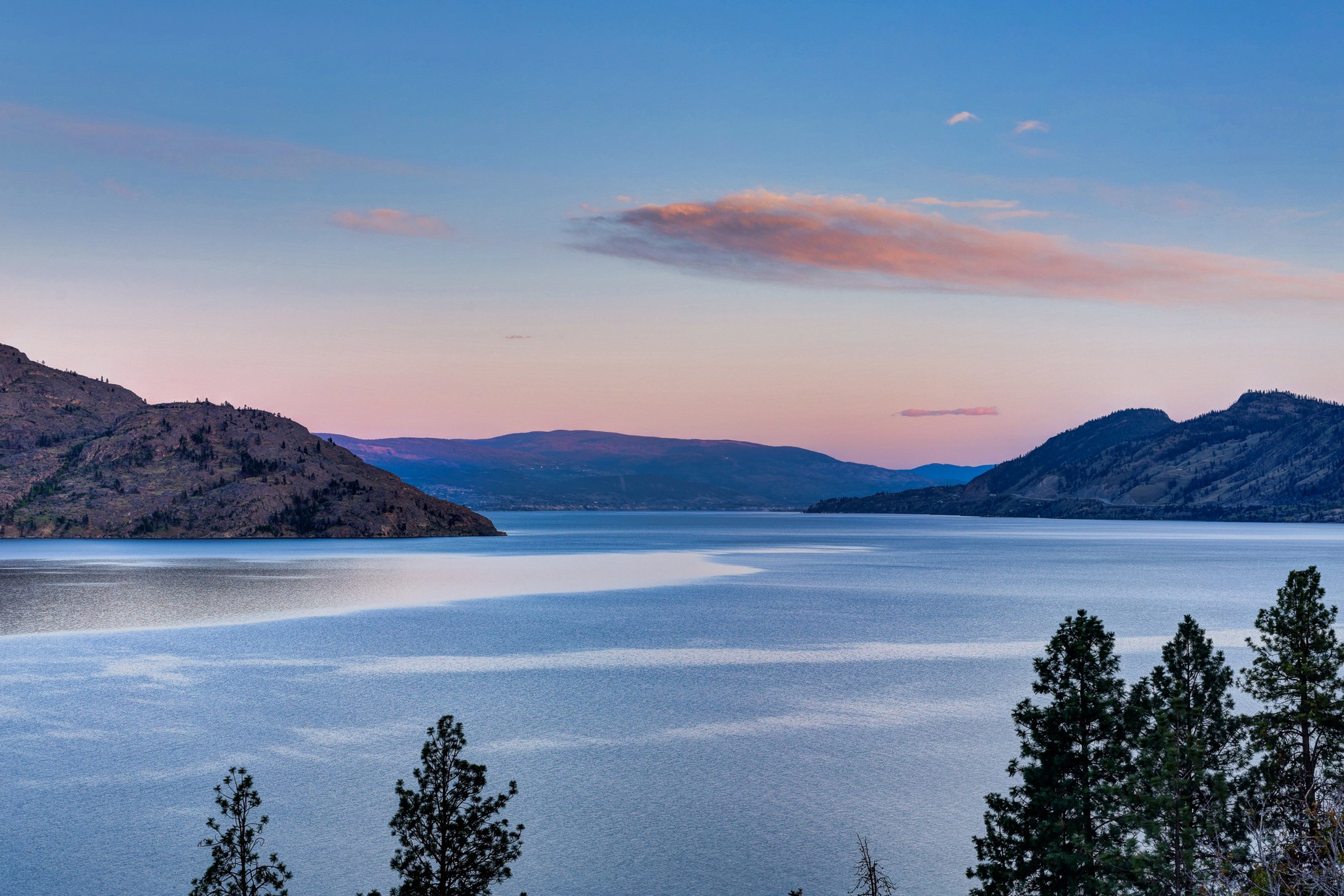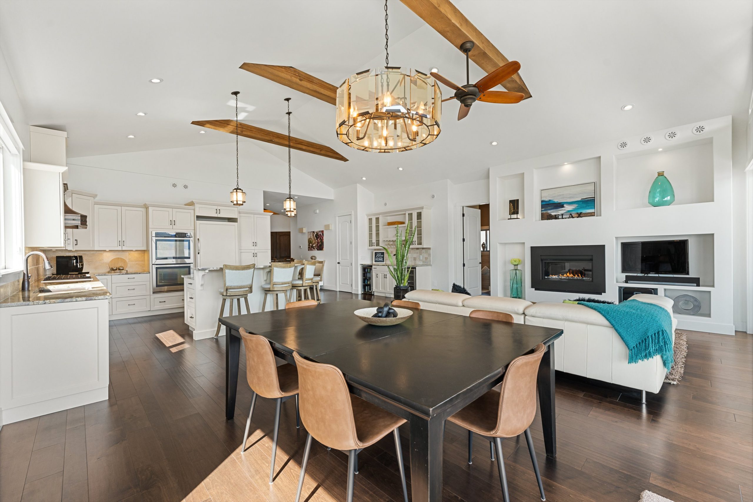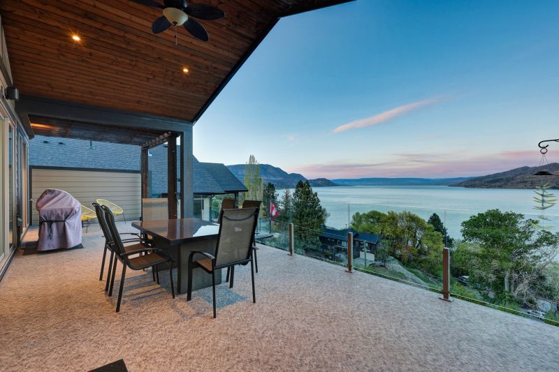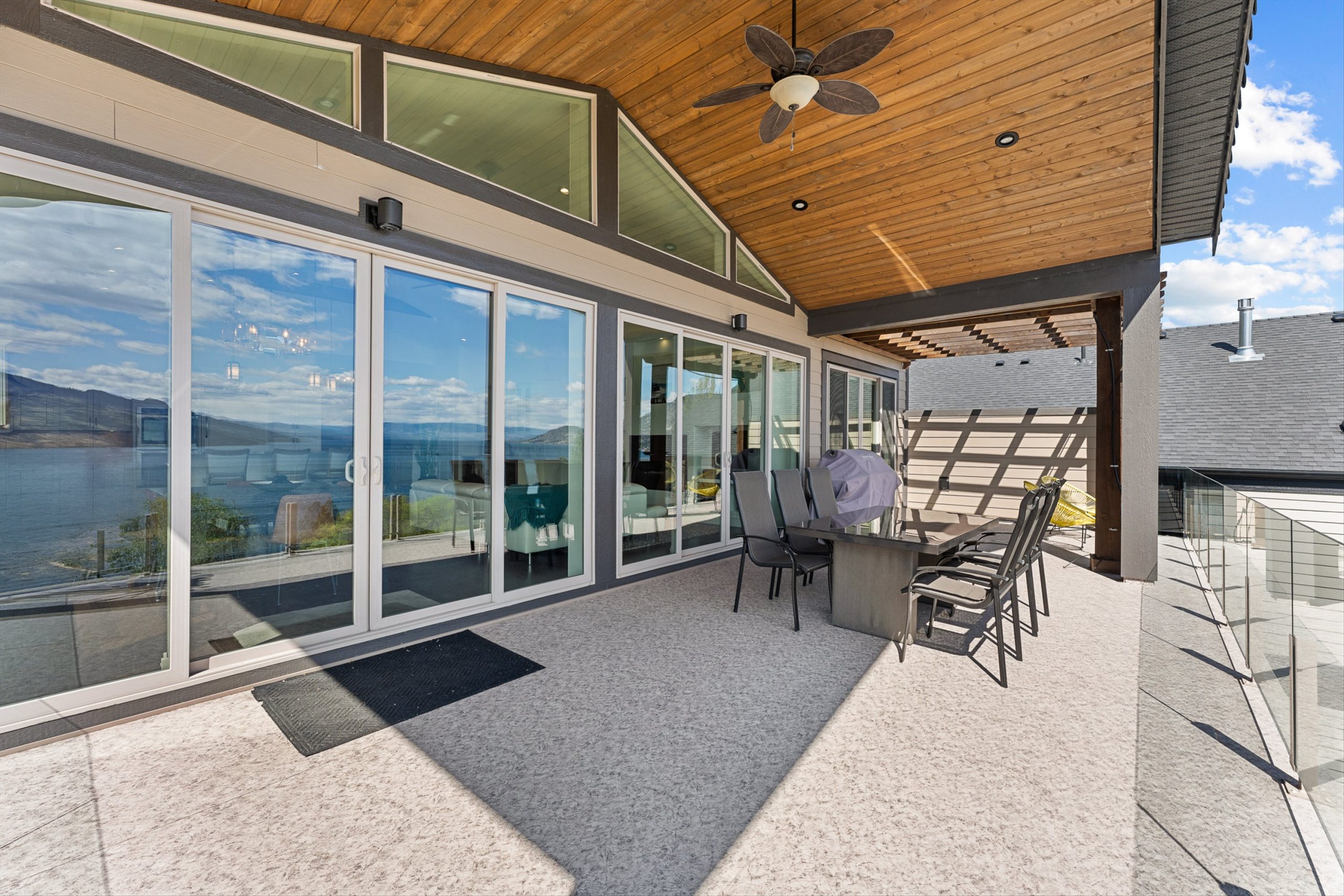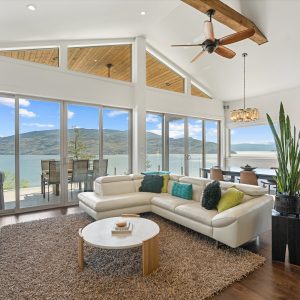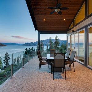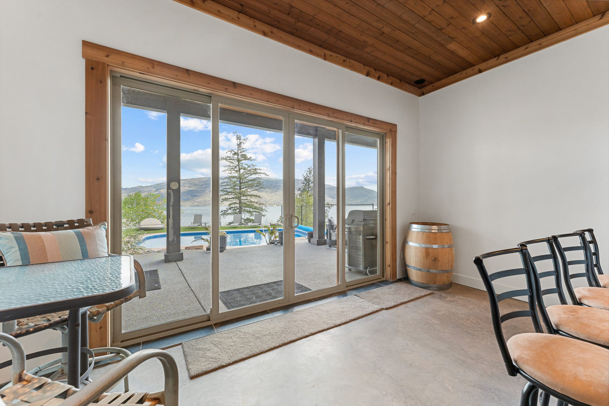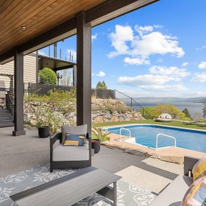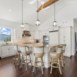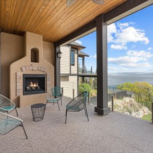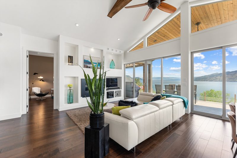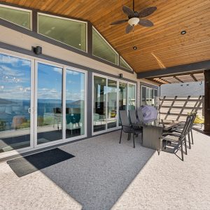 The main level is designed for effortless everyday living, with an open-concept kitchen, dining, and great room oriented to outstanding views of Okanagan Lake, Rattlesnake Island, and Squally Point. The primary suite is also located on the main level.