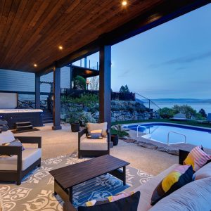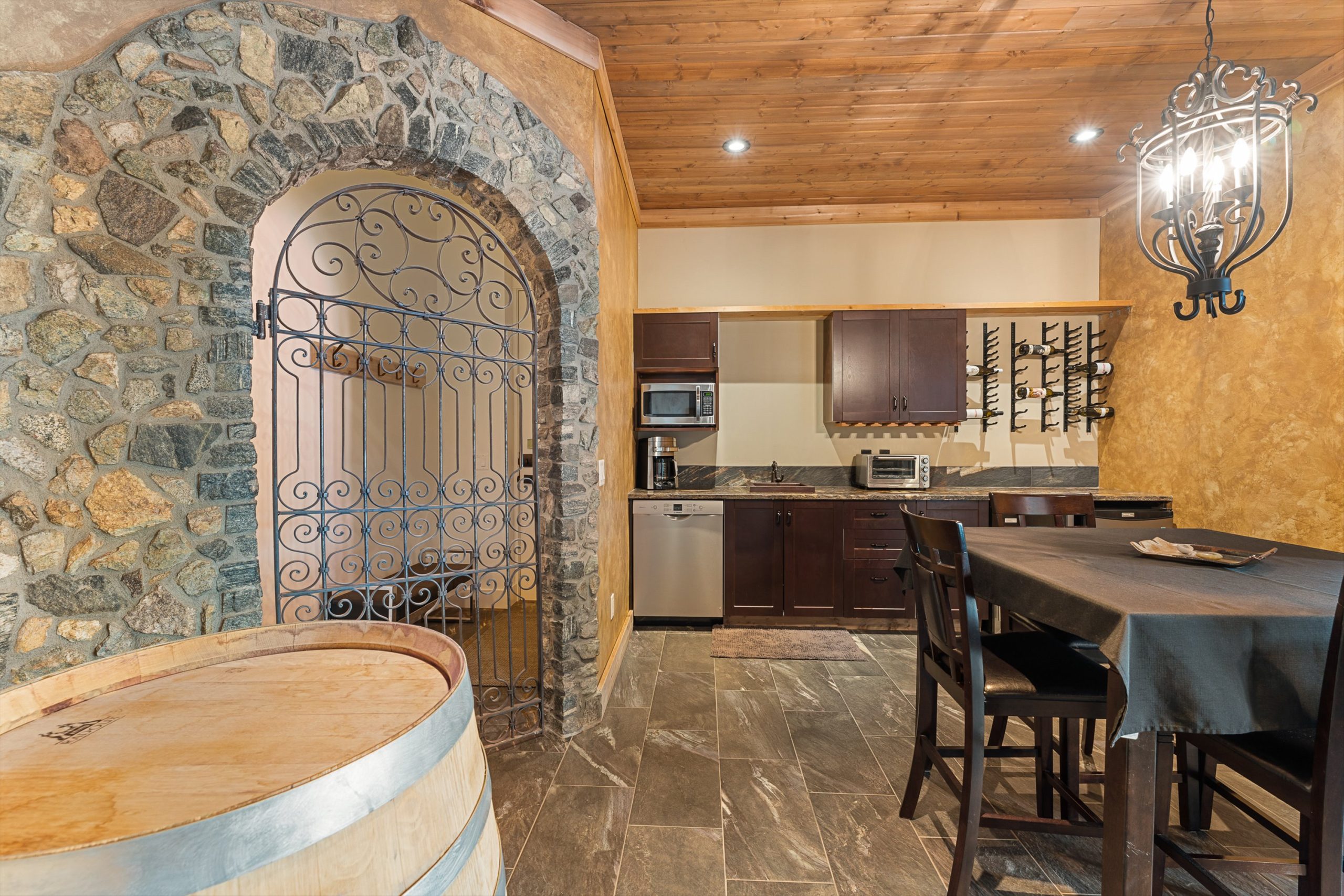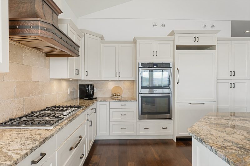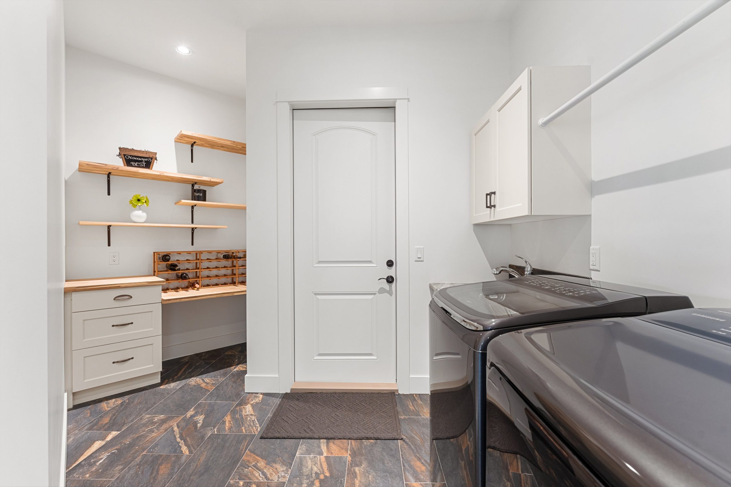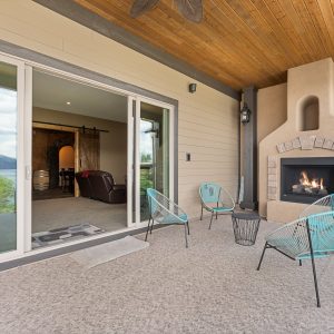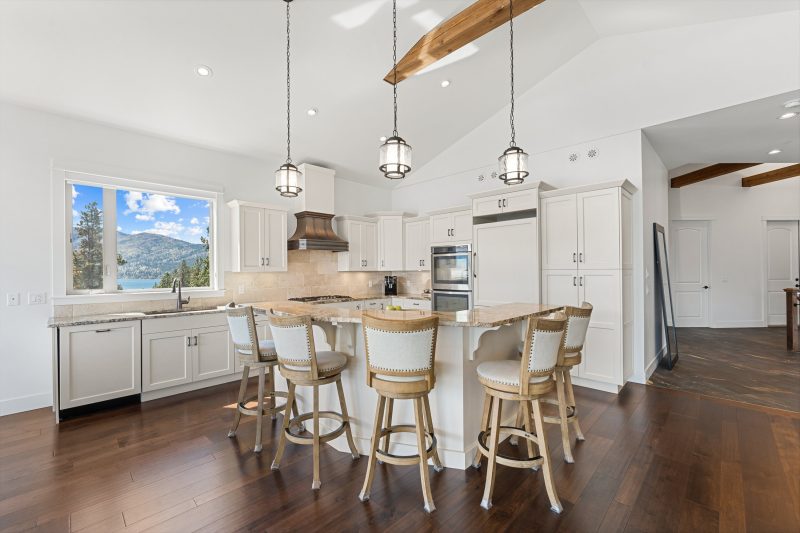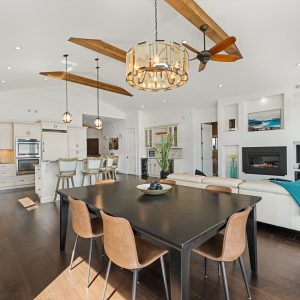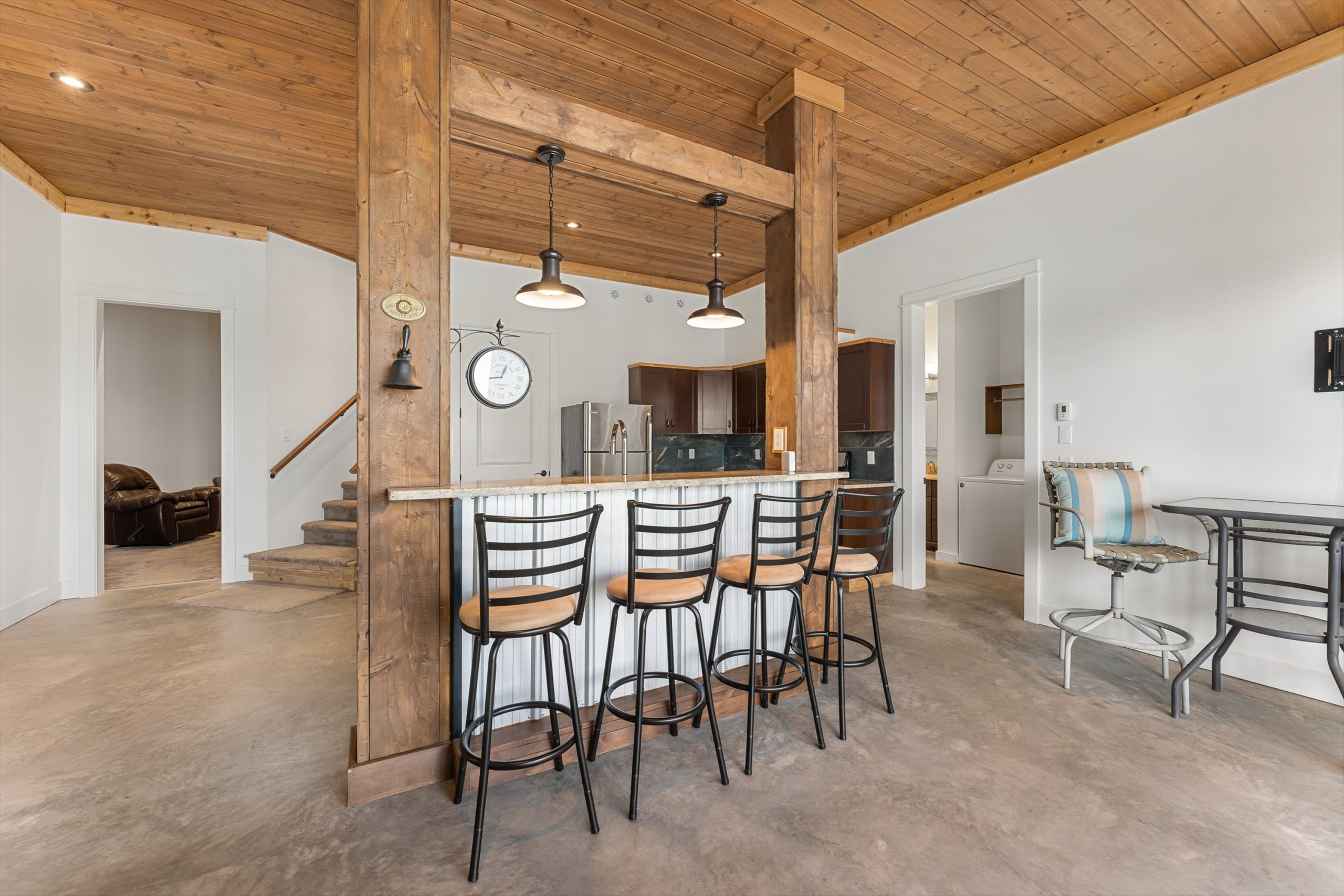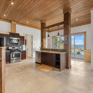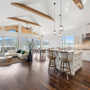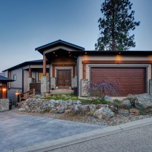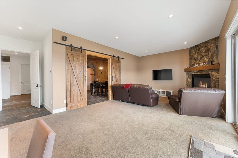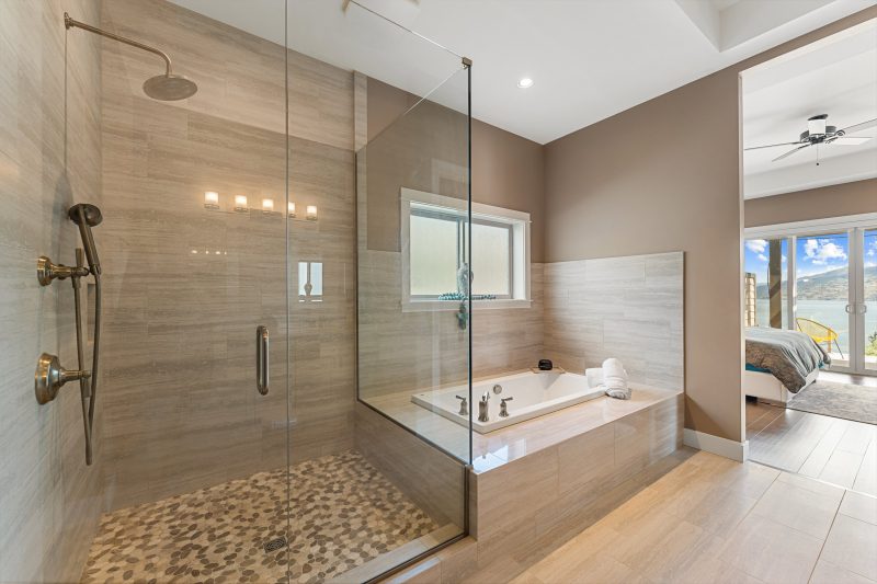 The main level is designed for effortless everyday living, with an open-concept kitchen, dining, and great room oriented to outstanding views of Okanagan Lake, Rattlesnake Island, and Squally Point. The primary suite is also located on the main level.