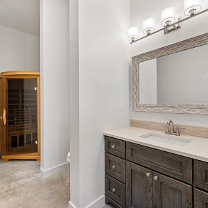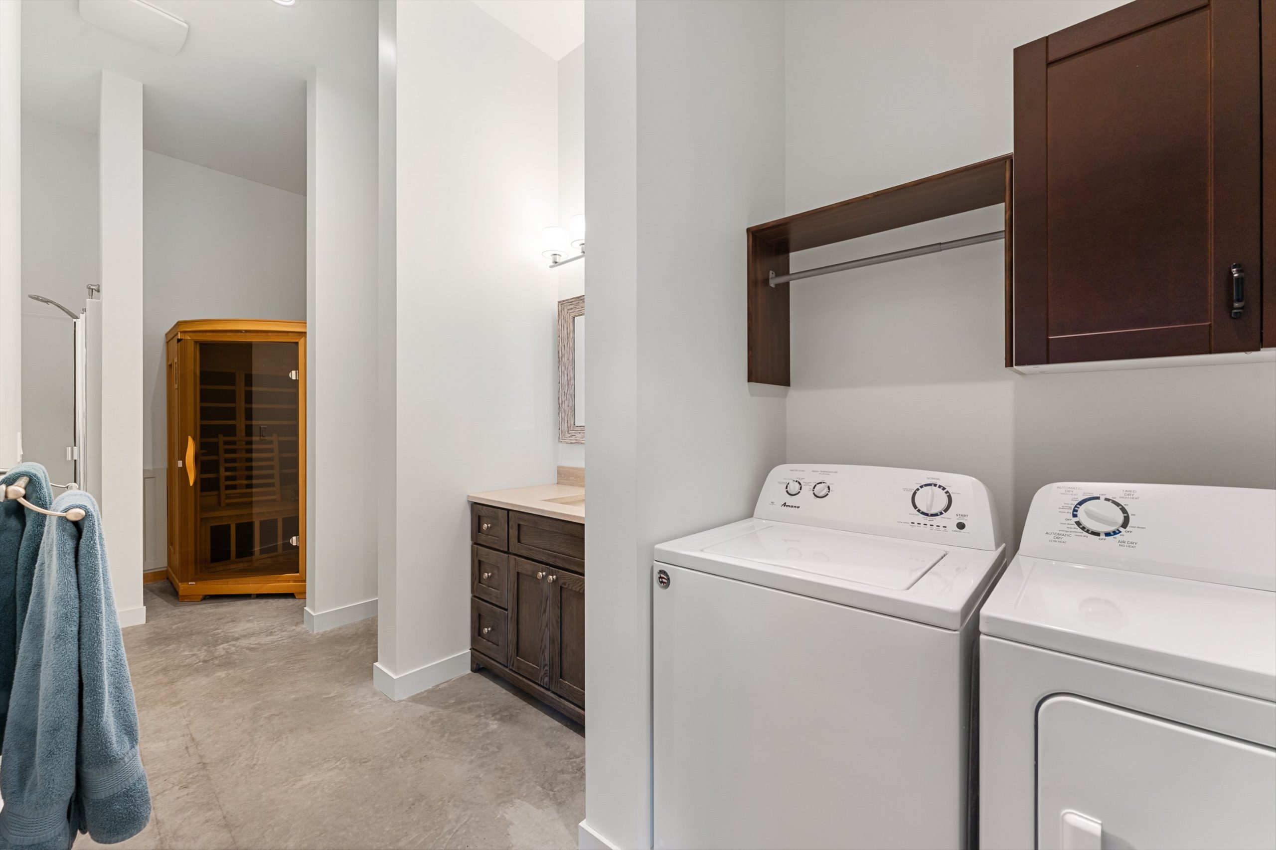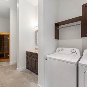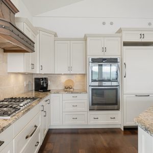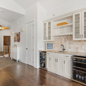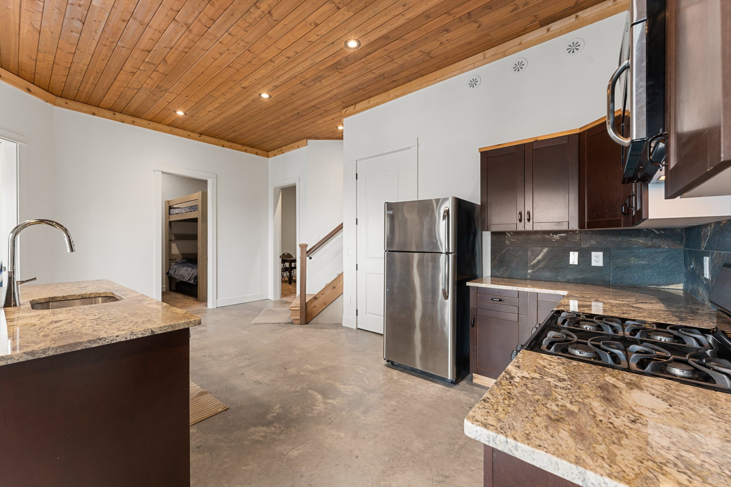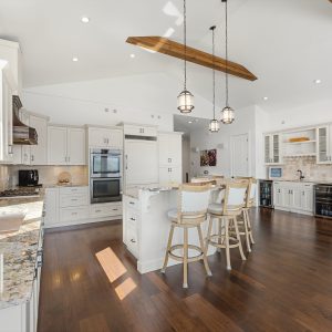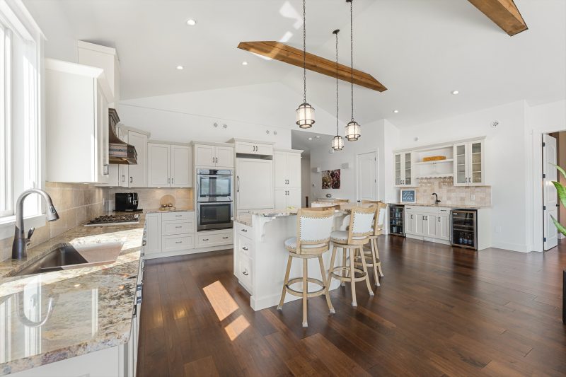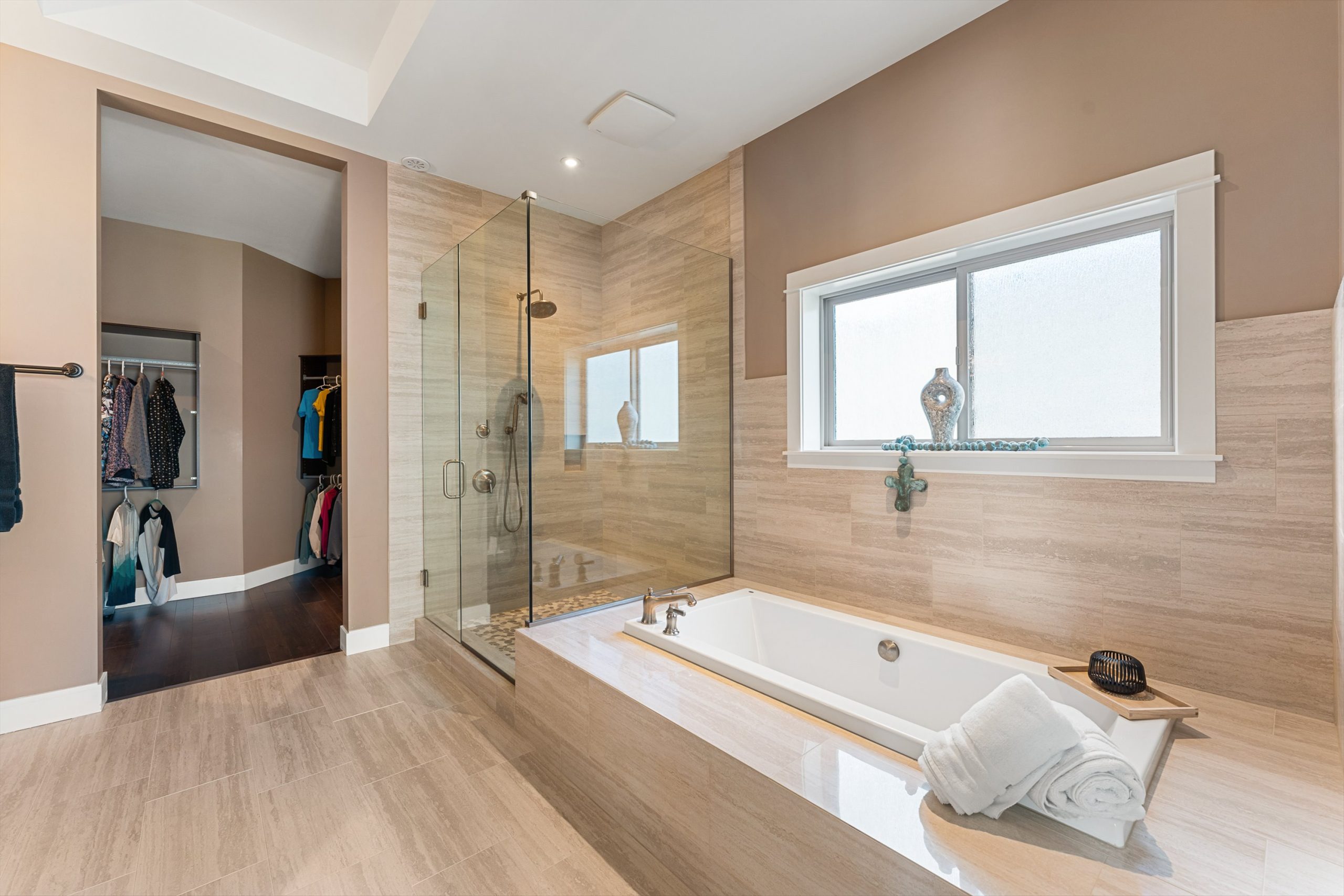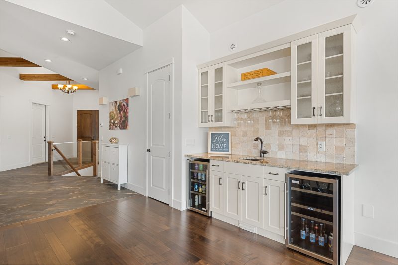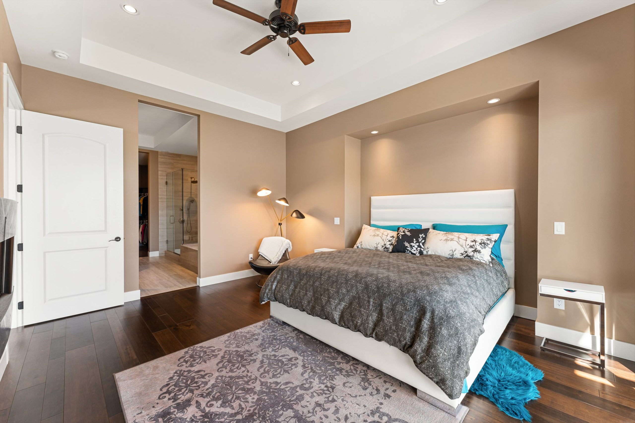 The main level is designed for effortless everyday living, with an open-concept kitchen, dining, and great room oriented to outstanding views of Okanagan Lake, Rattlesnake Island, and Squally Point. The primary suite is also located on the main level.