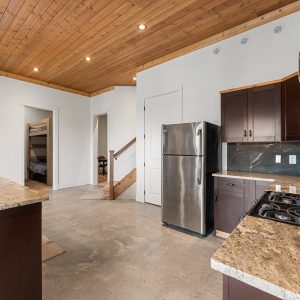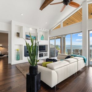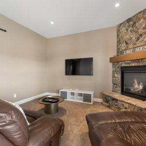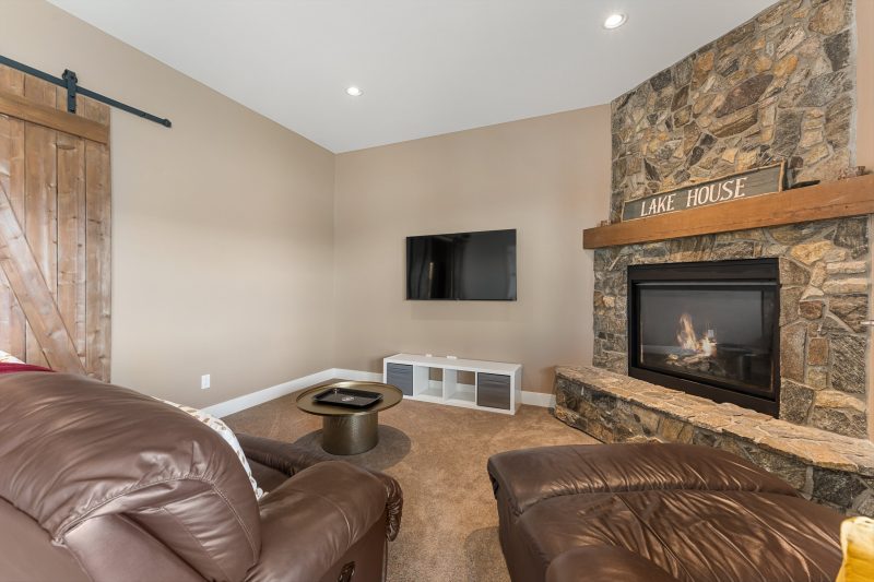 An expansive east-facing deck creates the perfect setting for sunrise coffees and evening entertaining. The middle level adds excellent flexibility, with a lock-off 1 bedroom,1 bathroom self-contained suite currently operating as an AirBnB, plus an additional lake-view bedroom with ensuite that remains part of the main home. Walk-out access from the suite leads to a covered deck with an outdoor fireplace and frameless glass railings.