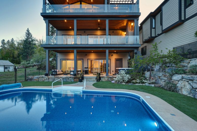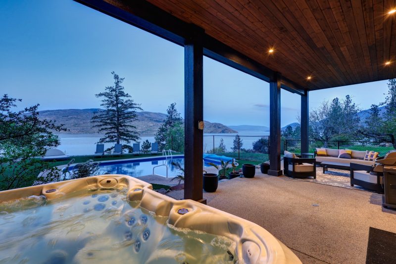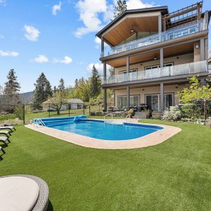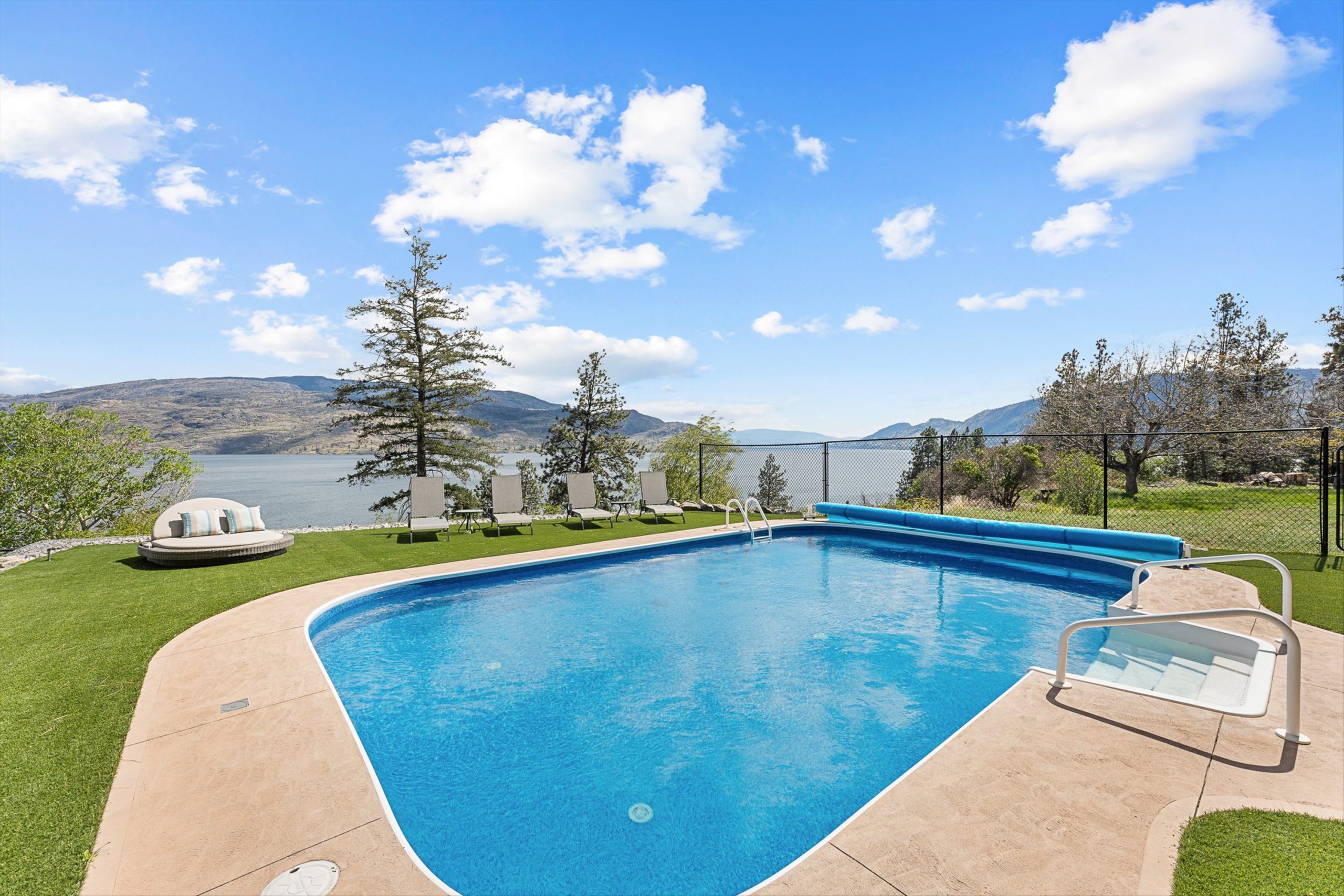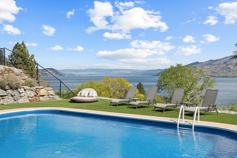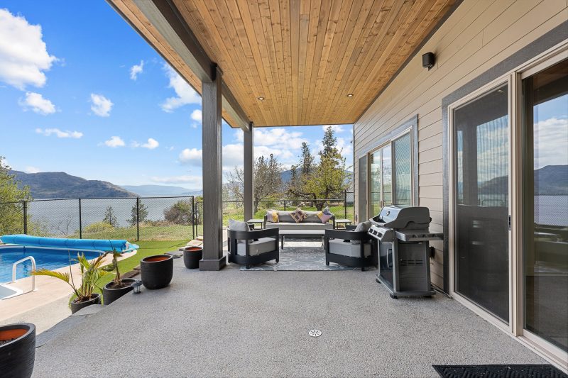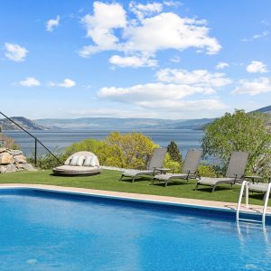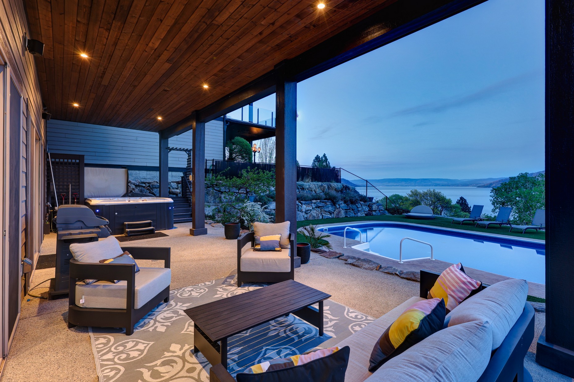 Set in the quiet, no-through enclave of Sundstrom Court, this Peachland home pairs panoramic Okanagan Lake views with a pool, hot tub, and a 1 bedroom, 1 bath self-contained suite. Offering approximately 4,900+ sq. ft. on 0.31 acres, it features 5 bedrooms and 5 bathrooms across three levels, with wide-plank hardwood, high ceilings, exposed beams, custom window coverings, and a striking central staircase with glass railings.