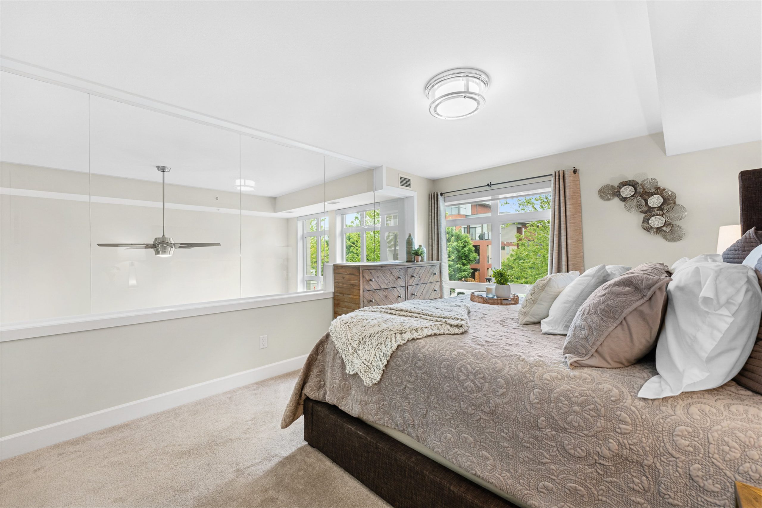 Beautiful Brownstone lofted townhome in an incredible South Pandosy location. Nestled in one of Kelowna’s vibrant neighbourhoods, this residence places you just steps from beaches, parks with tennis courts, boutique shops, coffee houses, restaurants, and lively nightlife. The private gated entry opens onto an expansive patio—an outdoor oasis perfect for entertaining or unwinding. Inside, the meticulously designed split-level layout offers over 1,400 sq. ft. of stylish living with soaring ceilings, fresh paint throughout, and walls of windows that flood the space with natural light.
