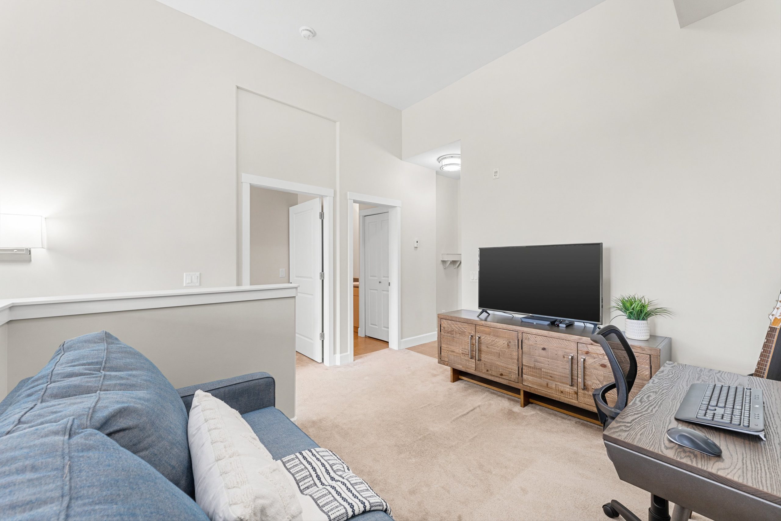 The open-concept main level features a gourmet kitchen with Corian countertops, stainless-steel appliances, and a generous living area ideal for both relaxation and entertaining. Upstairs, the lofted primary suite is enclosed in glass for an architectural touch, complete with a luxurious ensuite and ample closet space. A den and second bath add versatility for guests or a home office. The parking stall features EV parking. This South Pandosy townhome offers an exceptional opportunity to craft your own urban retreat—just steps from beaches, parks with tennis courts, boutique shopping, vibrant cafes, restaurants, and nightlife.