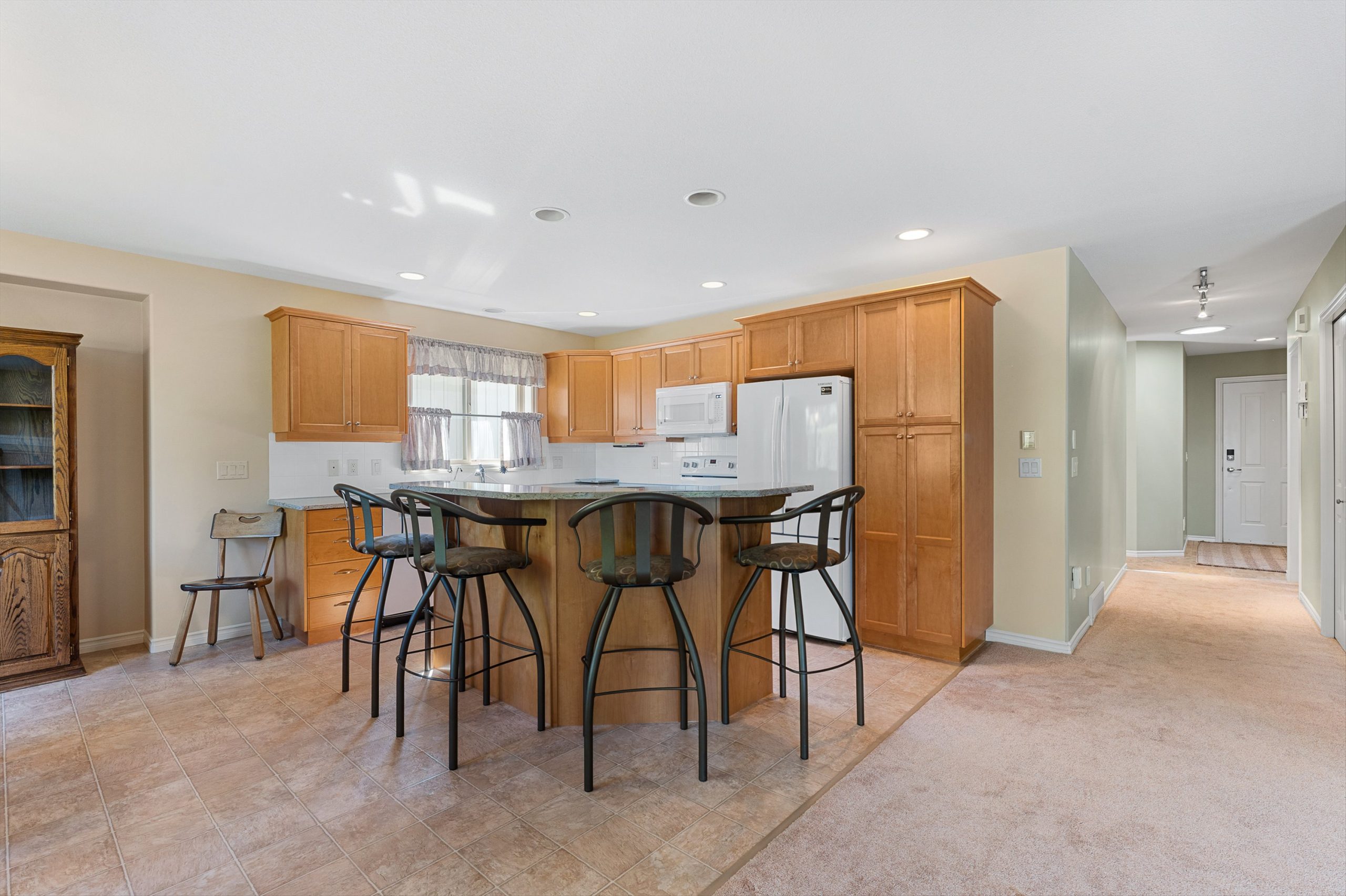 The lower level is ideal for guests with 2 additional bedrooms, a full bath, and a large recreation room, plus ample storage areas. Residents of The Greens have access to a clubhouse with gym, outdoor pool, and are just steps to walking trails around Munson Pond. This home is positioned on the quieter side of the development, offering added privacy and less traffic. The layout allows for comfortable main-floor living, with the basement well-suited as private guest quarters. With a convenient location and low-maintenance lifestyle, this home is an excellent option for downsizers looking for space and amenities in a central setting
