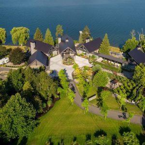 Expansive outdoor living area with pool, hot tub, covered patios, and ample entertaining areas. Grand in scope and scale the main wing boasts an impressive chef’s kitchen, elegant dining area and great room, theater, home gym, wine cellar, rec room with full bar, 2 main primary suites and 3 additional bedrooms all with ensuites. All rooms boast panoramic lake views. The 3 bedroom private guest wing features a full living space with a beautiful kitchen and lake view primary suite. Additional 1,800+ sq. ft. caretakers residence. Catered to hosting and entertaining this residence would be ideal for corporate retreats or large family gatherings.