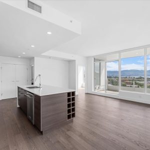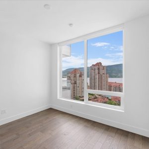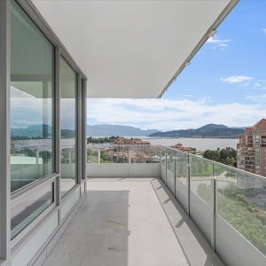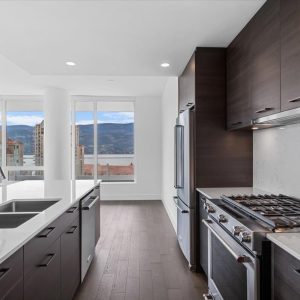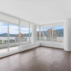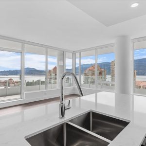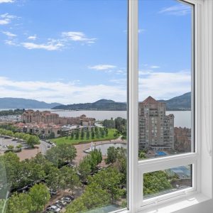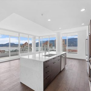 Experience elevated living at ONE Water Street, an exclusive condo development in the lively waterfront community of downtown Kelowna. Situated on the 13th floor of the West Tower, this contemporary, corner residence features 2 bedrooms, a flex space, and a truly unmatched lifestyle. With impressive 9′ ceilings and commanding views of the city, lake, and mountains, this home offers a seamless transition between indoor and outdoor living, complemented by a spacious 311 sq. ft. patio connected to the main living area. This property is the epitome of luxurious living.