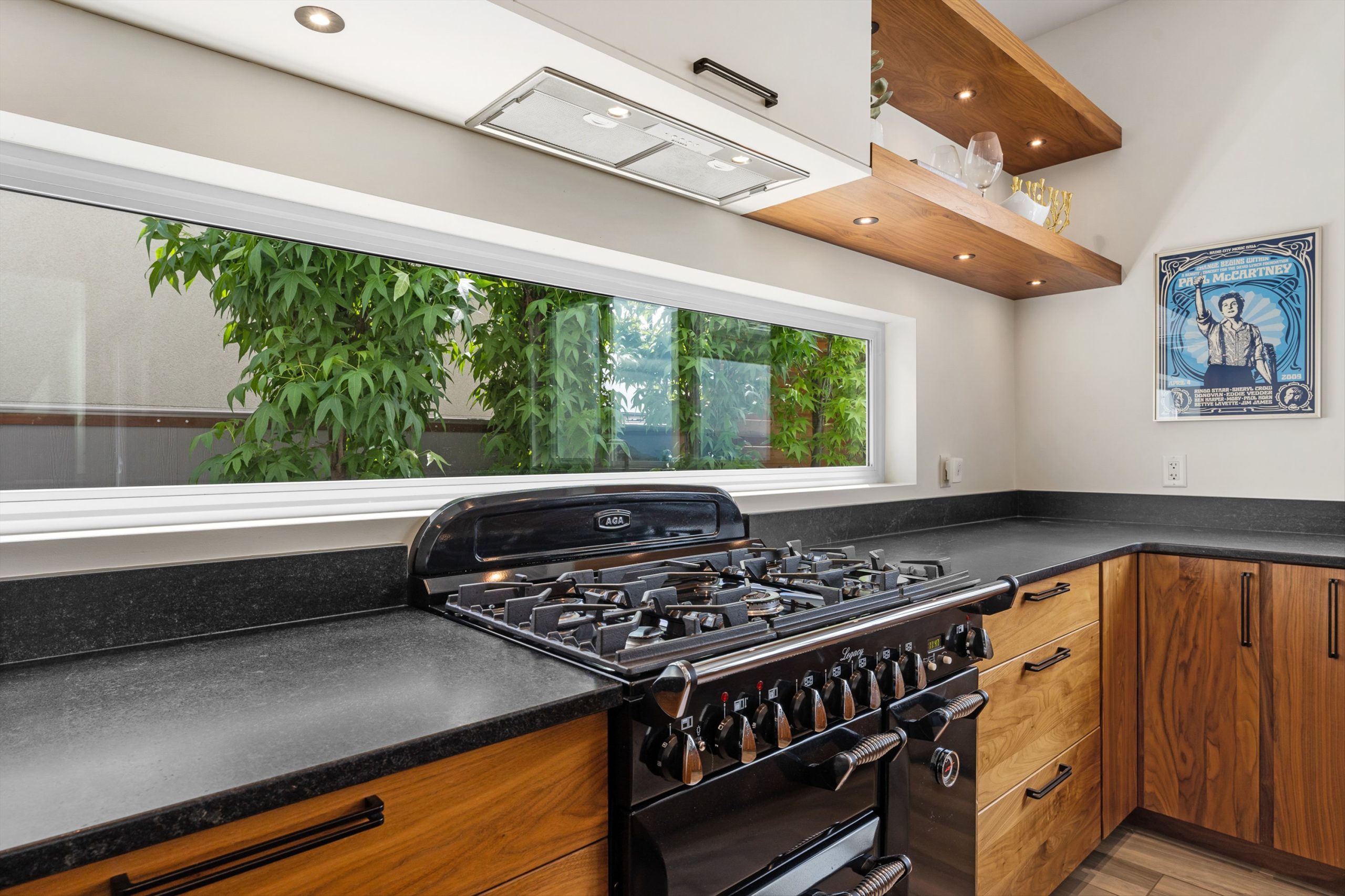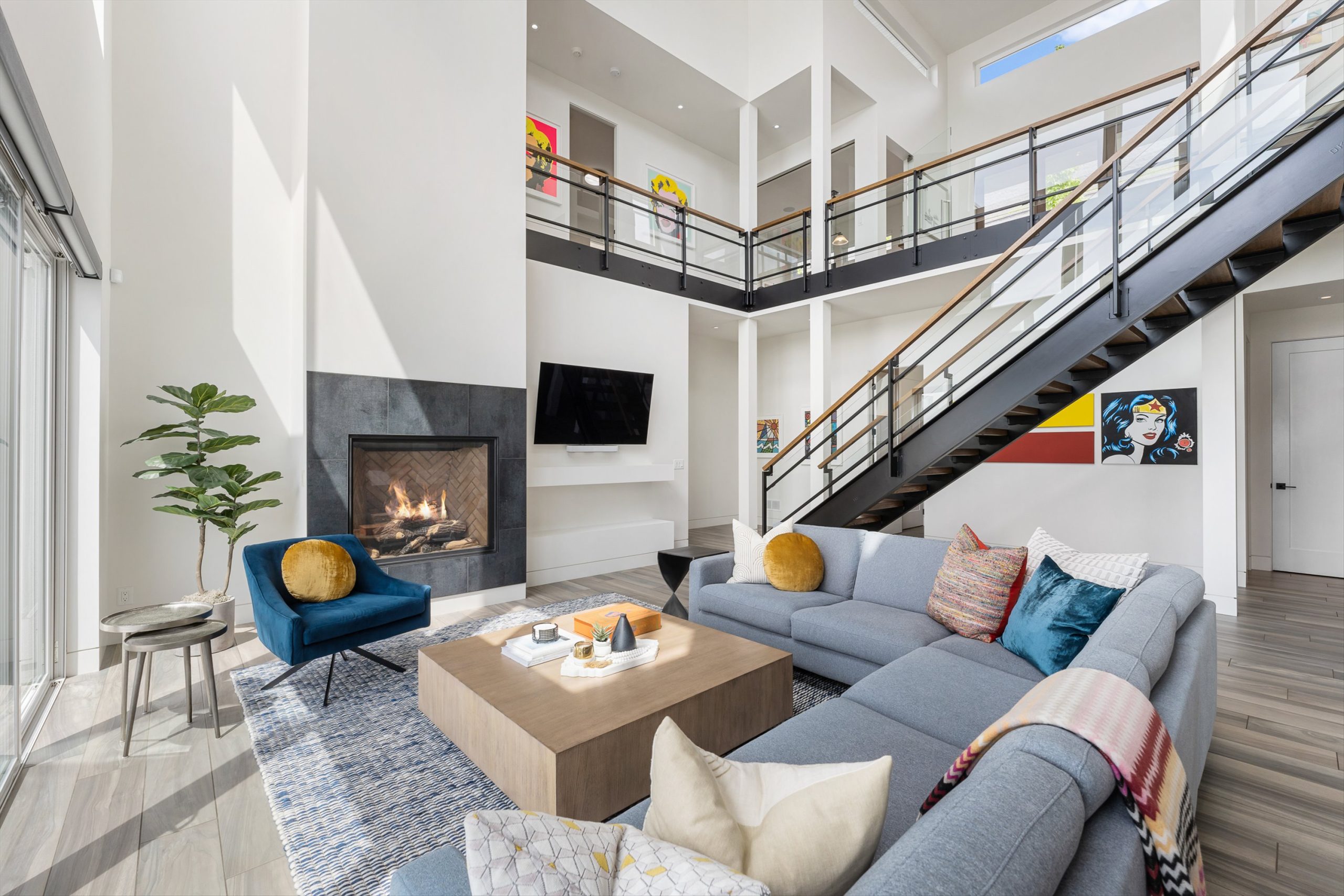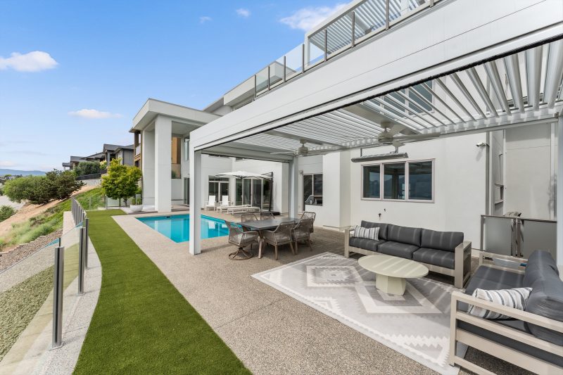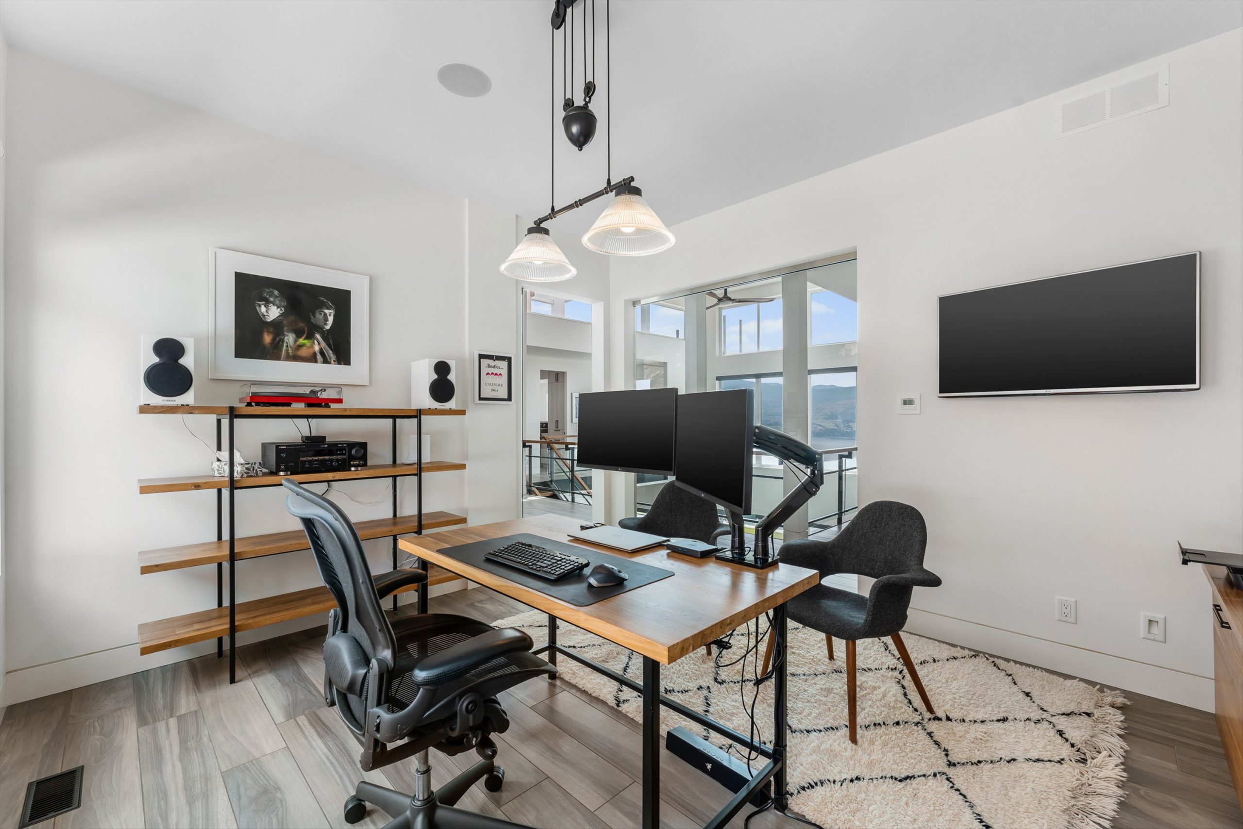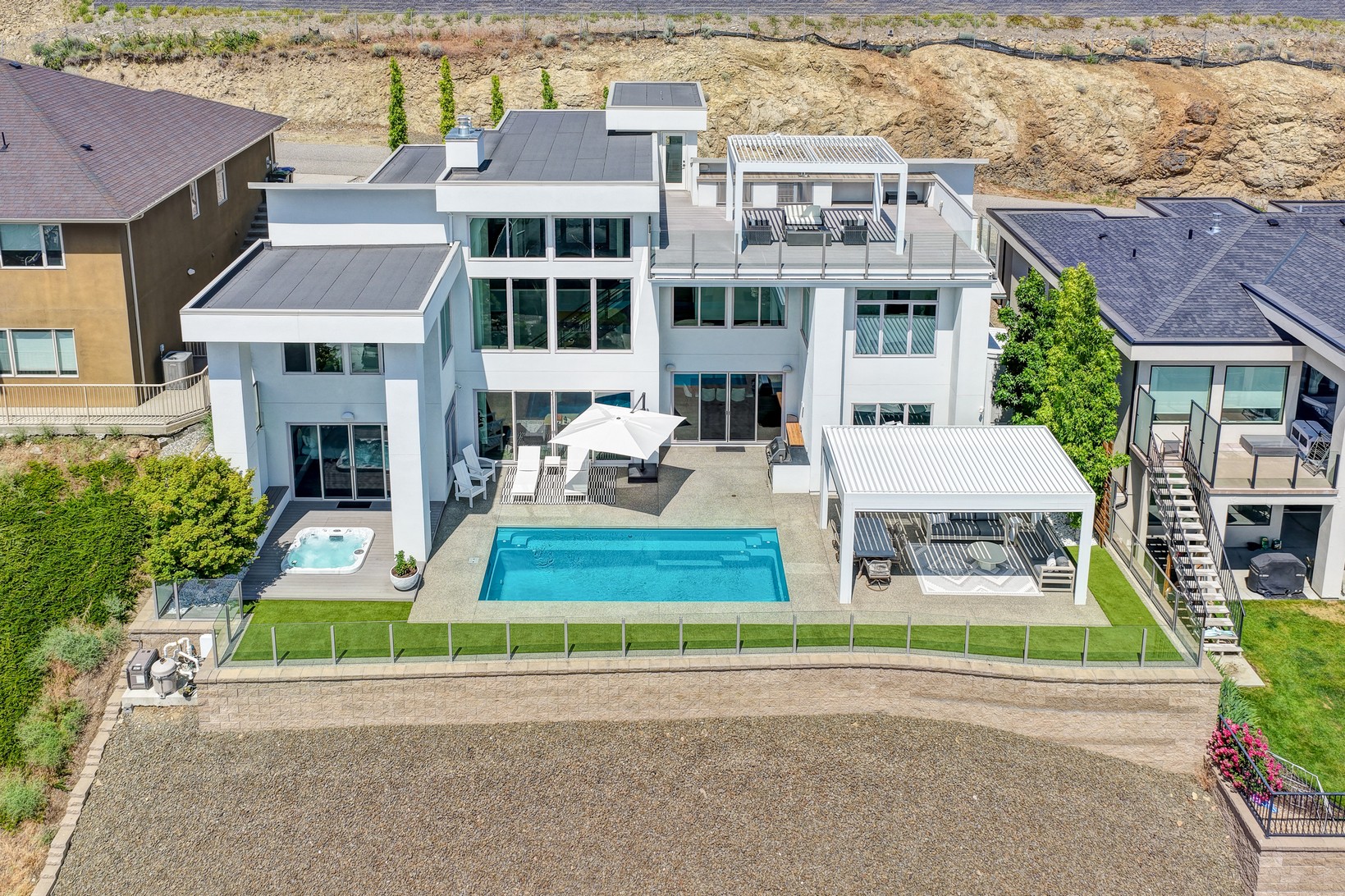 A contemporary showpiece in Lakeview Heights, this architectural residence is a masterclass in design, scale, and comfort. With soaring 12-ft ceilings, walls of glass, and seamless indoor-outdoor flow, the home is purposefully oriented to capture panoramic views of Okanagan Lake, surrounding vineyards, and the valley below. Crafted for elevated living and entertaining, the interior features heated tile plank floors, a grand-scale expansive fireplace in the great room, and a chef-inspired kitchen with leathered granite island, AGA range, Electrolux fridge/freezer, and butler’s pantry.