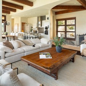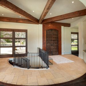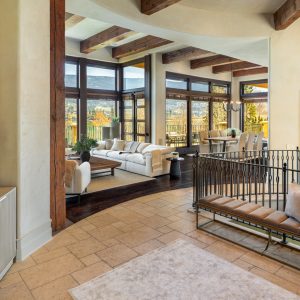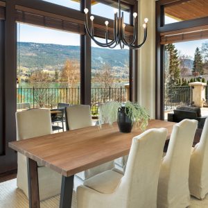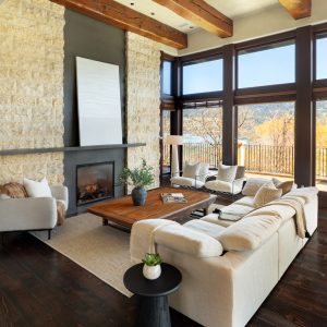 Interior design is a perfect blend of warmth and charm with modern day luxury. Historic front door shipped in from Europe, rough cut oversized wood beam details, spiral staircase, wall to wall windows for natural light to pass through. The main floor great room is amazing and finished with rich details with 16 ft. ceilings accented in rough cut beams. A chef’s kitchen with professional appliances and a functional layout. Enjoy the wrap around deck off the kitchen. The master retreat is perfectly positioned to capture the view, and offers a stunning ensuite, private deck access, fireplace and walk-in closets.