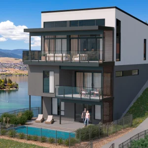 Welcome to Owl’s Nest an exclusive collection of 28 Net Zero luxury homes situated on the shores of Kalamalka Lake – one of the most beautiful and exclusive lakes in the Okanagan Valley. The community features panoramic lake views with direct access to the Okanagan Rail Trail and beach, municipally approved 20-slip private marina and resort-style amenities: multi-purpose sport courts and community fire pits to provide endless opportunities to relax and enjoy paradise. The Vista I features three-storey walk out homes at 2,716 sq. ft. with 833 sq. ft. of outdoor living space.