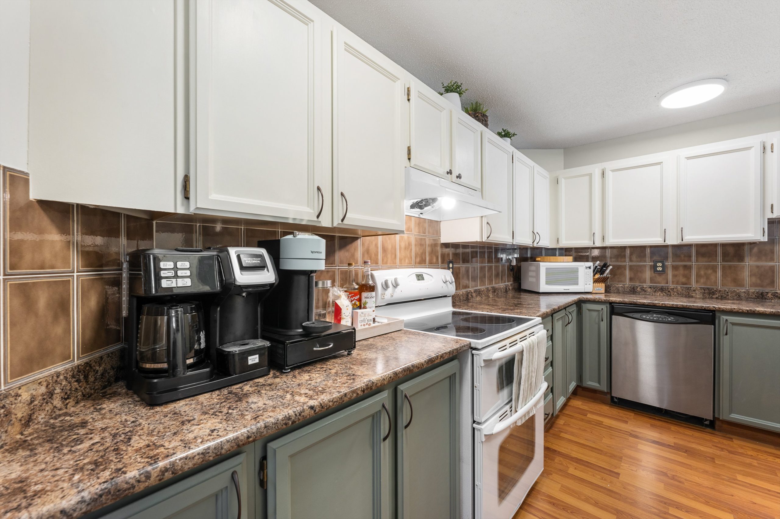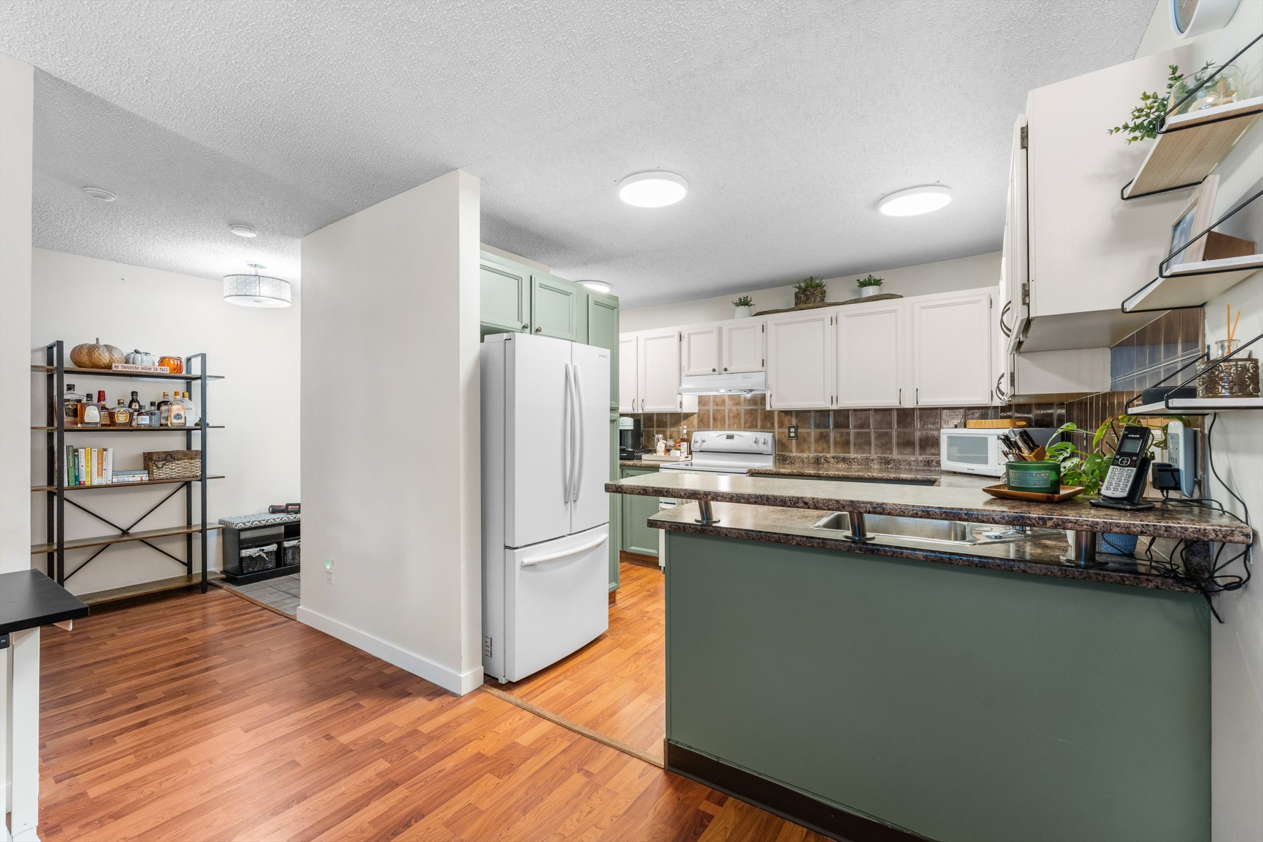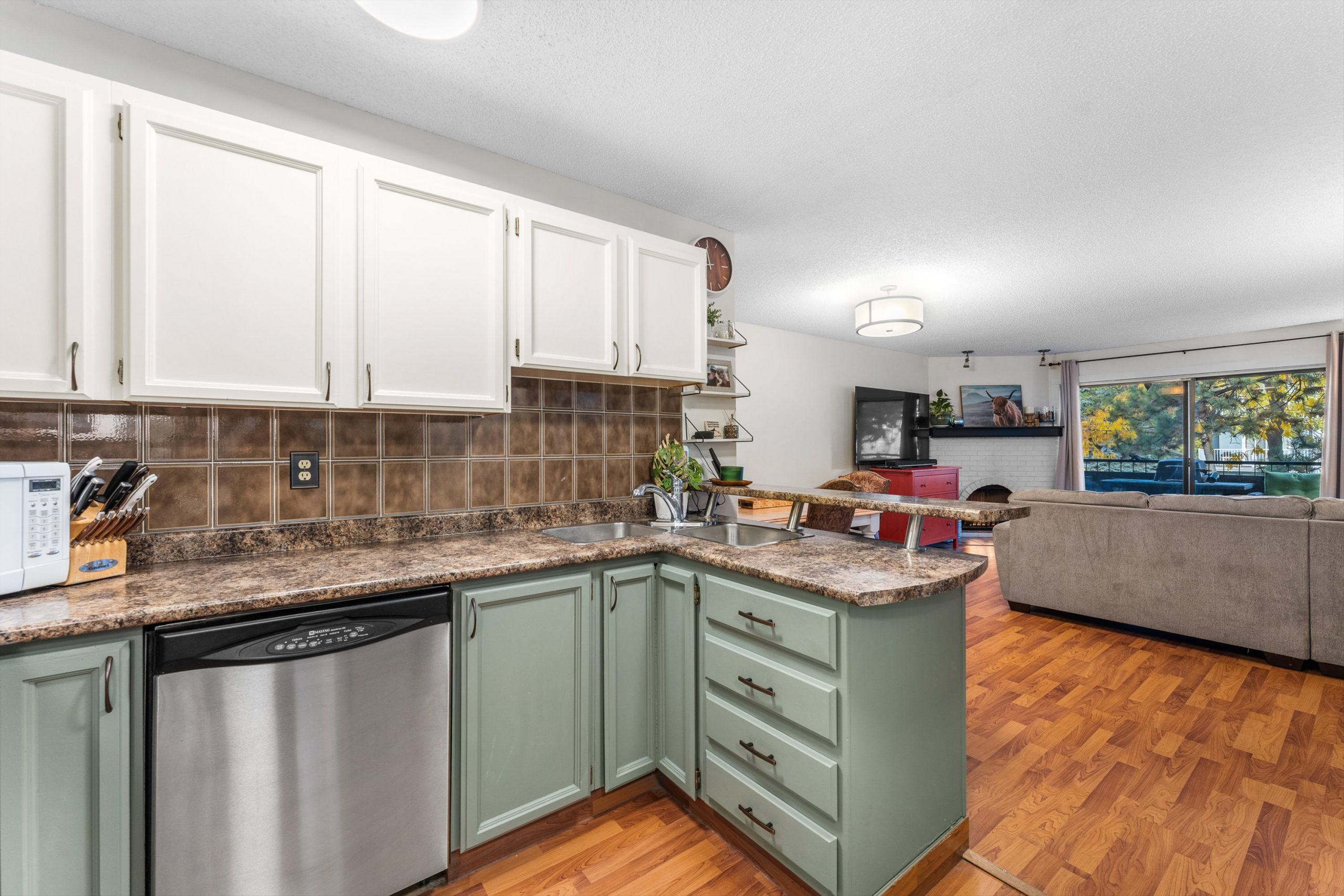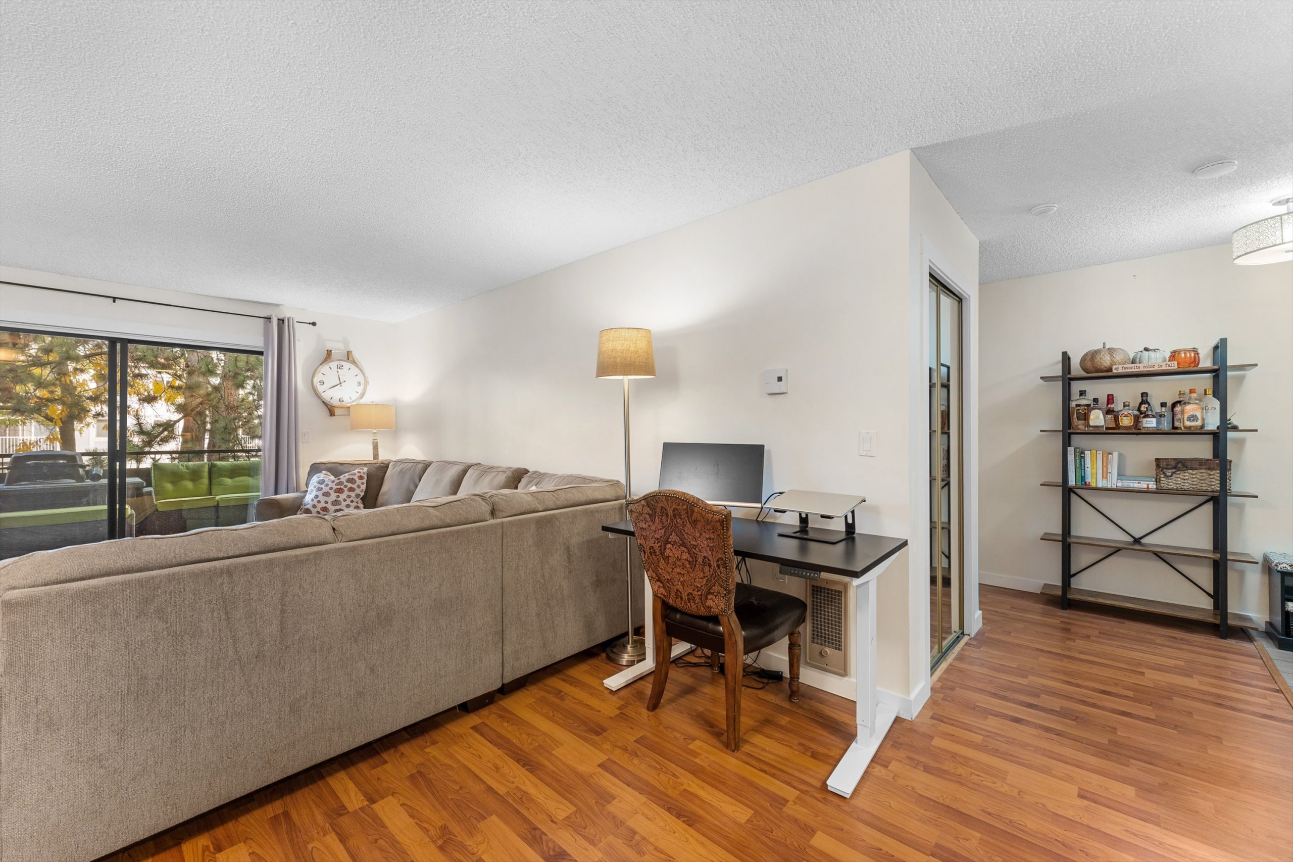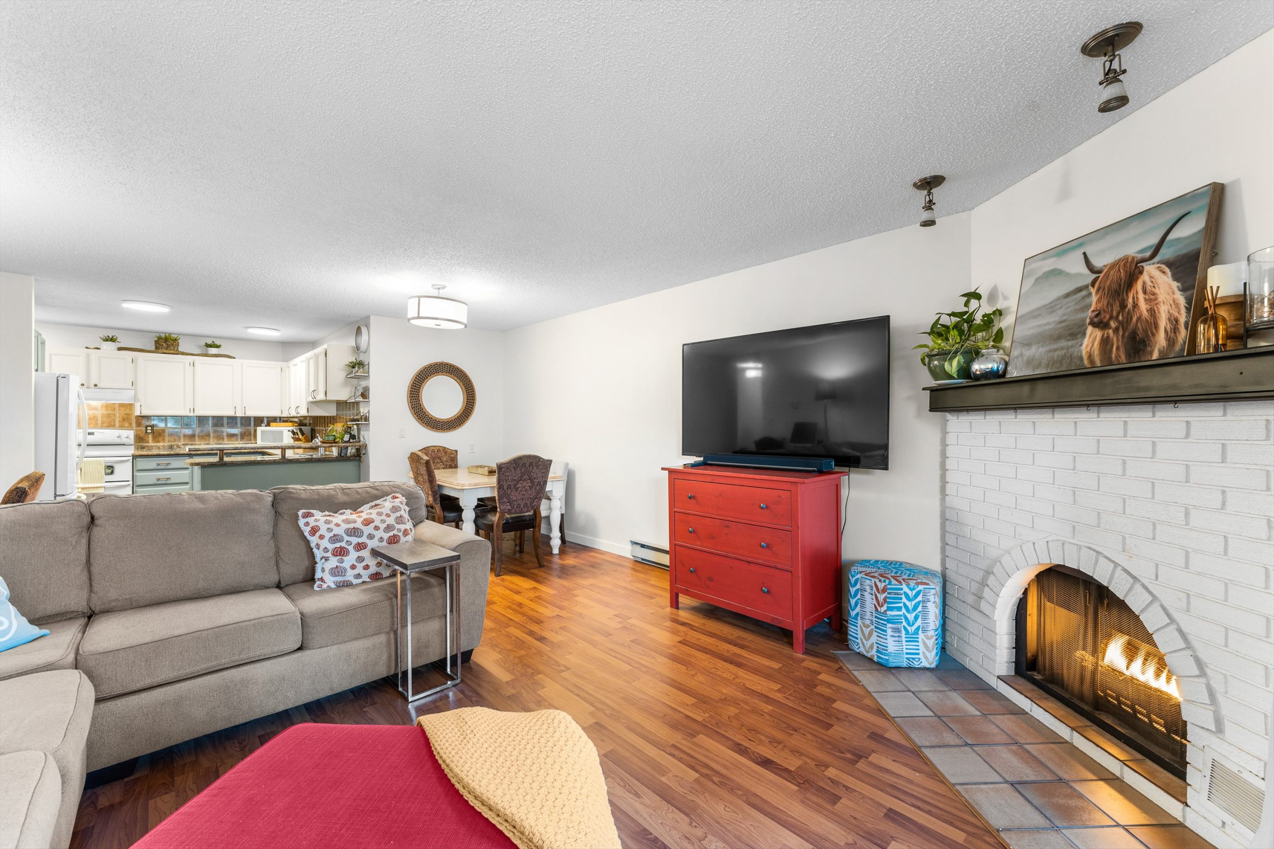 The home also includes in suite laundry with extra cabinet storage. Set in a quiet, established West Coast style building known for its larger suites and welcoming atmosphere, this residence appeals to a mix of young professionals, families, and long time residents. The building allows two pets, a rare find in the downtown core, and includes a covered parking stall, individual storage unit, and strata fees that cover natural gas for the fireplace, outdoor BBQ hookup, and water. With its friendly, connected community, complete with an optional group chat for residents, and an unbeatable location close to everything downtown has to offer, this condo delivers the perfect blend of lifestyle, comfort, and convenience.