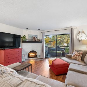 Move in ready. This bright and inviting home combines charm, comfort, and a prime location within walking distance to the beach, City Park, restaurants, cafes, and boutique shops. Step inside this generous floor plan that offers a large kitchen, updated bathroom, and a spacious primary bedroom with access to a private covered balcony. The living area features a cozy brick gas fireplace and a second balcony that fills the home with natural light, creating an effortless indoor outdoor connection. Recent updates include a new hot water tank (June 2025), new bedroom carpet, new interior doors, and updated baseboards.