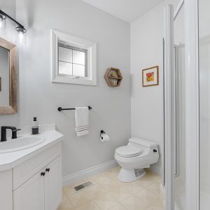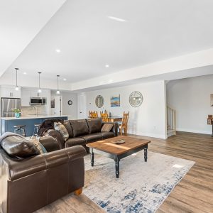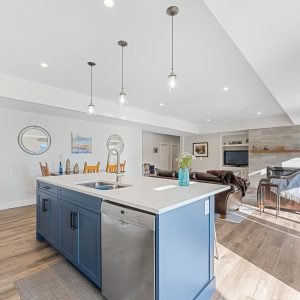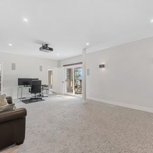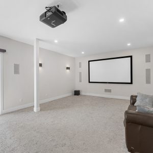 On this main level is a gorgeous primary suite with large windows showcasing the views, 2 customized closets with one featuring a built-in vanity, a luxurious ensuite with a soaker tub, steam shower & heated towel rack. Lower level is an entertainer’s delight with a theatre room, wine cellar, exercise room and a large family room with a gas fireplace and kitchen. Sliding doors open to the lake view deck. Exceptional location with private beach and boat dock and private lot storage of RV’s and boats.