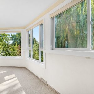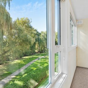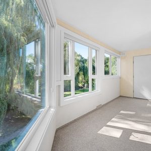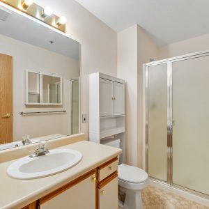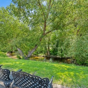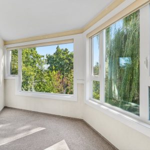 Bright and spacious corner unit overlooking the creek and Millbridge Park at The Wedgewood. This 2 bedroom + den with 2 baths offers a functional layout. The living room opens to the sunroom offering beautiful views of the park below. A dedicated dining space adjoins the kitchen. The kitchen offers a convenient passthrough window. Generous sized primary bedroom with a walk-in closet and 3-piece ensuite. Second bedroom with an adjacent 4-piece bathroom plus flex space/ den.