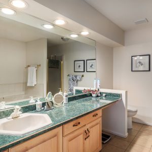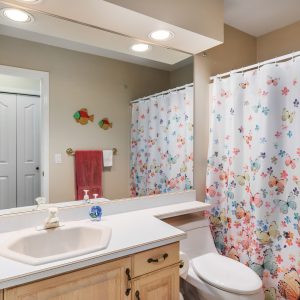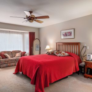The primary bedroom offers enough space for a king-sized bed and a complete set of furniture with space for a seating area. Off the bedroom is a 4-piece ensuite with a glass shower and a separate soaking bathtub. The patio overlooks the well-manicured lawns. Two-car garage. Sandpointe is Kelowna’s premier 55+ gated community and within walking distance to medical facilities, groceries, and Brandt’s Creek greenway.