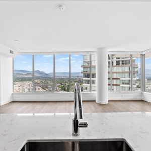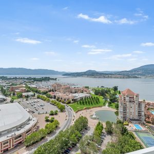 Experience elevated living at ONE Water Street, an exclusive condo development in the lively waterfront community of downtown Kelowna. Situated on the 24th floor of the West Tower, this contemporary residence features 2 bedrooms, a den, and a truly unmatched lifestyle. With impressive 9′ ceilings and commanding views of the city, lake, and mountains, this home offers a seamless transition between indoor and outdoor living, complemented by a spacious 243 sq. ft. patio connected to the main living area. With numerous upgrades, this property is the epitome of luxurious living.