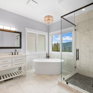 Low-maintenance landscaping served by underground sprinklers and landscape lighting. Double garage. Knox Mountain trails and Paul’s Tomb are just steps from your back door.
