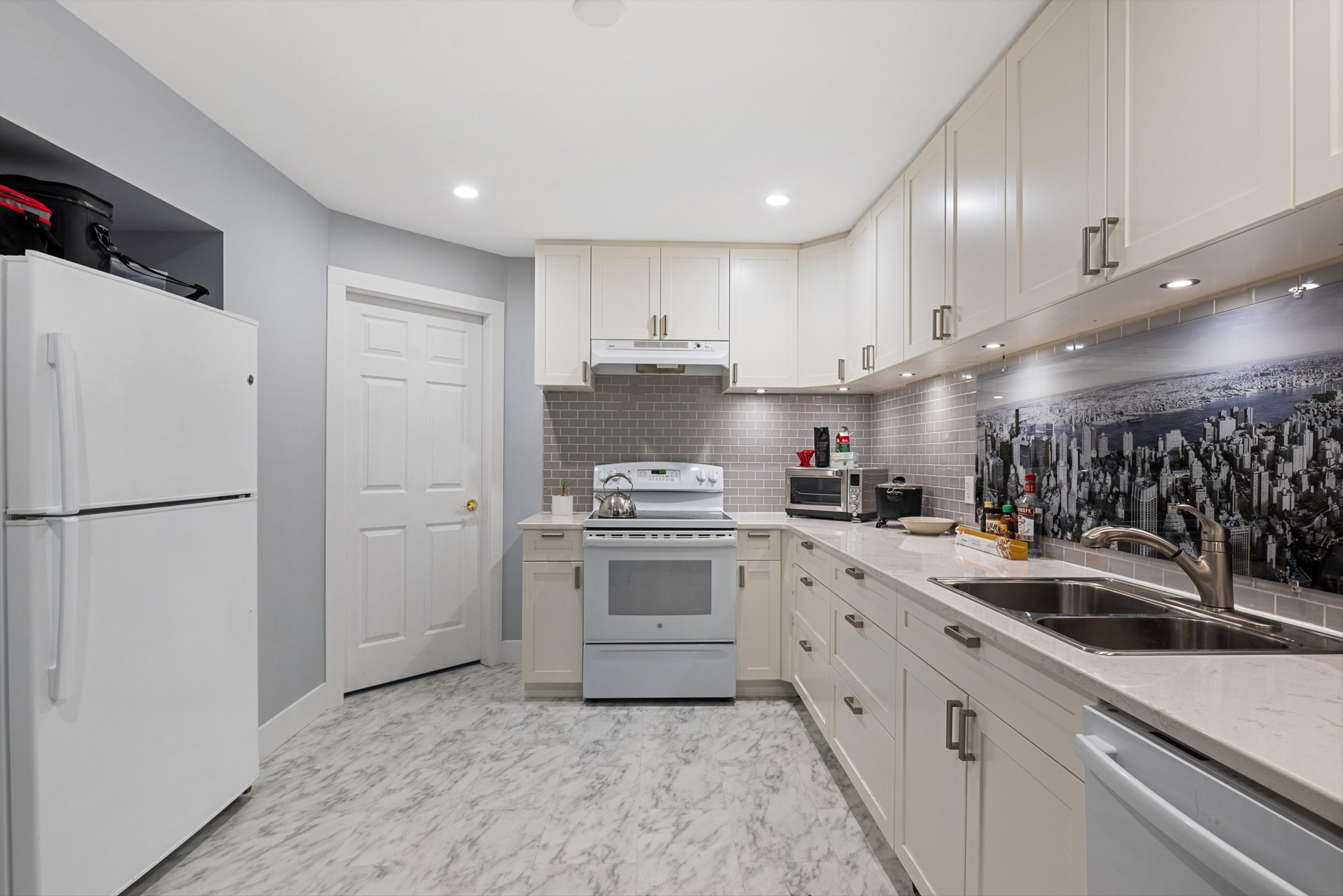 The lower level offers a generous recreation room with lake views and sunroom access, an additional bedroom with 4-piece ensuite, plus a flexible lock-off in-law suite with its own kitchen, laundry, deck access and two bedrooms. Ideal for guests, extended family or potential income (buyer to verify).
