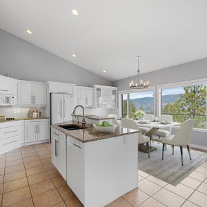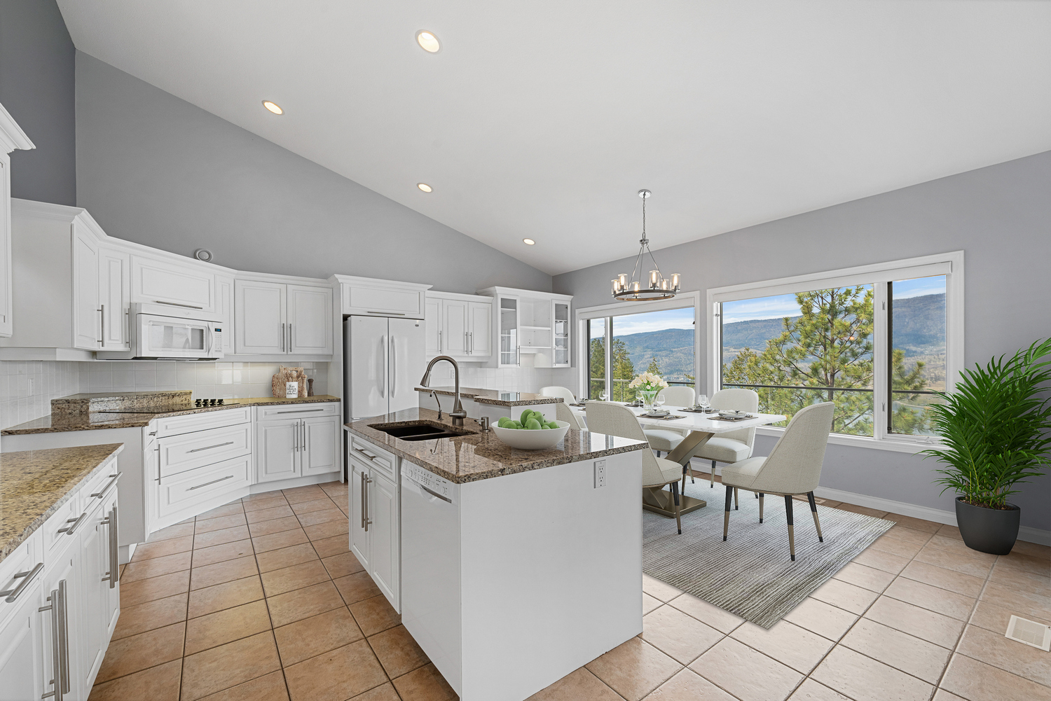 Perched above Lake Okanagan on a quiet cul-de-sac in Magic Estates, this updated walk-out rancher offers unobstructed lake and mountain views from both levels. Newer geothermal heating/cooling (approx. 2 years) and luxury vinyl plank flooring through the main living areas create an efficient, low-maintenance and stylish home.