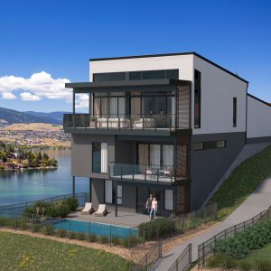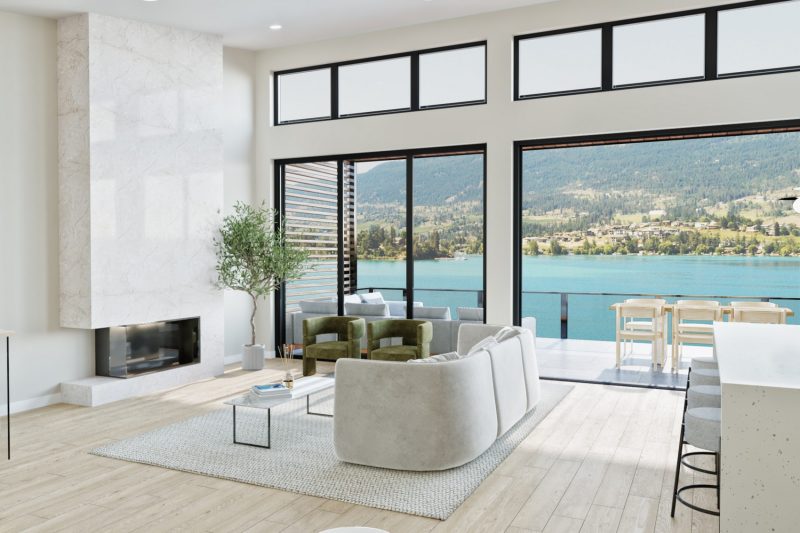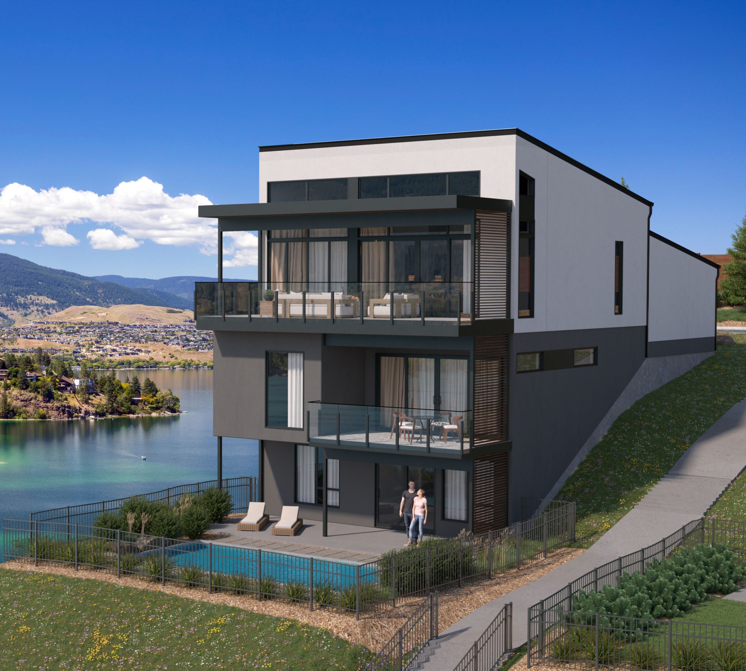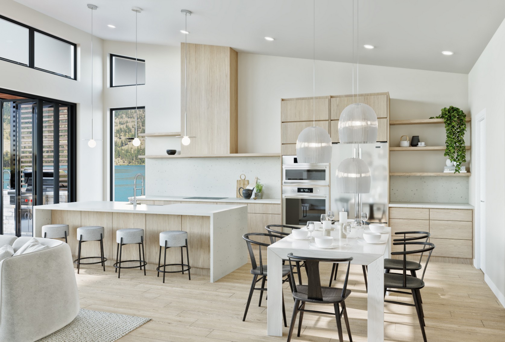 Perched above the turquoise waters of Kalamalka Lake in the exclusive Owl’s Nest community, this contemporary 3 bed, 3.5 bath residence offers refined lakeside living just moments from the shoreline. The upper level is designed for entertaining, where soaring vaulted ceilings and expansive windows fill the open-concept kitchen, dining and great room with natural light while framing beautiful lake views.