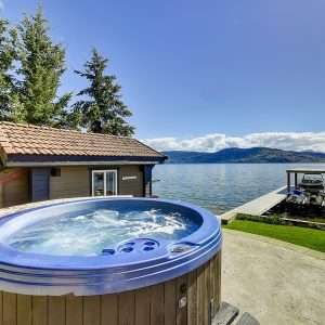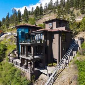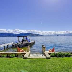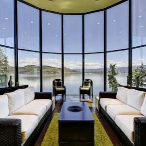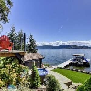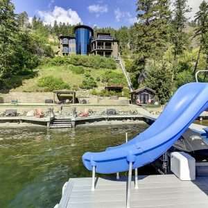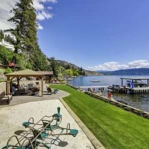 Okanagan Lake Waterfront Property. This 5 bedroom, 8 bathroom lakefront property has a thoughtful design that includes the most appealing beachfront and features dazzling views of the Kelowna skyline. Enjoy the fabulous lifestyle that Sailview Bay offers with gated entry and exceptional privacy while only a short 10-minute drive from downtown Kelowna. This functionally designed home has an excellent main floor plan with kitchen, living room, dining room, office, and master bedroom on the main level.