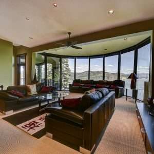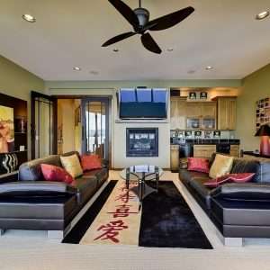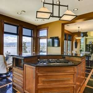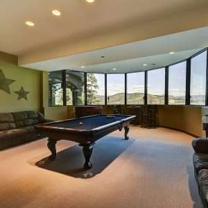 The lower-level features 3 bedrooms, each with their own own ensuite bath and lake view, as well as a beautiful family room and large deck. Below this level is the entertainment area of the house with a large games room complete with a pool/poker room, a golf room (that would fit perfectly with a new simulator), a home gym, a washroom with a steam shower, and a lower deck with a hot tub.