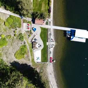 There is also a self-contained nanny suite with its own separate entrance from the main road. The outdoor funicular will take you from the main level to the lower level for easy access to each space and then down to the beach. The highlight of this home is the large expansive beachfront that comes with its own beach house and includes a washroom and plenty of storage for the beach toys. This amazing area comes with plenty of sitting space to enjoy the kids and grandkids as they play on the well-manicured lawn, sandy beach area, or swimming in the lake.