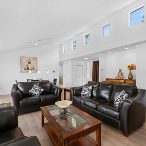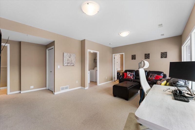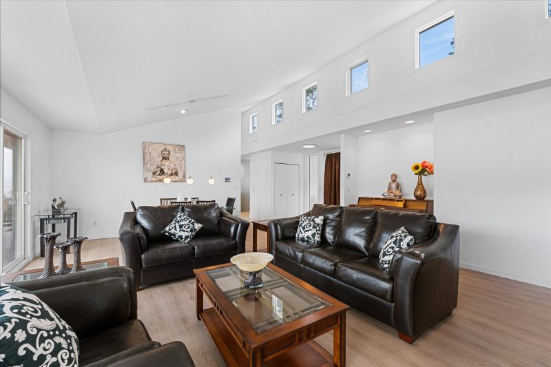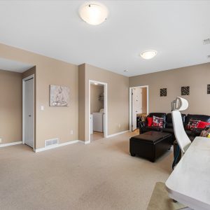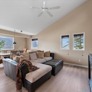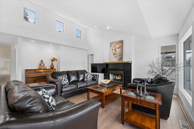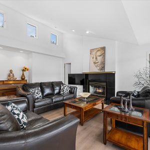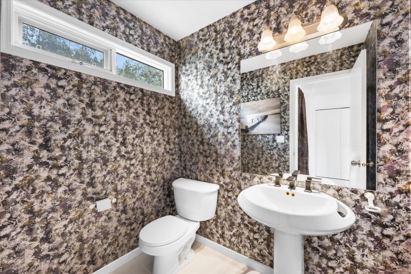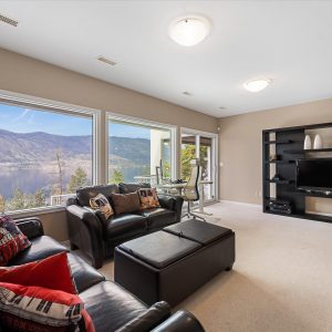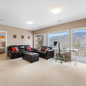 Downstairs, the walk-out level continues to showcase the views with a large rec room, two additional bedrooms, a flexible gym/office, full bathroom, and laundry. Sliding doors open to the lower deck and pool area, creating an inviting space for long summer days at home.
