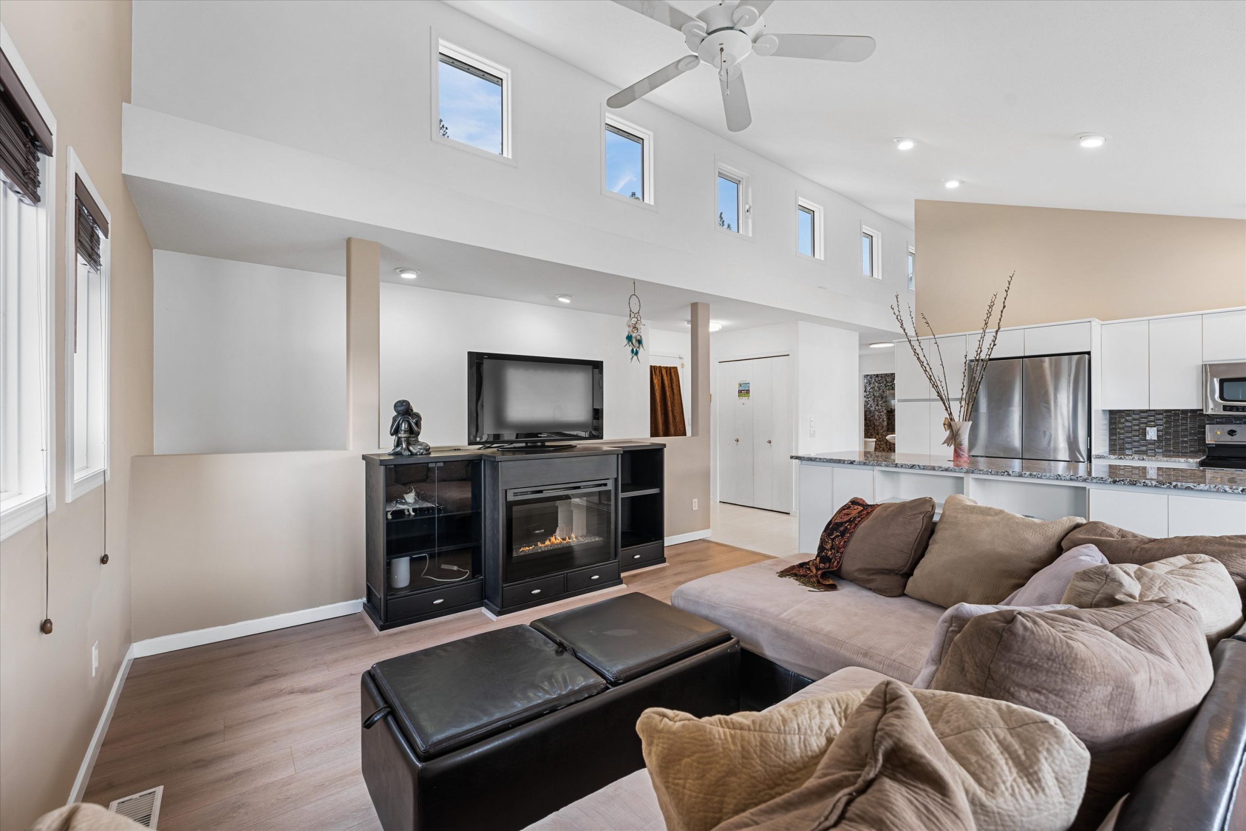 The main level also includes a generous primary retreat with deck access, walk-in closet, and 5-piece ensuite, along with a convenient powder room.