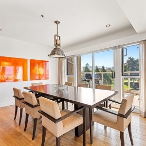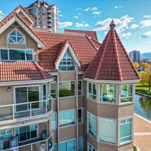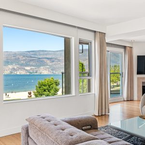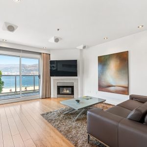 Lake front living at the Lagoons. Fantastic building with amenities including indoor/outdoor pools, steam room & gym. This timeless modern contemporary freshly painted corner unit 3 bedroom, 3 bath townhome is located in the heart of downtown, within walking distance to all its amenities. The main floor is a bright open concept with a gas fireplace and plethora of windows providing spectacular lake, beach, mountain and city views. Three balconies and large rooftop patio.