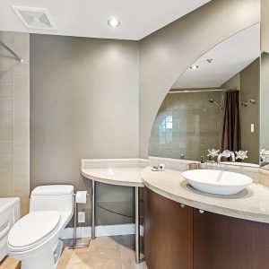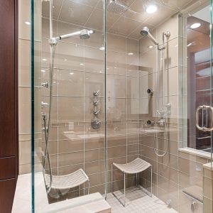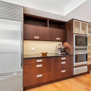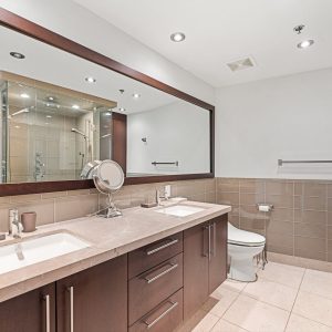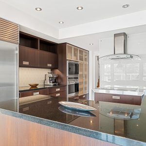 Beautiful bamboo hardwood flooring throughout. Kitchen with high end appliances, custom wenge cabinets by Downsview Kitchens and granite counters. Master bedroom upstairs with vaulted ceiling, dressing room with built-in shelving & 4 piece ensuite with wenge cabinets, marble floor and counter, oversized glass tiled, walk in shower with multiple shower sprays. 2 bedrooms with lake views and 4 piece bath with jetted tub, glass tile, wenge cabinets and marble floors and counter. All faucets are Dornbracht. Gorgeous lighting.