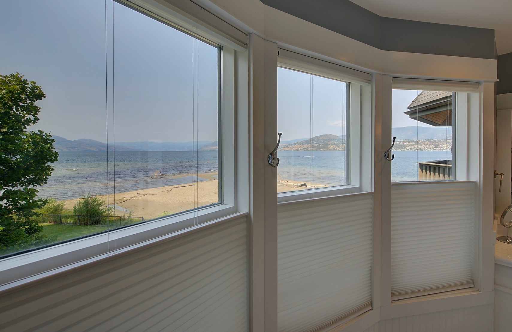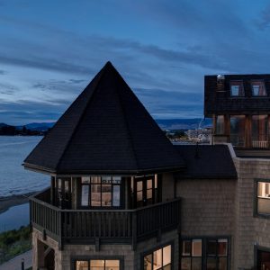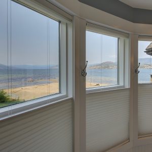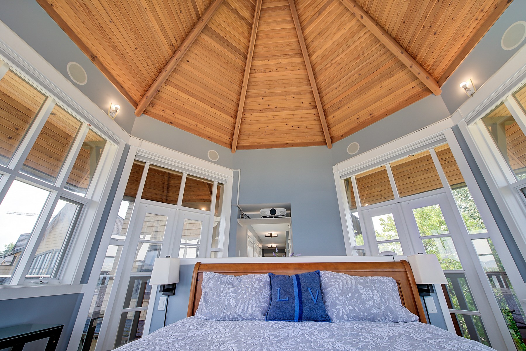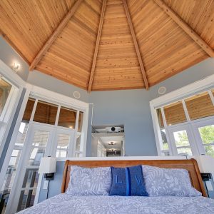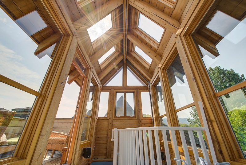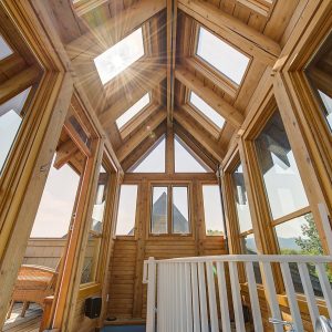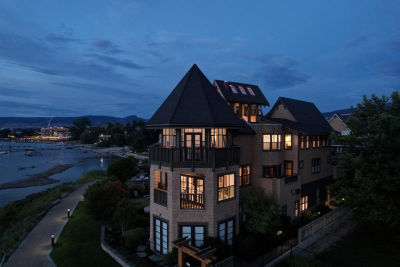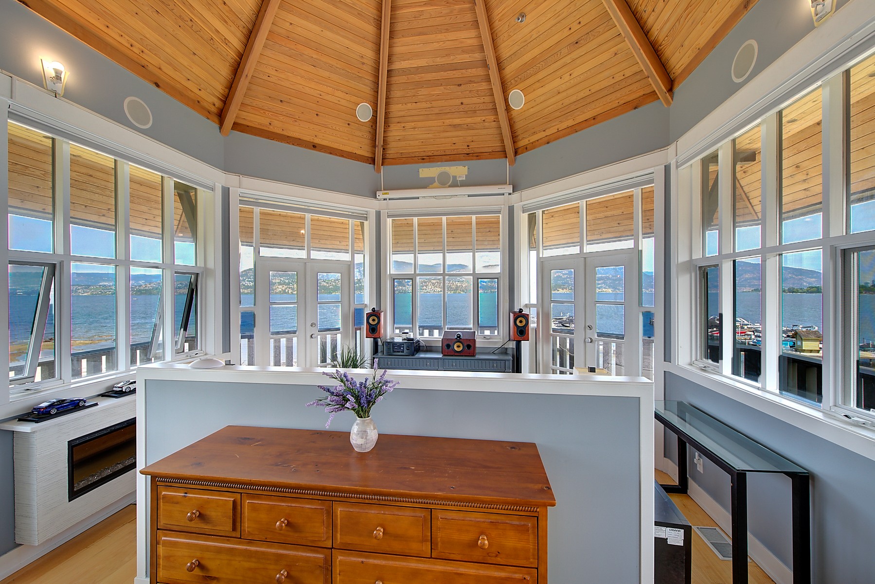The luxurious primary suite comprises two levels. Surrounded in windows providing wrap around views of the lake and mountains, glass door to the private balcony, high 2-storey cedar ceiling. The upper level of the primary features a Jacuzzi tub that is surrounded in windows with access the 2nd private lake view balcony.