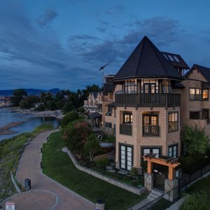 Finishing the upper level is an open mezzanine with built-in desk & seating and 2 additional bedrooms.  3 bedrooms are complete with ensuite bathrooms. Home offers 2 parking stalls, 2 full-time boat slips with lifts and storage locker. Residents of Mission Shores can enjoy access to an array of amenities including a fitness centre, meeting room, hot tub and pool.