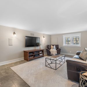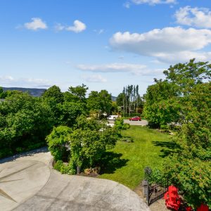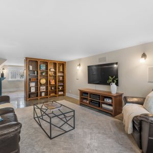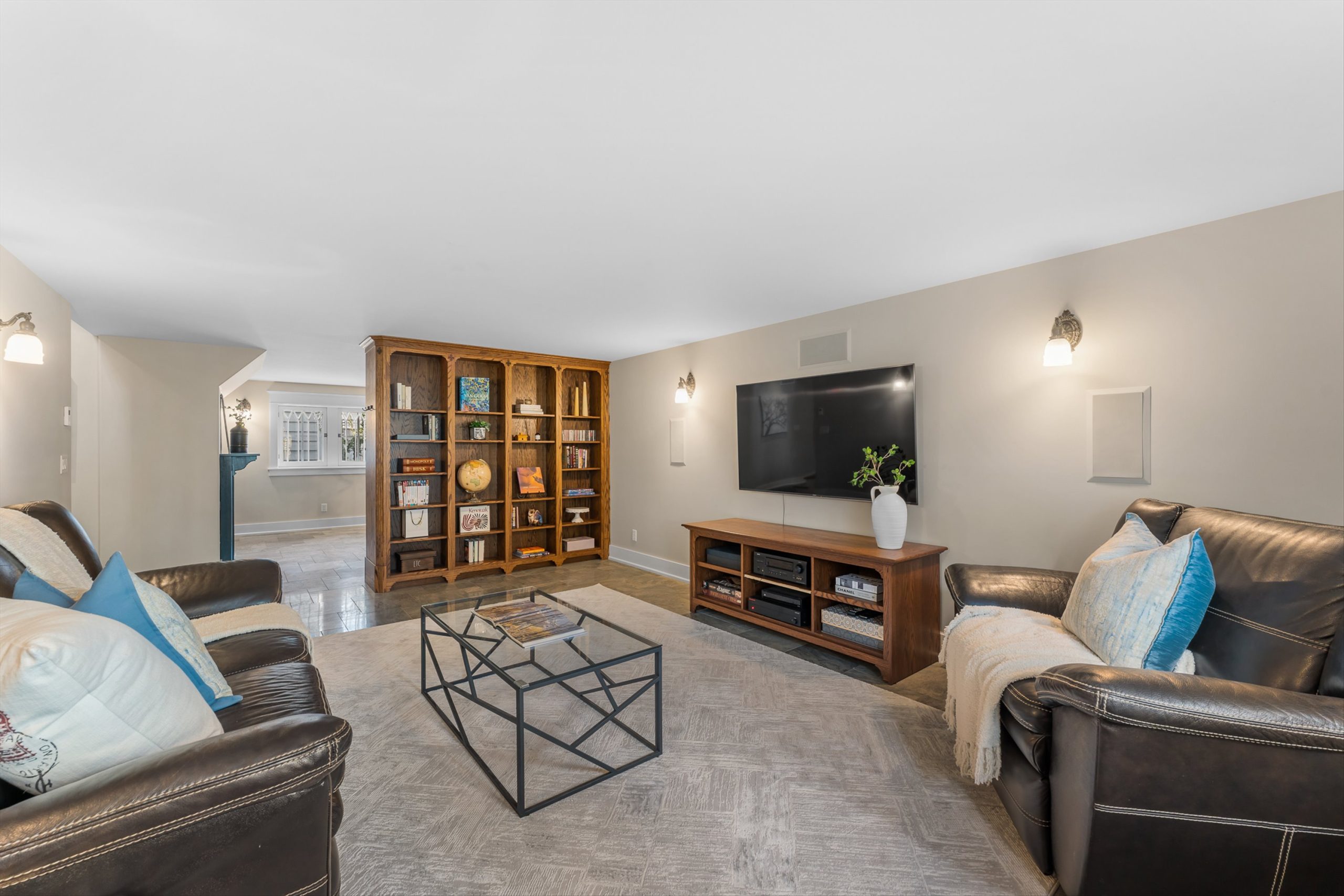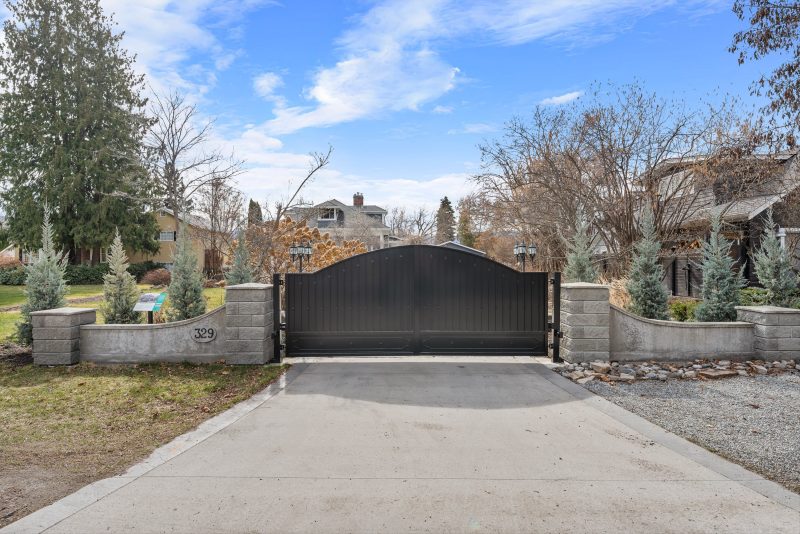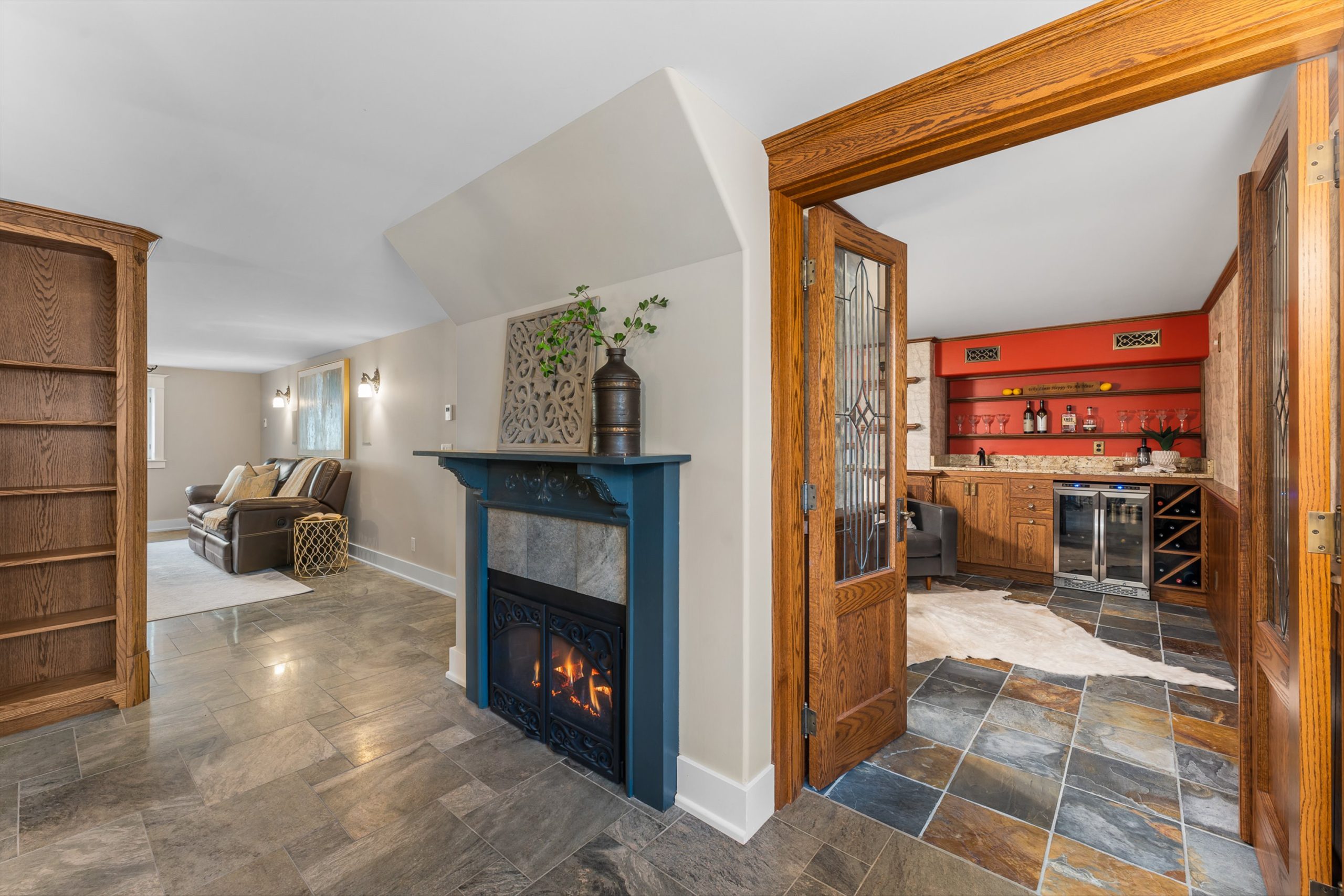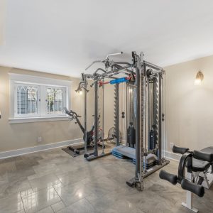 The lower level adds a cosy recreation room, flexible gym/family room with fireplace, two bedrooms, 4-piece bath, mudroom, and a den currently styled as a wine/cigar room with bar.