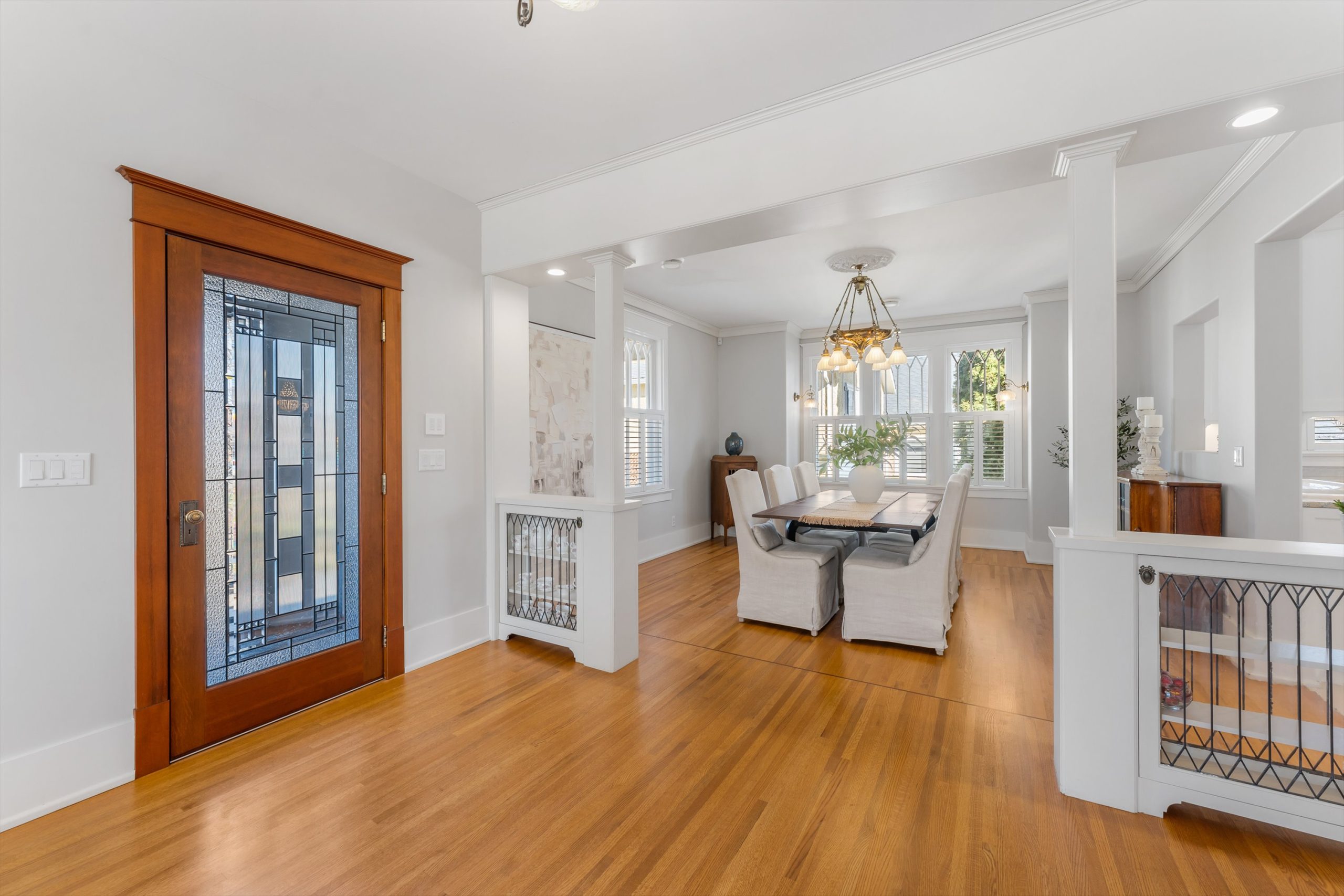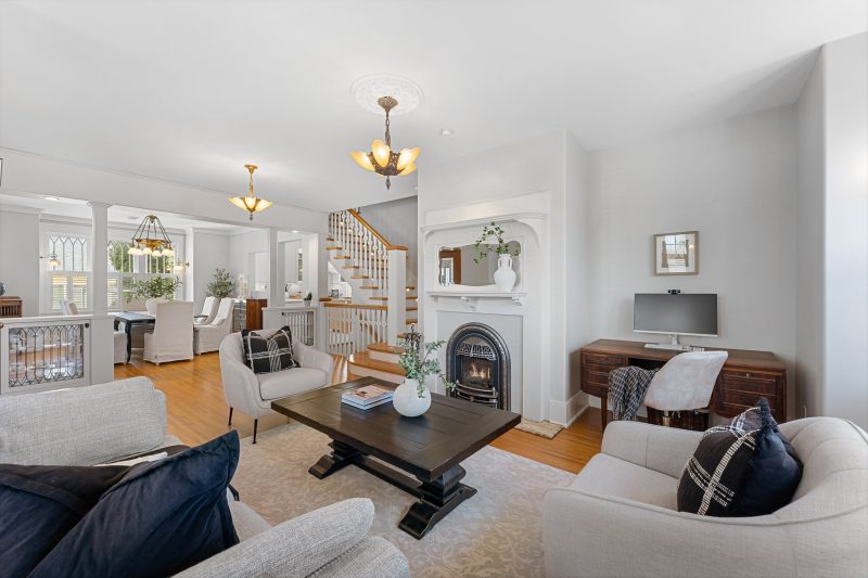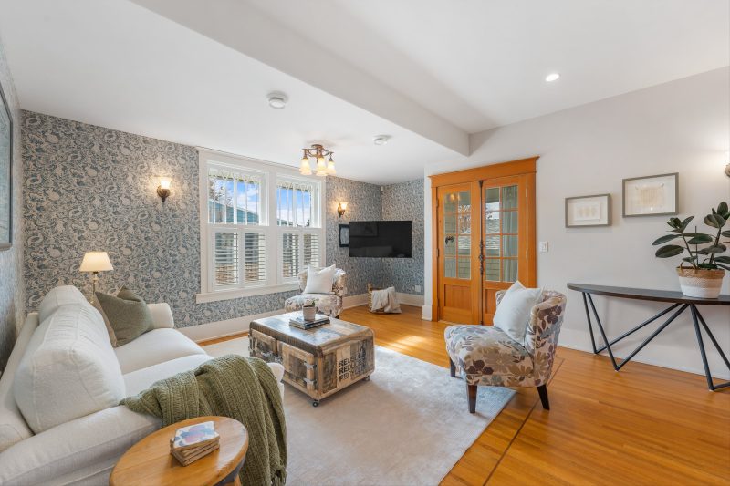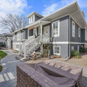 Heritage character, Abbott Street corridor charm, and modern comfort come together in this 1913 Edwardian home, the Leopold Hayes House, on a rare 0.37-acre parklike lot just steps to the beach. Launch your paddle board or enjoy a swim only a stone’s throw from your property! Extensively renovated back to the studs, it blends original oak hardwood, solid doors, restored windows, stained-glass lighting, and a wide covered porch with tapered columns and lattice-wrapped vines. This 3 bedroom/3 bath plus den residence spans three levels.