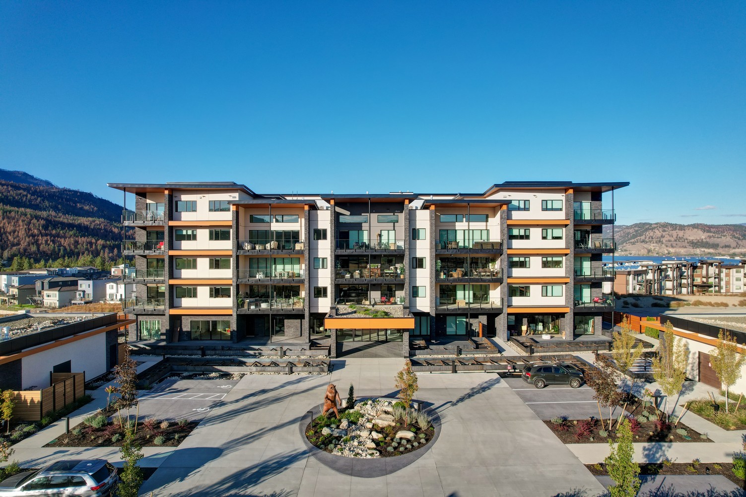 Welcome to ARIVA, and featuring THE Premium Residence in one of Kelowna’s newest and brightest condo developments perfectly situated to capture the morning sun and spectacular lake views. This brand new, 3 bed, 3.5 bath home features warm brushed Oak hardwood floors, vaulted 14 ft. ceilings in the great room, and calming modern finishes throughout. Enjoy an eye-catching, Cosentino Dekton Stonika Berge waterfall island countertop and backsplash with Cambria White Cliff polished countertops in the remainder of the kitchen, wine bar, bathrooms, and ensuite.