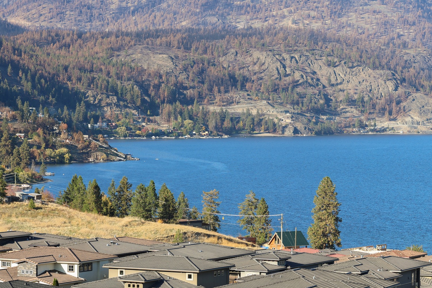 This unit also features professional kitchen appliances and motorized blinds. Watch the sunset over Lake Okanagan and downtown Kelowna from the comfort of the 575 sq. ft. deck area before heading inside to the cozy up to a beautiful gas fireplace. This home comes with 2 of the best underground parking stalls #11 & 12. plus a convenient storage room in the suite.