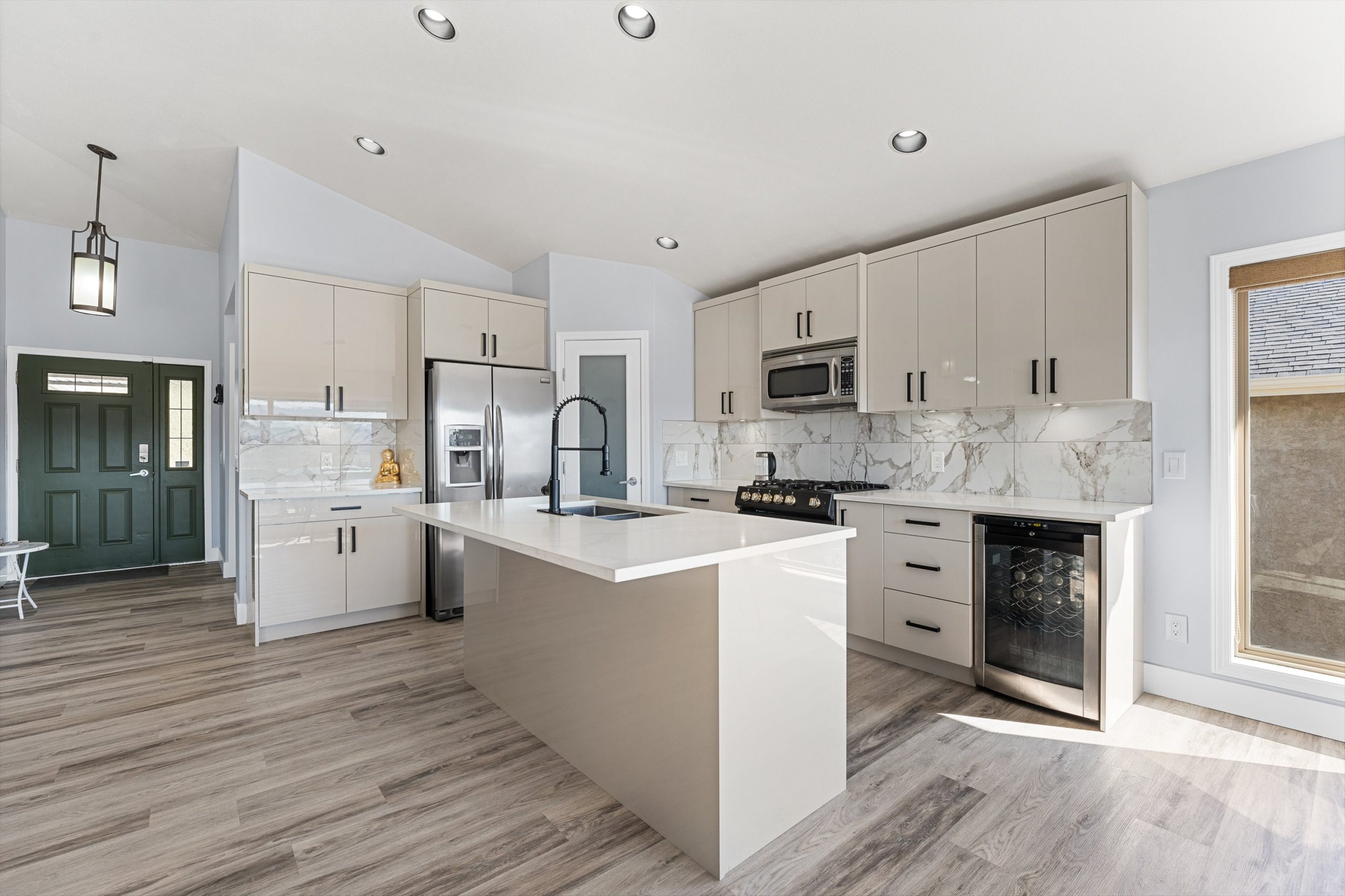 Enjoy sweeping views over the lush fairways of Sunset Ranch Golf Course from this beautifully updated and exceptionally bright 5 bedroom home, with one bedroom ideally suited as a den or home office. Perfectly positioned to capture the beauty of the Okanagan, this stylish residence offers a fresh, modern feel with tasteful updates throughout, including a fully renovated kitchen, newer upper-level flooring, and fresh paint.