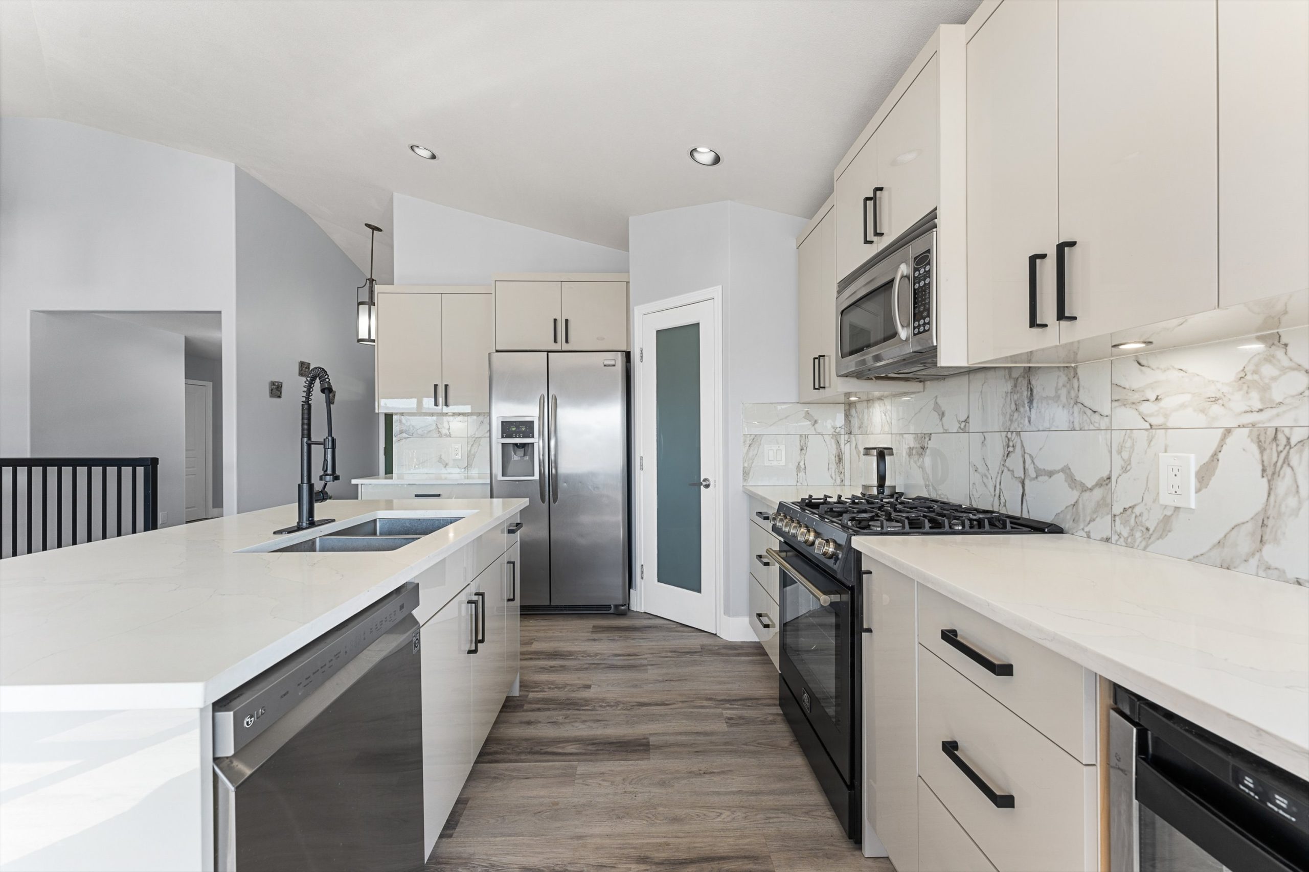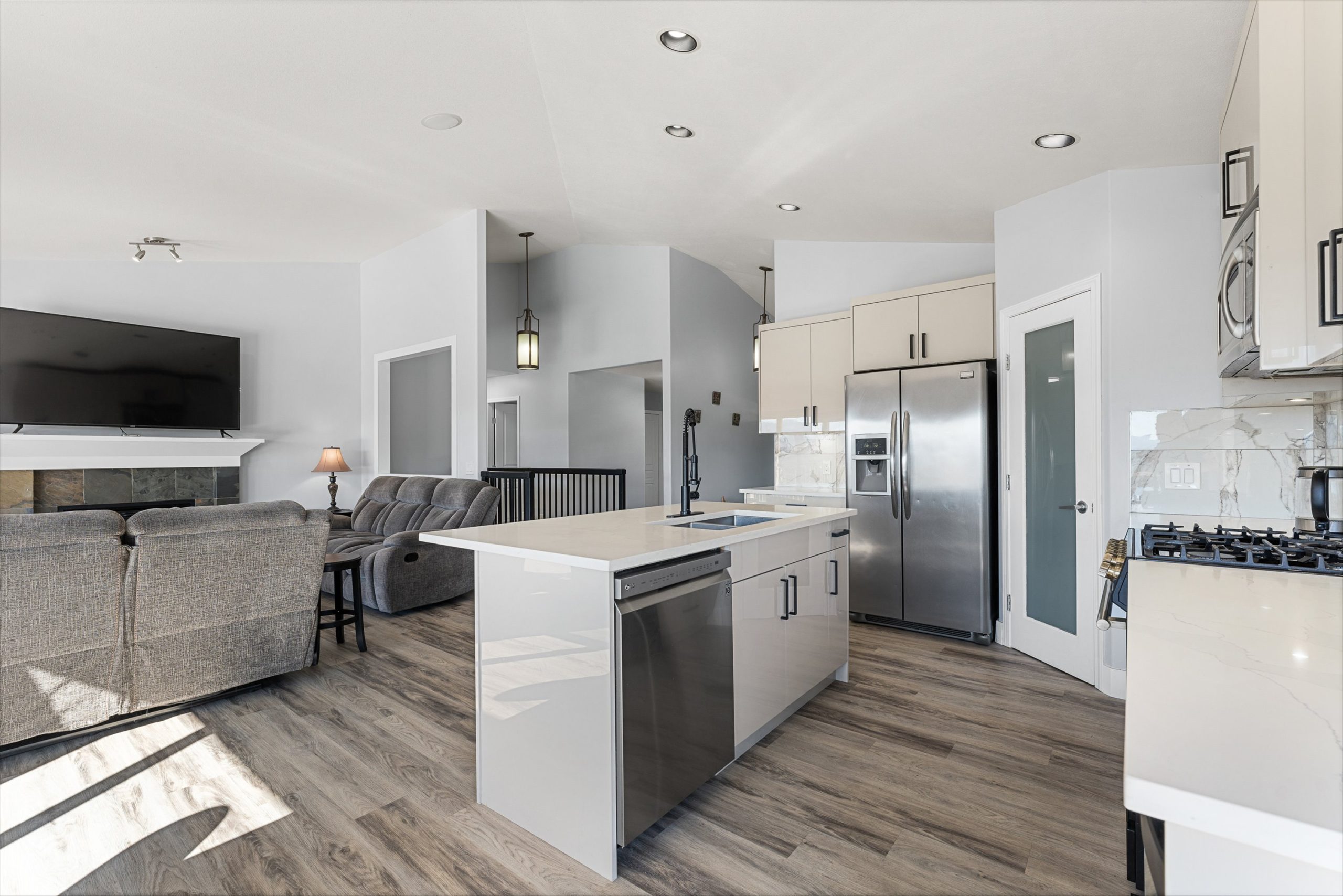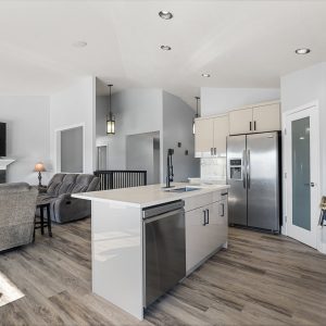 The open concept main living area is designed for both everyday comfort and effortless entertaining, with expansive windows that fill the space with natural light and frame golf course views. The spacious main floor primary suite offers privacy and convenience, complete with a walk in closet and a beautifully appointed ensuite.