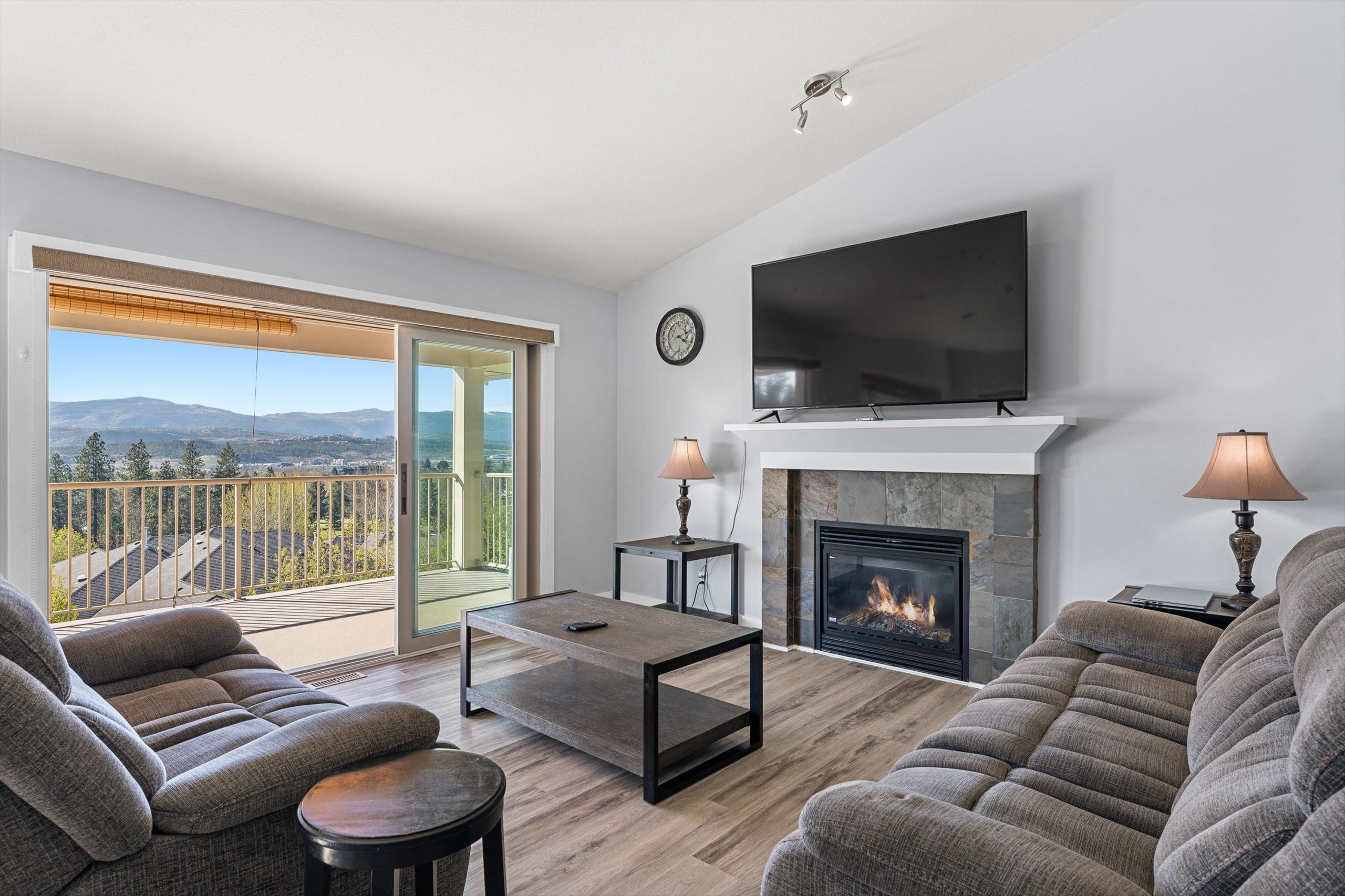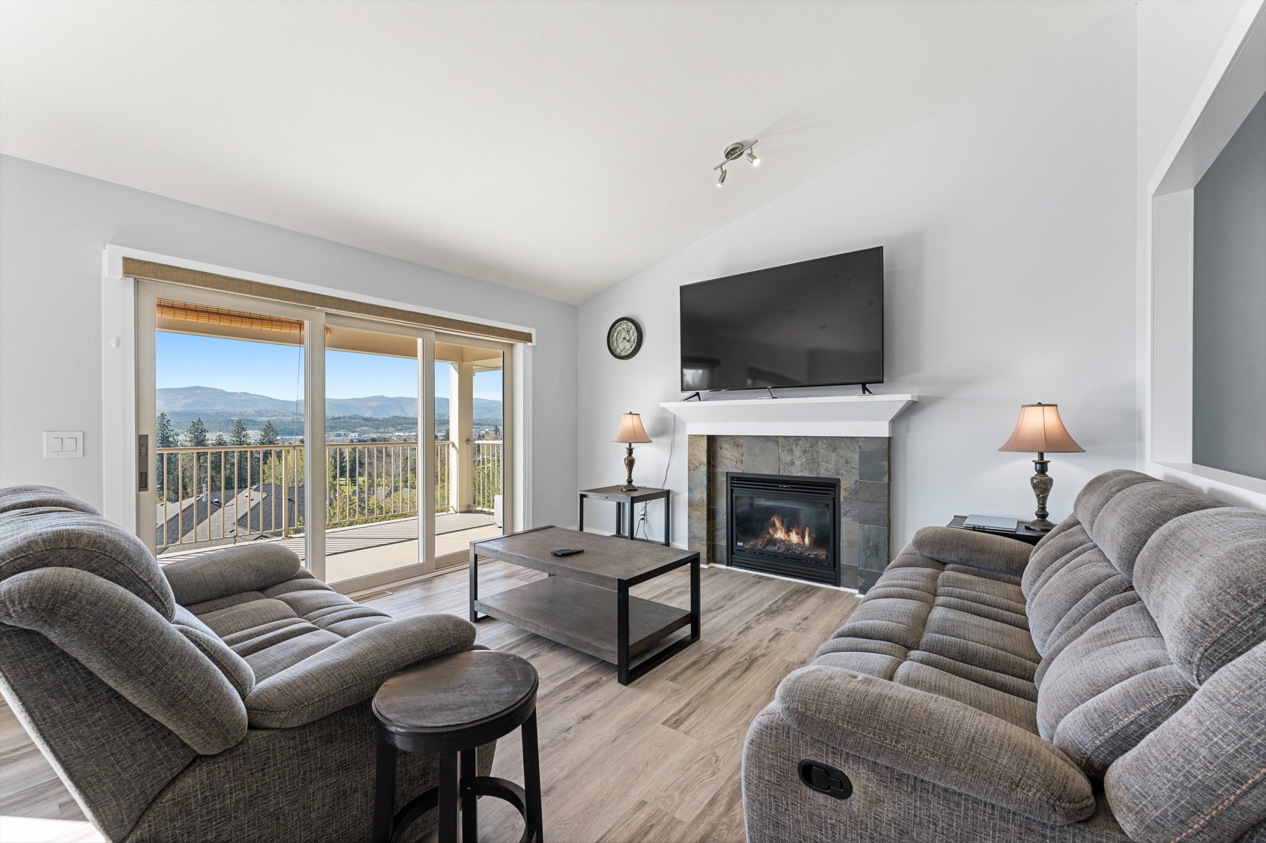 A generous upper balcony provides the perfect place to unwind and take in peaceful golf course views and Okanagan sunsets.