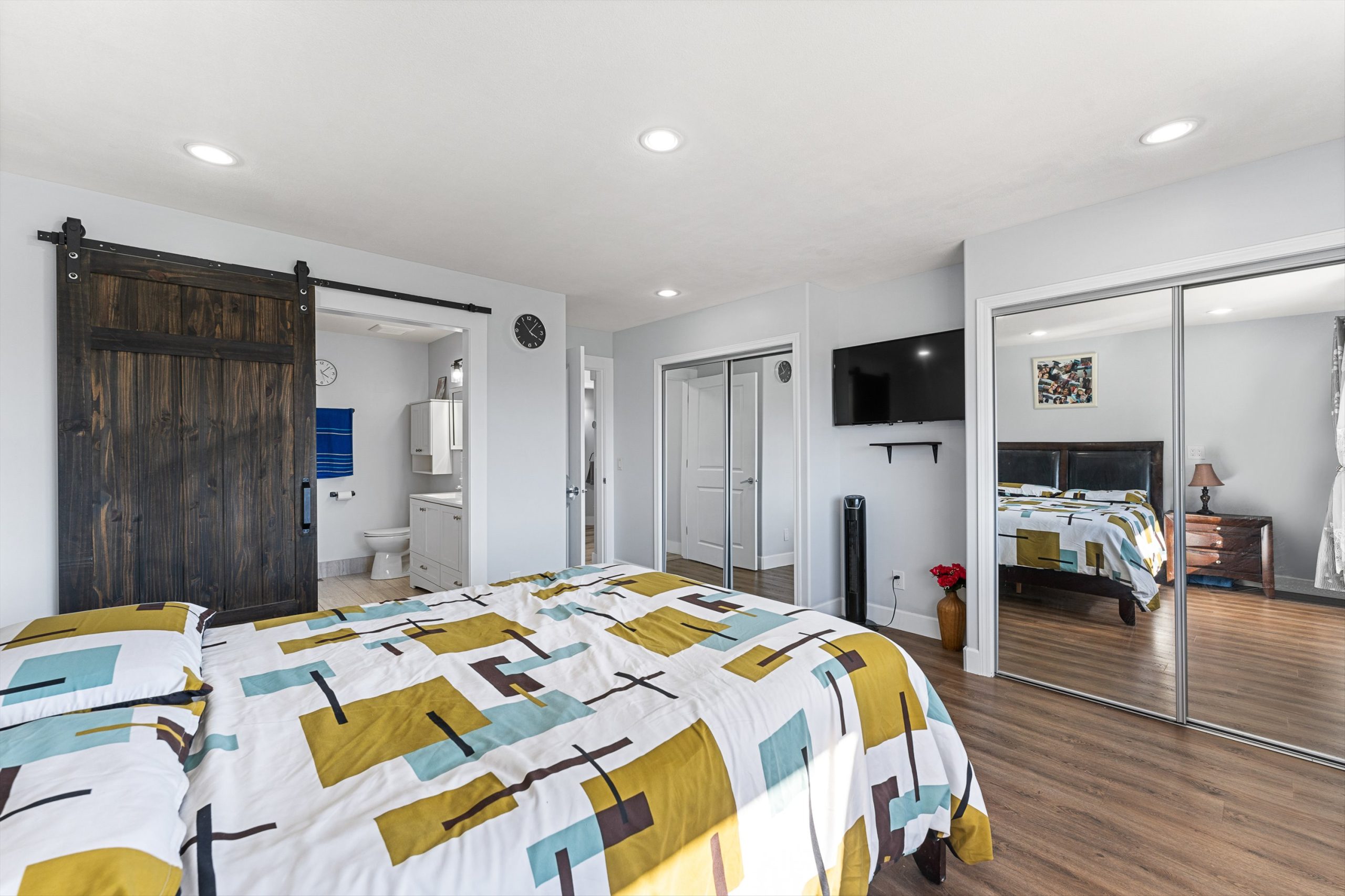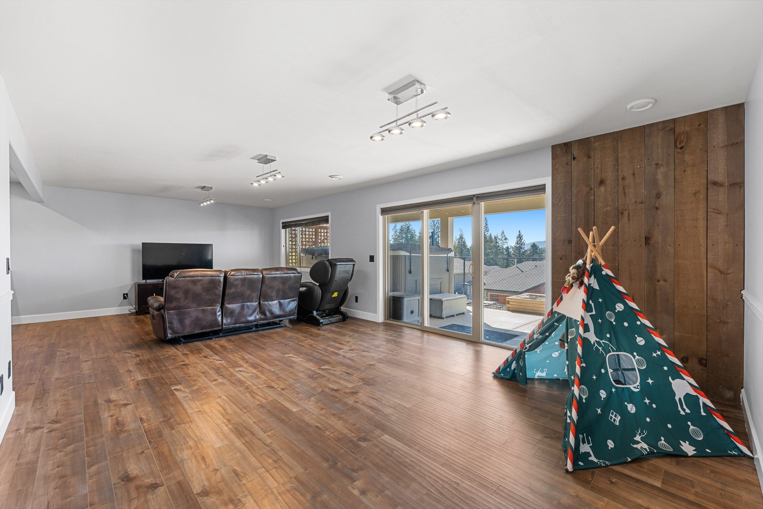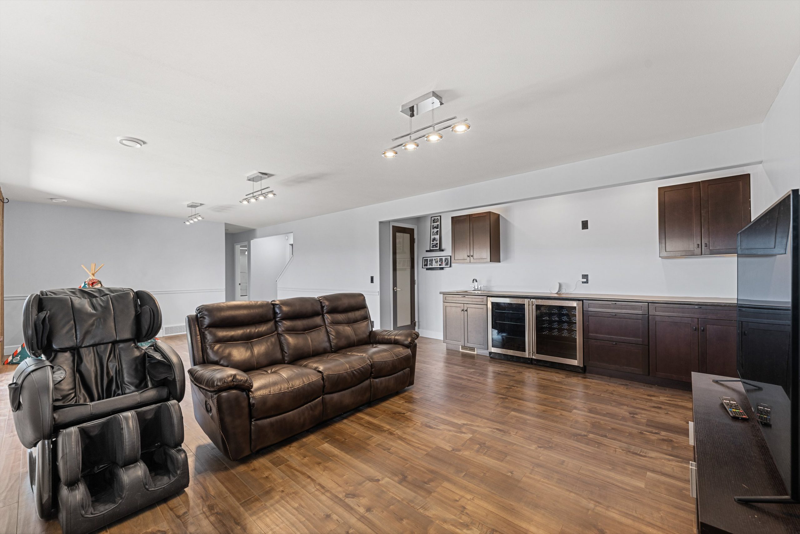 The walkout lower level features two additional bedrooms and a large family room with inviting bar area, ideal for movie nights, games, or hosting guests, with direct access to the lower patio featuring a large swim spa for year-round enjoyment.