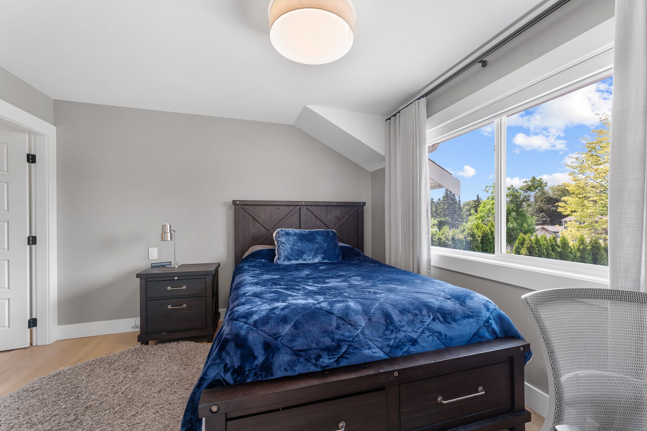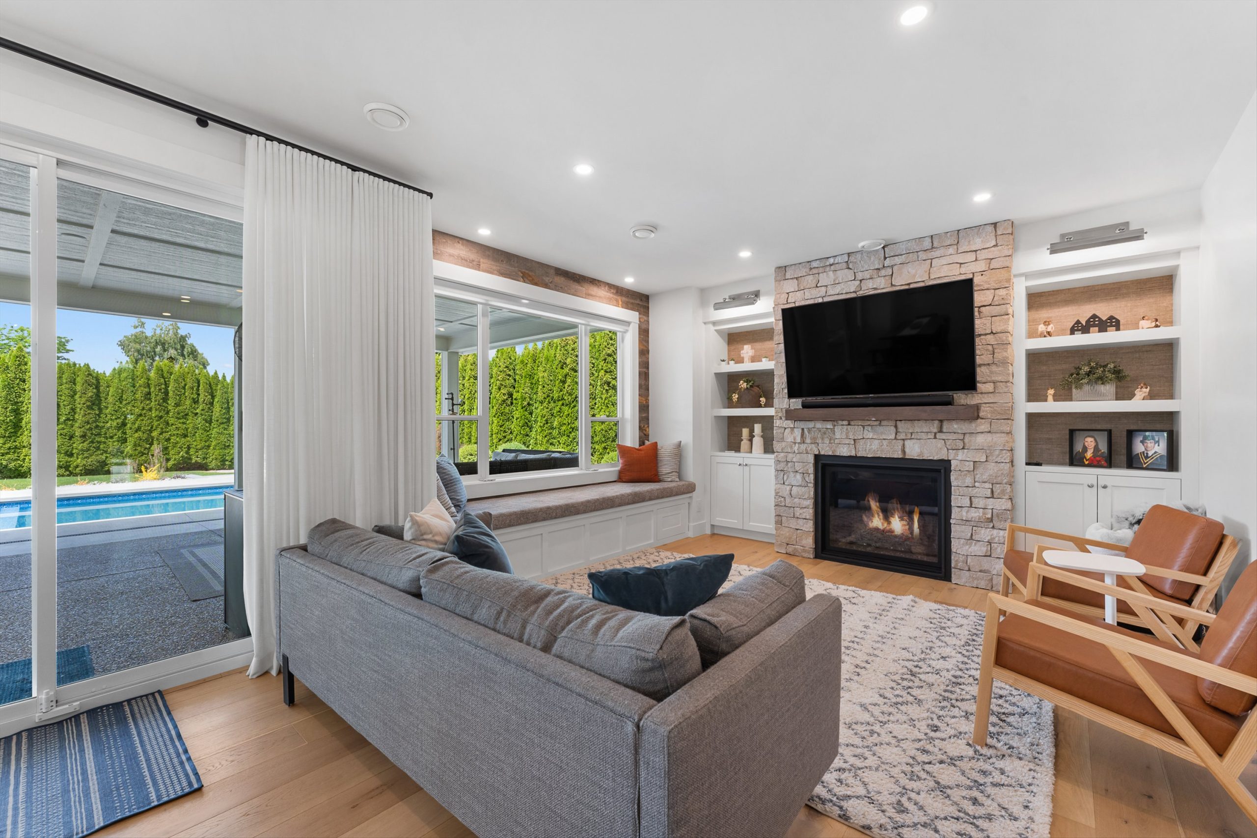 French doors lead to a fully private outdoor sanctuary complete with a covered lounging area, integrated audio, natural gas hookup, and a heated saltwater pool, a spa surrounded by mature cedar hedging, tiered gardens, and lush lawn. Thoughtful design extends indoors with a main-floor gym and ensuite, a versatile office, and a mudroom with built-in storage. Upstairs, the expansive primary retreat offers a spa-like ensuite with heated tile floors and a walk-in shower. Three additional bedrooms, a five-piece bath, laundry, and a bonus room with wet bar provide generous space for family and guests alike. The oversized triple garage is fully finished with epoxy floors, built-in cabinetry, and RV parking. This is a rare opportunity to own a gorgeous residence in a quiet, coveted enclave.