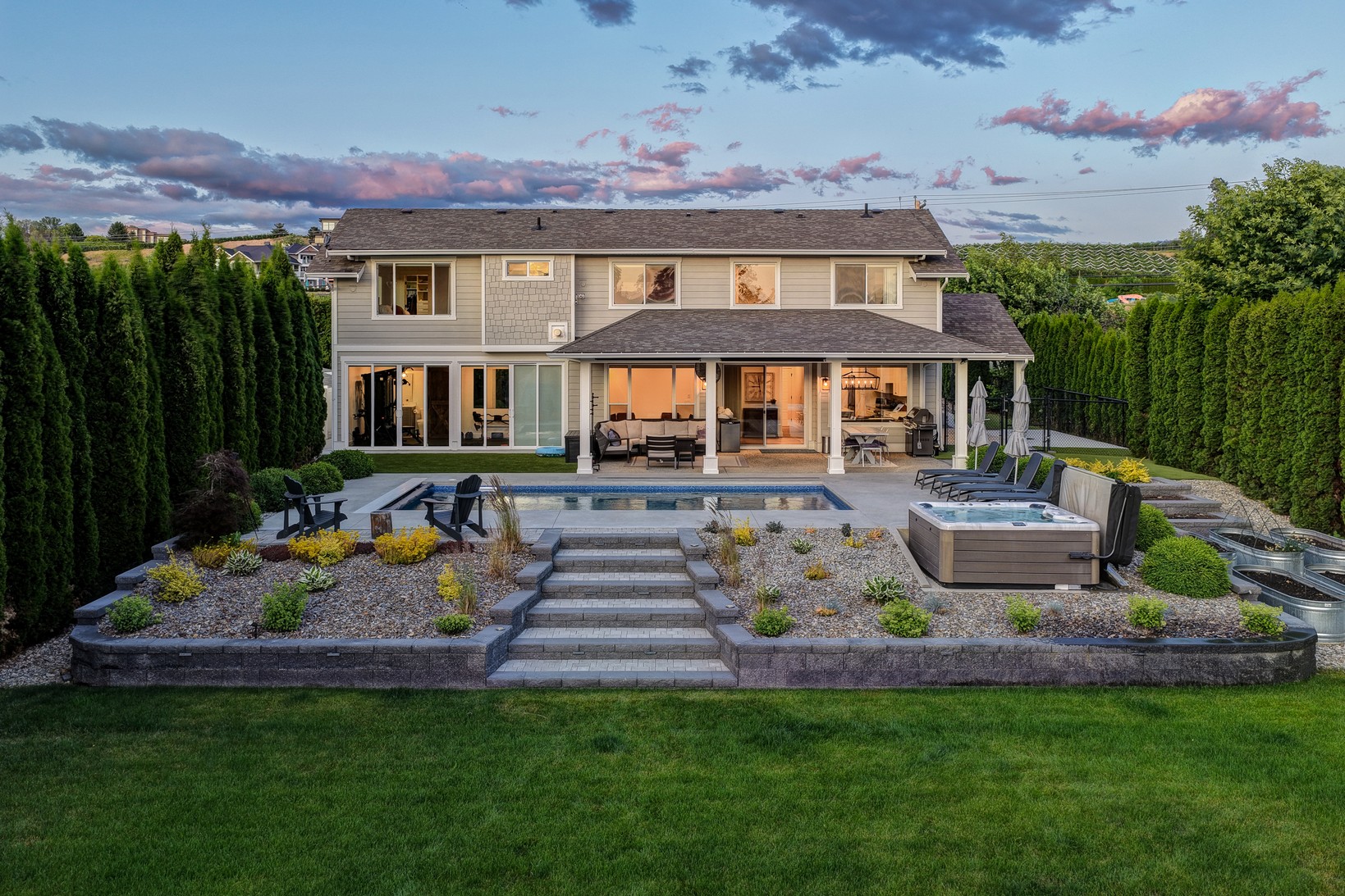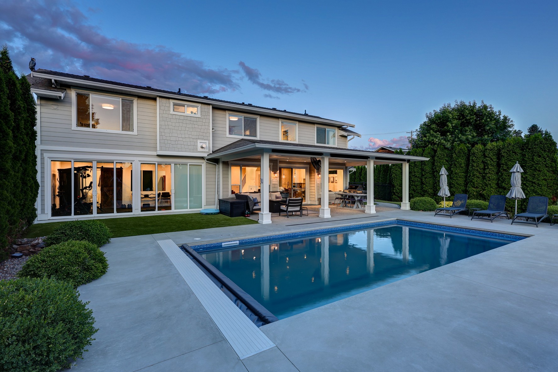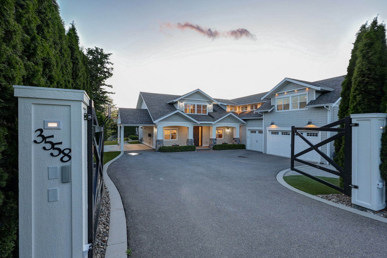 Gracefully positioned behind a gated entry on a manicured 0.42-acre property, this is a timeless craftsman-style residence offering privacy, a functional layout, and resort-style amenities just minutes from Kelowna’s finest conveniences. Showcasing exceptional quality throughout, this 4-bedroom, 5-bathroom home is designed for elevated everyday living. The chef’s kitchen is anchored by a generous center island, quartz countertops, and premium KitchenAid appliances, flowing seamlessly into the dining and living areas where wide-plank hardwood, custom built-ins, and a stone-clad gas fireplace create an atmosphere of luxury.