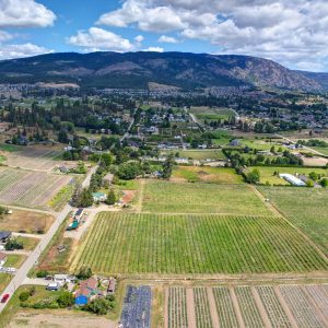 9.1 acre ORGANIC vineyard planted with Chardonnay (apx 2.75 acres), Pinot Gris (4.25) and Pinot Noir (.6). Property is centrally located close to Westbank town centre and adjacent to Paynter’s Fruit Market. Walking distance to groceries, schools, new medium density residential area (farmgate option), parks, and transit. Farm house consists of multiple living and space arrangements with finished space over all three floors. Separate entrances from front, rear and basement.